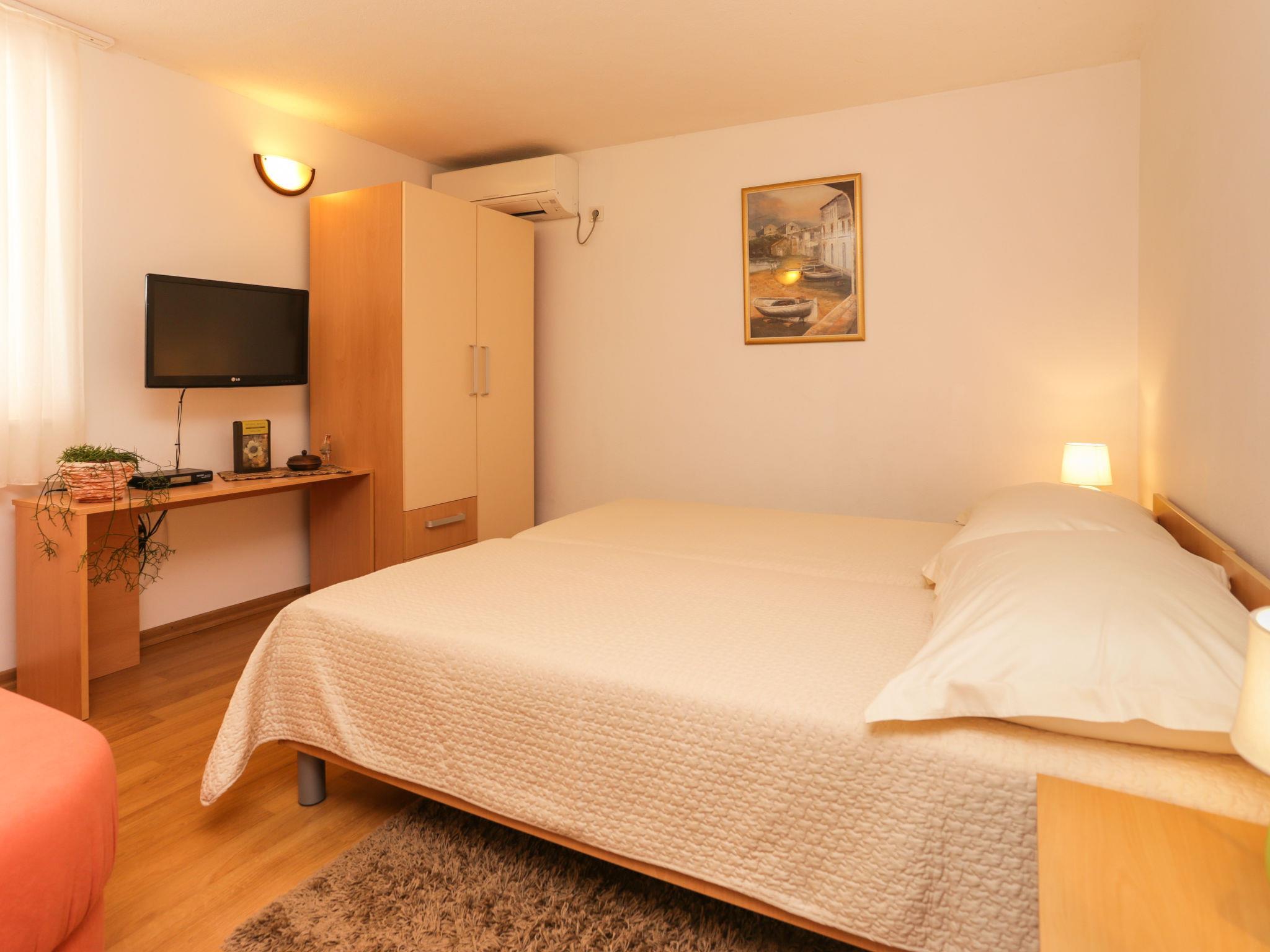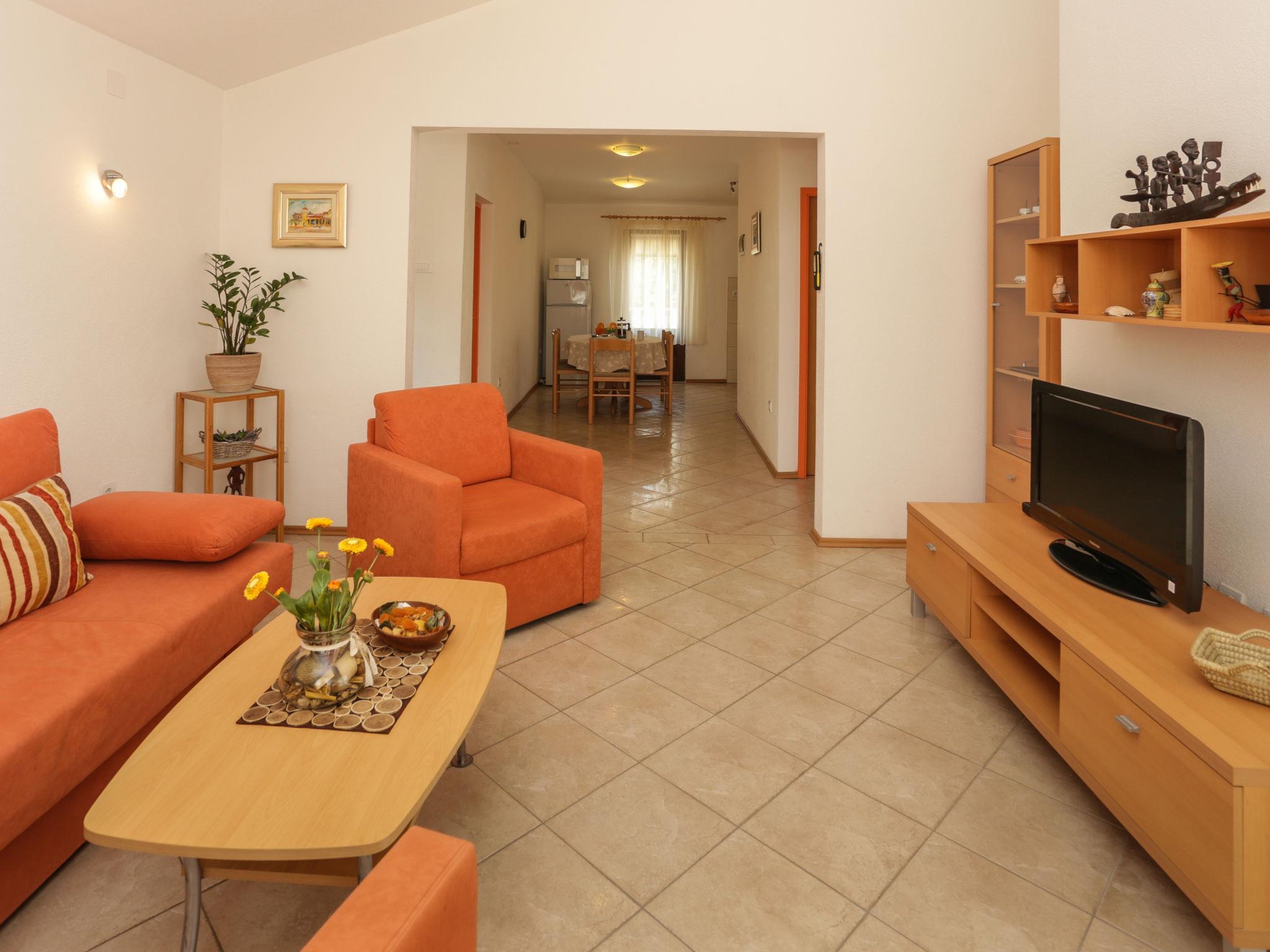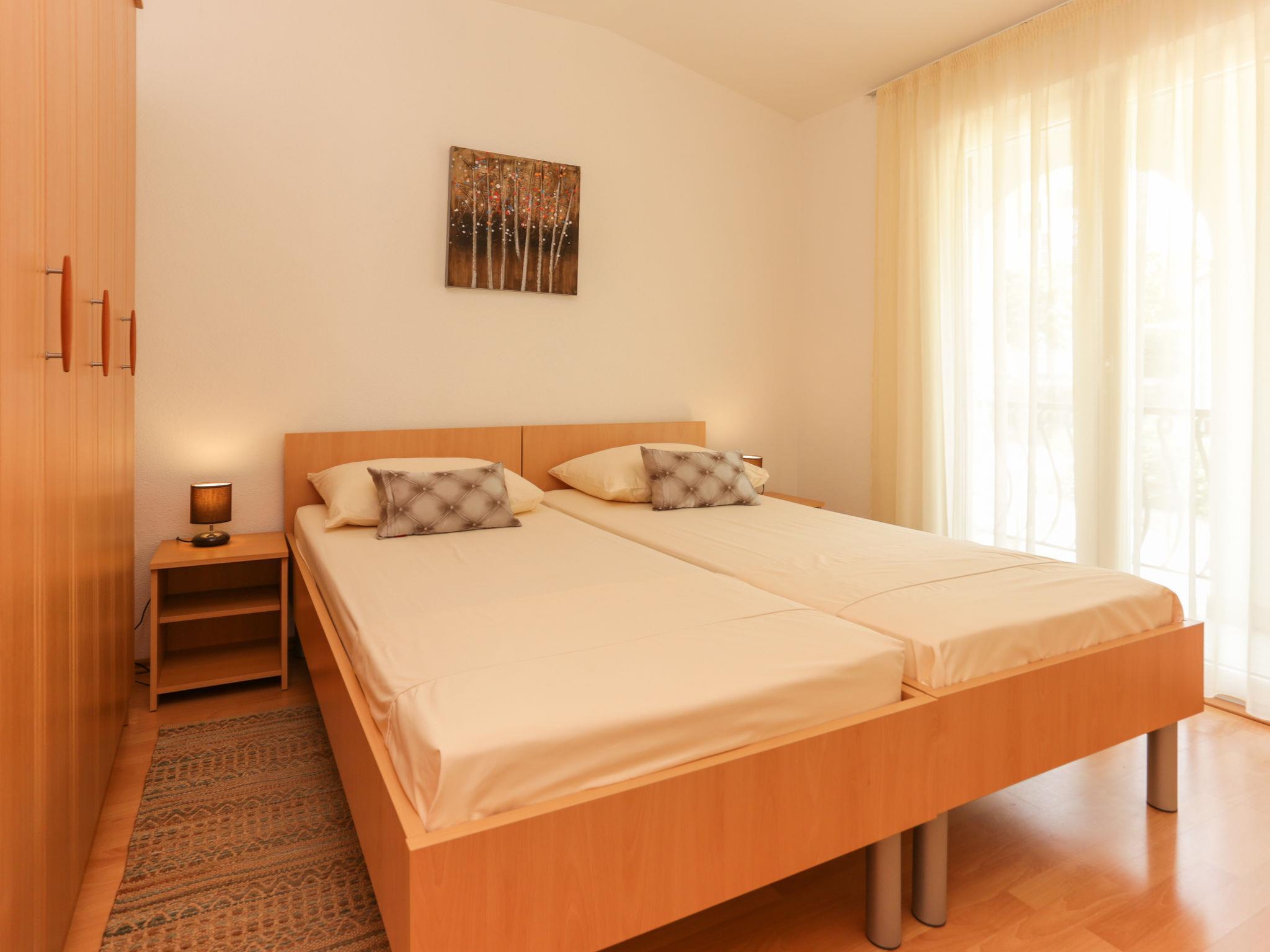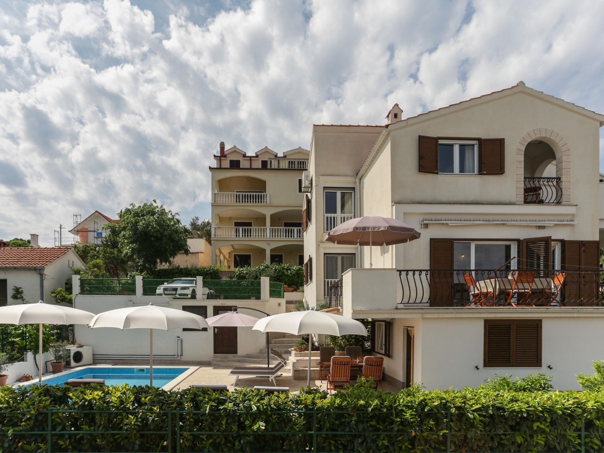 6-Zimmer-Haus 200 m2 auf 3 Stockwerken. Wohn-/Esszimmer mit Sat-TV (Flachbildschirm). Ausgang zur Terrasse. 1 Zimmer mit 1 Bett (80 cm, Länge 190 cm), 1 franz. Bett (160 cm, Länge 200 cm). Offene Küche (4 Kochplatten, Backofen, Geschirrspüler, Tiefkühler) mit Klimaanlage. Dusche/WC. Unteres Geschoss: (Aussentreppe) 1 Zimmer mit 2 Betten (80 cm, Länge 200 cm), Sat-TV (Flachbildschirm), Klimaanlage. Küche (2 Kochplatten, Tiefkühler) mit Esstisch. Ausgang zur Terrasse. Dusche/WC. Obergeschoss: (Aussentreppe) Wohn-/Esszimmer mit 1 Diwanbett (140 cm, Länge 200 cm), Sat-TV (Flachbildschirm), Klimaanlage. Ausgang zur Terrasse. 1 Zimmer mit 1 franz. Bett (160 cm, Länge 200 cm), Klimaanlage. Ausgang zur Terrasse. 1 Zimmer mit 2 Betten (90 cm, Länge 200 cm), Klimaanlage. Ausgang zum Balkon. Offene Küche (4 Kochplatten, Geschirrspüler, Mikrowelle, Tiefkühler, elektrische Kaffeemaschine). Dusche/WC. Balkon 3 m2, Terrasse 30 m2, Terrasse 25 m2. Terrassenmöbel, Liegestühle. Herrliche Sicht auf das Meer. Zur Verfügung: Babybett, Haartrockner. Internet (Wireless LAN, gratis). Ferienwohnung im Erdgeschoss mit Küche und Schlafzimmer. Ferienwohnung im ersten Stock mit Wohn-/Essbereich, offene Küche und Schlafzimmer. Ferienwohnung im zweiten Stock mit Wohn-/Essbereich, offene Küche und 2 Schlafzimmer. UP/I-335-02/22-0901/1107