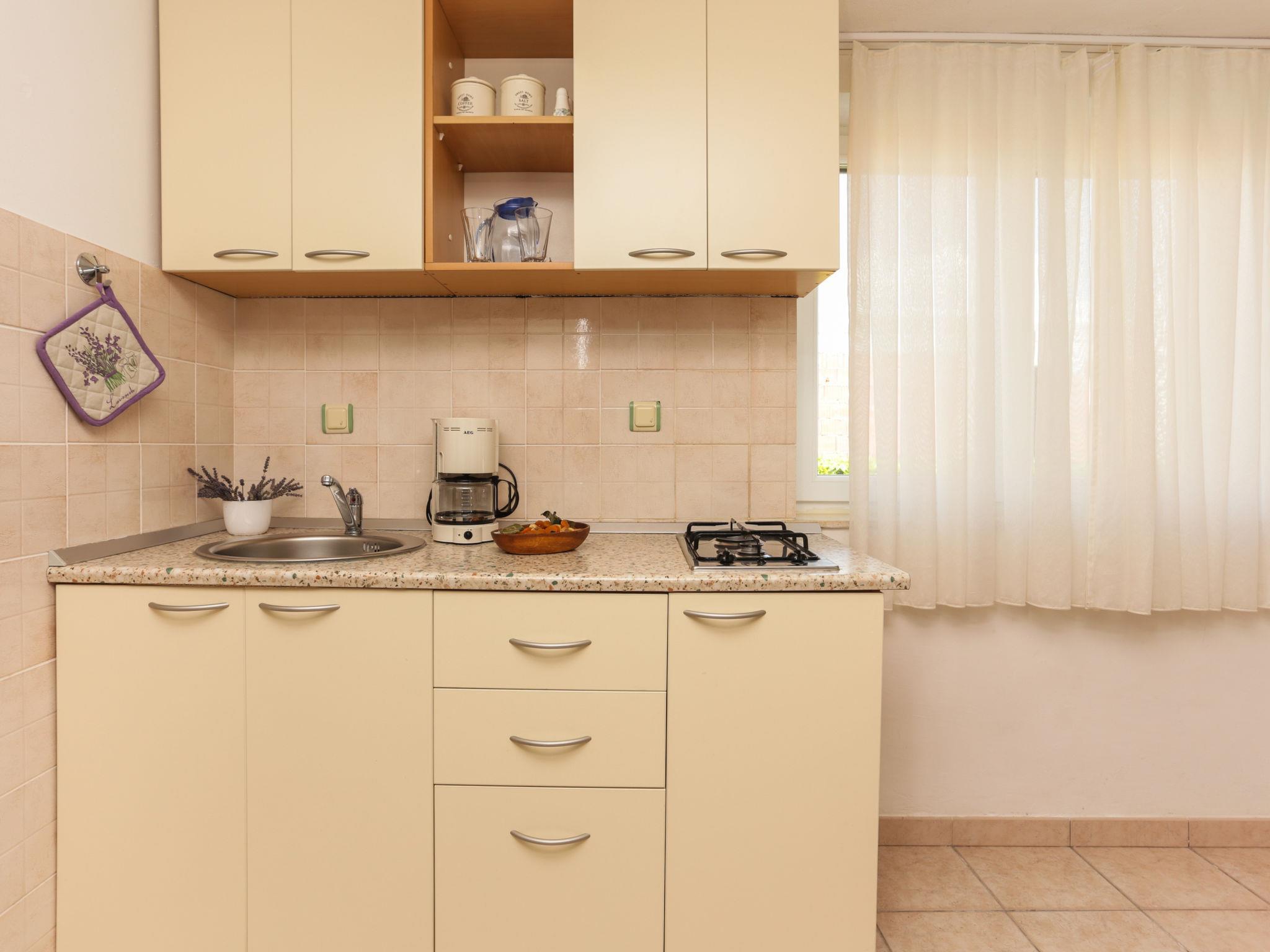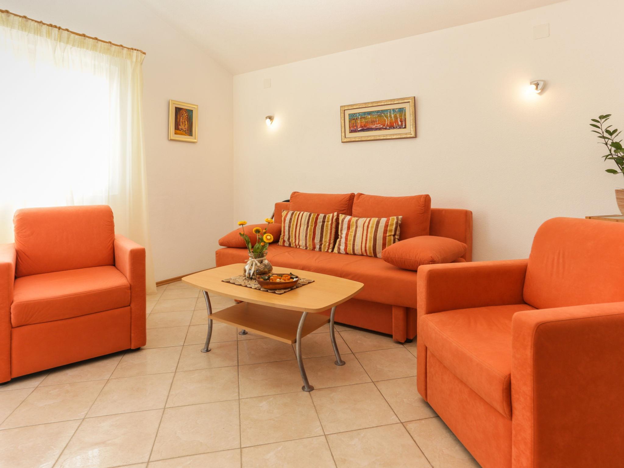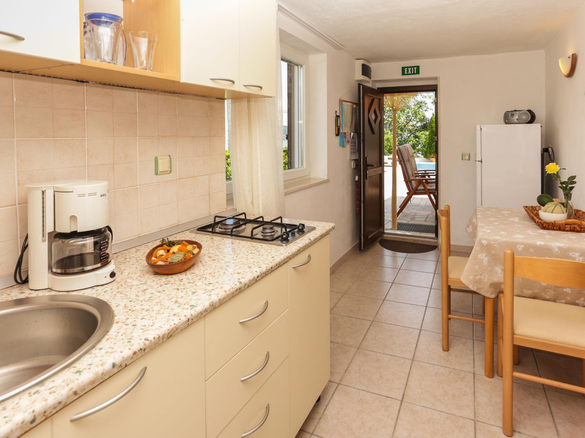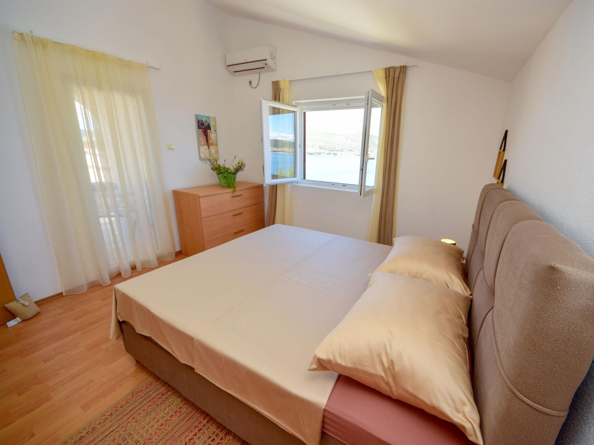 6-Zimmer-Haus 200 m2 auf 3 Stockwerken. Wohn-/Esszimmer mit Sat-TV (Flachbildschirm). Ausgang zur Terrasse. 1 Zimmer mit 1 Bett (80 cm, Länge 190 cm), 1 franz. Bett (160 cm, Länge 200 cm). Offene Küche (4 Kochplatten, Backofen, Geschirrspüler, Tiefkühler) mit Klimaanlage. Dusche/WC. Unteres Geschoss: (Aussentreppe) 1 Zimmer mit 2 Betten (80 cm, Länge 200 cm), Sat-TV (Flachbildschirm), Klimaanlage. Küche (2 Kochplatten, Tiefkühler) mit Esstisch. Ausgang zur Terrasse. Dusche/WC. Obergeschoss: (Aussentreppe) Wohn-/Esszimmer mit 1 Diwanbett (140 cm, Länge 200 cm), Sat-TV (Flachbildschirm), Klimaanlage. Ausgang zur Terrasse. 1 Zimmer mit 1 franz. Bett (160 cm, Länge 200 cm), Klimaanlage. Ausgang zur Terrasse. 1 Zimmer mit 2 Betten (90 cm, Länge 200 cm), Klimaanlage. Ausgang zum Balkon. Offene Küche (4 Kochplatten, Geschirrspüler, Mikrowelle, Tiefkühler, elektrische Kaffeemaschine). Dusche/WC. Balkon 3 m2, Terrasse 30 m2, Terrasse 25 m2. Terrassenmöbel, Liegestühle. Herrliche Sicht auf das Meer. Zur Verfügung: Babybett, Haartrockner. Internet (Wireless LAN, gratis). Ferienwohnung im Erdgeschoss mit Küche und Schlafzimmer. Ferienwohnung im ersten Stock mit Wohn-/Essbereich, offene Küche und Schlafzimmer. Ferienwohnung im zweiten Stock mit Wohn-/Essbereich, offene Küche und 2 Schlafzimmer. UP/I-335-02/22-0901/1107
