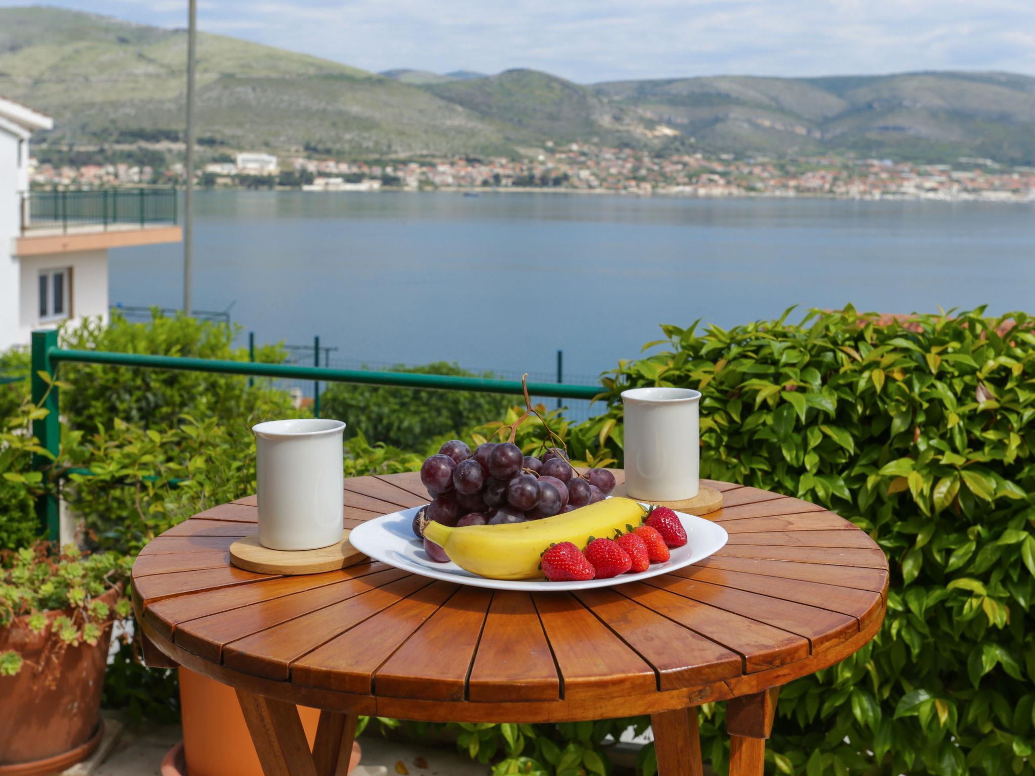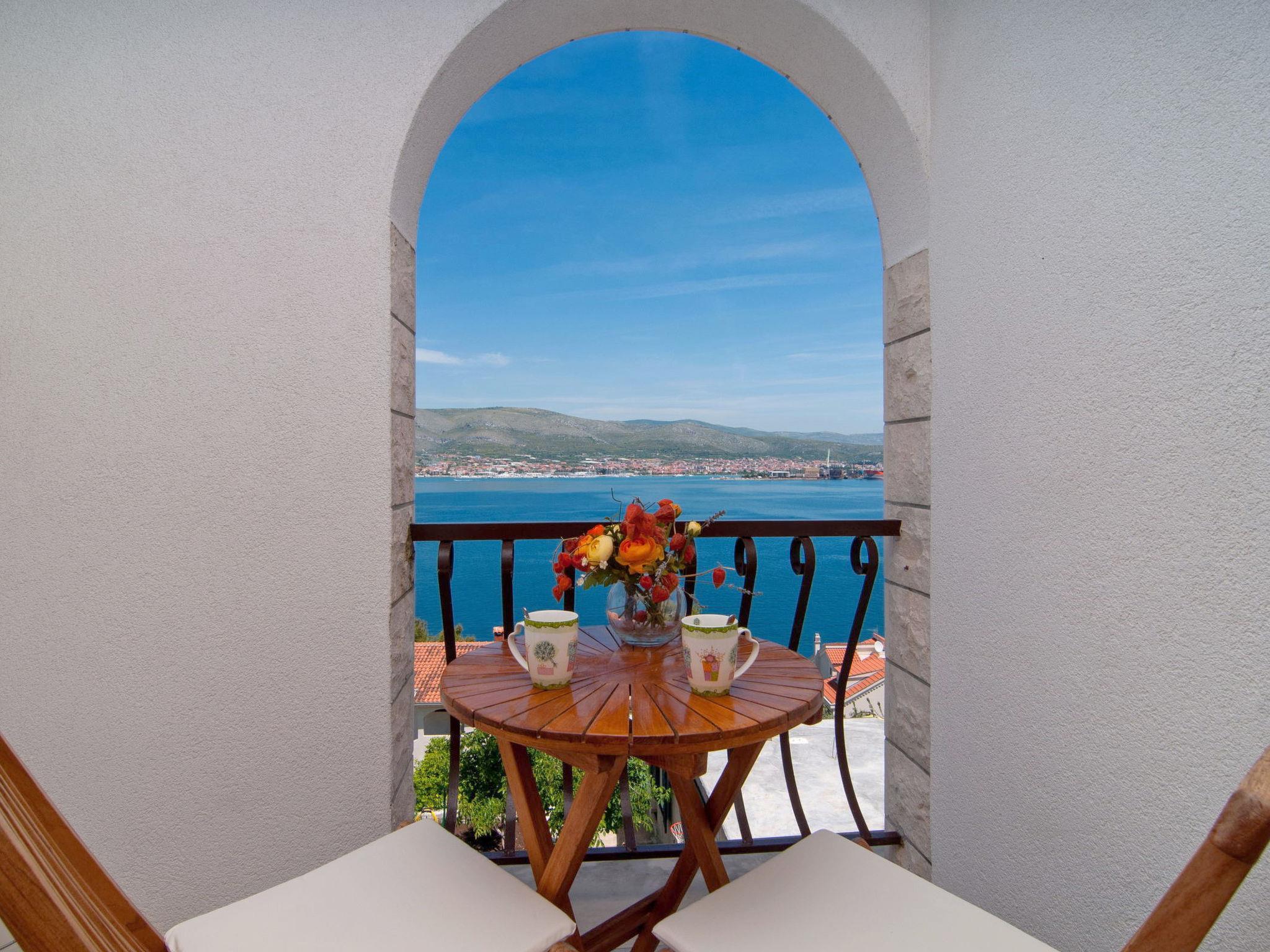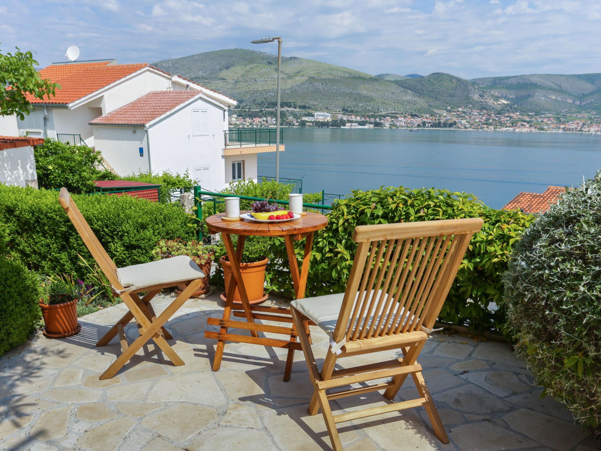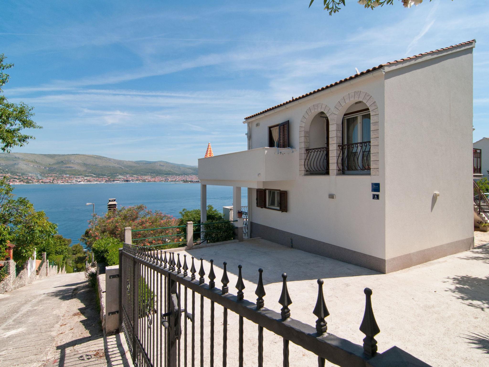 Okrug Donji 8 km von Trogir: Einfamilienhaus "Villa Anita", auf 3 Stockwerken. Ruhige, sonnige, erhöhte Lage, 100 m vom Meer, 100 m vom Strand, Richtung Norden. Zur Alleinbenutzung: Grundstück 600 m2, Schwimmbad eckig (6 x 4 m, 150 cm tief, saisonale Verfügbarkeit: 01.Mai. - 01.Okt.) mit Innentreppe. Aussendusche, Terrasse (20 m2), Gartenmöbel, Grill. Im Hause: Internetzugang, Waschmaschine. Parkplatz (für 3 Autos) beim Haus auf dem Grundstück. Einkaufsgeschäft 500 m, Restaurant 2.5 km, Bushaltestelle 350 m, Felsstrand, betonierter Strand 100 m. Tennis 3 km. Bitte beachten: Flugplatz 12 km vom Haus. Das Haus besteht aus 3 Ferienwohnungen, als eine Einheit gemietet: eine Ferienwohnung im Erdgeschoss, eine Wohnung im ersten Stock und eine im zweiten Stock.