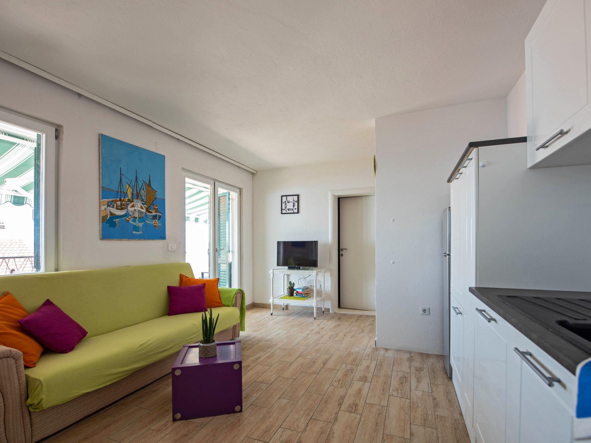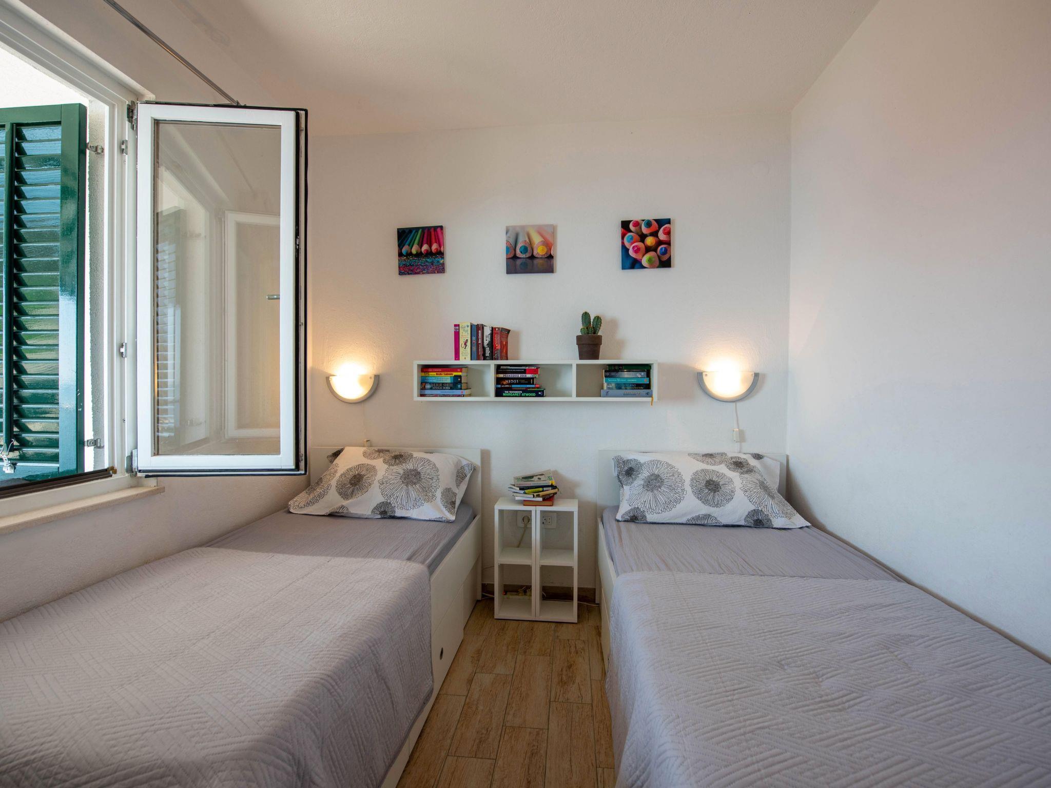 Ihre Ferienwohnung ist nur etwa 100 Meter vom Meer mit kristallklarem Wasser entfernt. Ein schmaler Weg führt direkt an der Wohnung vorbei und führt zu einem kleinen Bootssteg, der nur wenige Minuten entfernt ist. Das nächstgelegene Café ist nur 50 Meter entfernt. Ein Sandstrand ist etwa 1 km entfernt. Bis zum Dorfzentrum von Okrug Gornji mit einer guten Auswahl an Geschäften, bunten Märkten, Cafés und Restaurants sind es etwa 3 km.