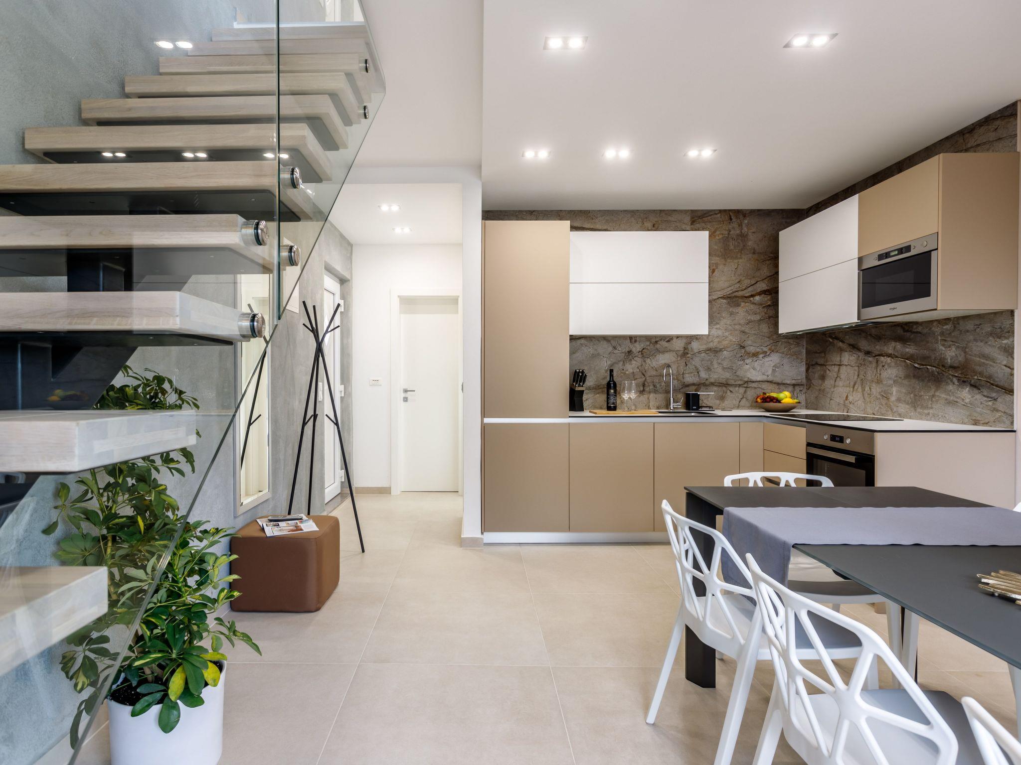 Die Villa Tango befindet sich in einer ruhigen, friedlichen und sicheren Gegend. Abseits der geschäftigen Stadt, aber dennoch nahe genug, um Trogir und Split, die zweitgrößte Stadt Kroatiens, leicht zu erreichen. Die Villa Tango befindet sich in einem abgelegenen Urlaubsort, der als perfekter Ausgangspunkt für Entspannung und die Erkundung der Schönheiten und der Geschichte der dalmatinischen Küste dient. Der Strand ist nur 150 m von der Villa entfernt und ein größerer Kieselstrand Copacabana ist nur einen kurzen Spaziergang von 15 Minuten entfernt, wo Sie auch zahlreiche Restaurants, Bars, Pizzerien und Cafés finden können, die traditionelle dalmatinische Küche und Liköre anbieten.