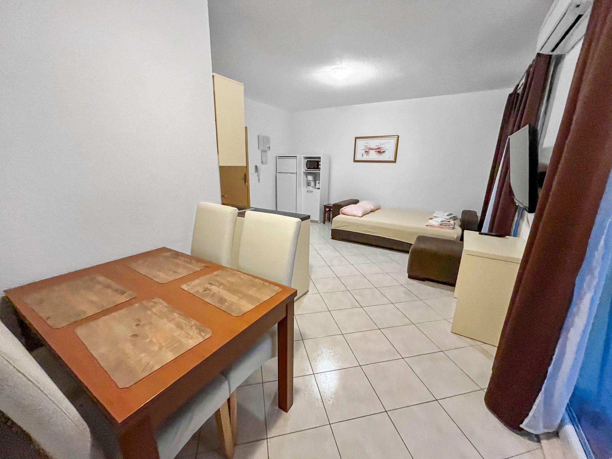 Im Inneren der Wohnung erwartet Sie eine funktionale Ausstattung, die alle notwendigen Annehmlichkeiten für einen komfortablen Aufenthalt bereithält. Die Anwesenheit von Klimaanlagen in allen Räumen sorgt selbst in den wärmsten Monaten für eine angenehme Atmosphäre. Für gemeinsame Kochmomente finden Sie eine Küche vor, die mit einem 2-Platten-Herd, einer Kaffeemaschine und einem Wasserkocher ausgestattet ist. Und für Ihre Bequemlichkeit steht eine Waschmaschine zur gemeinschaftlichen Nutzung im Gebäude bereit.