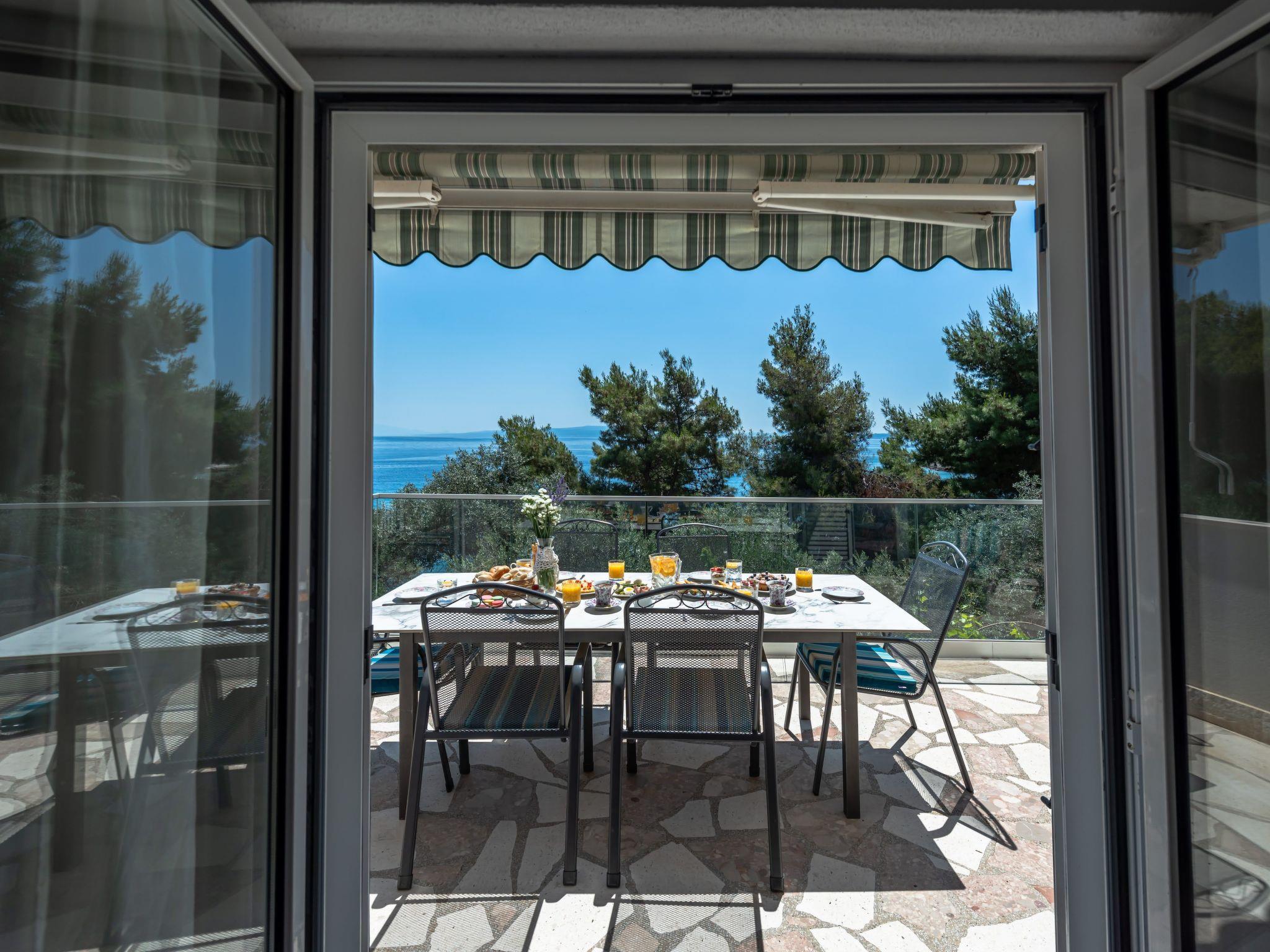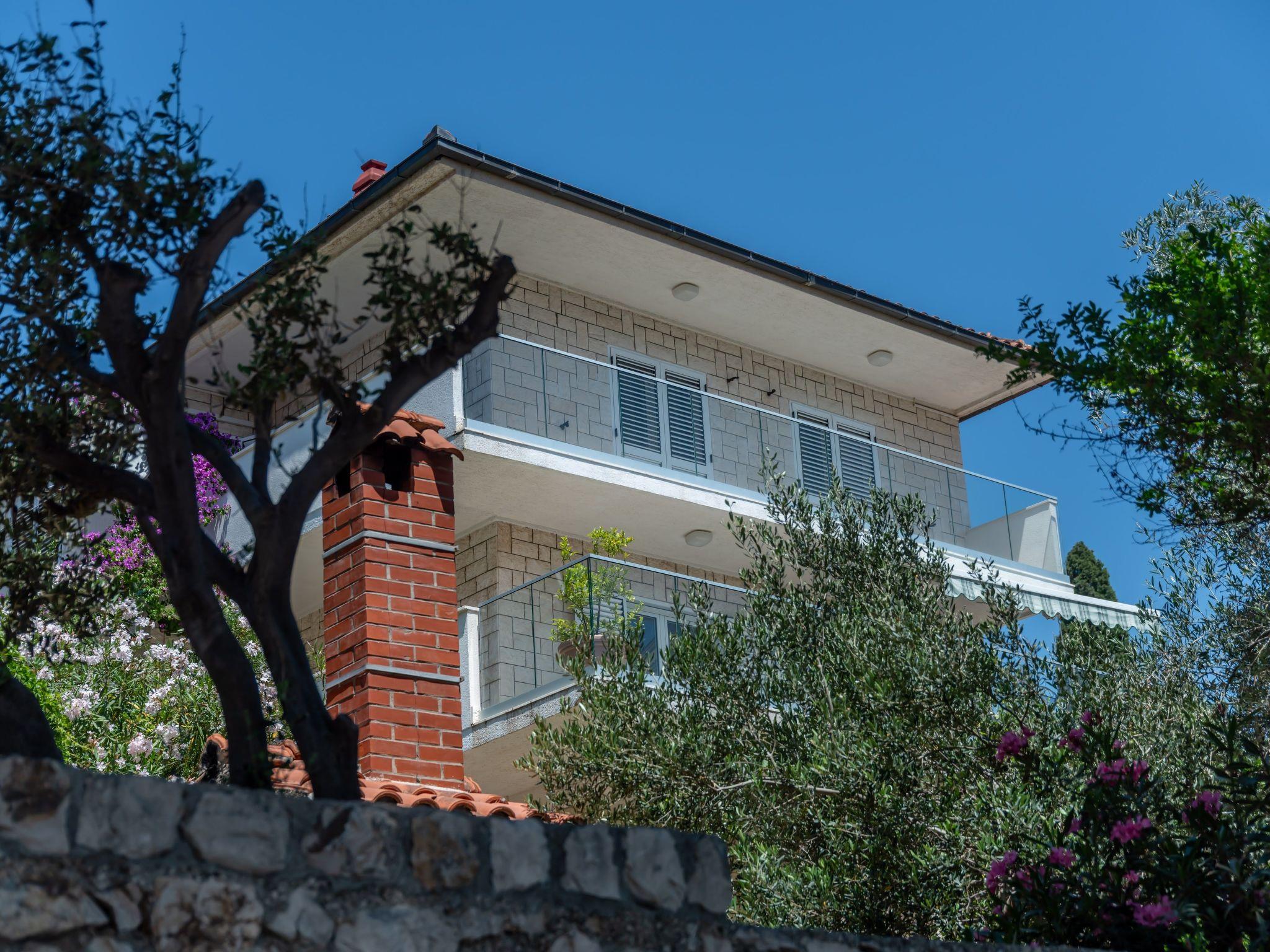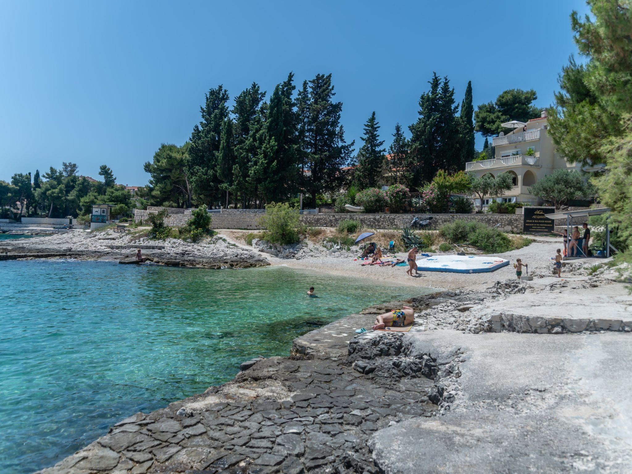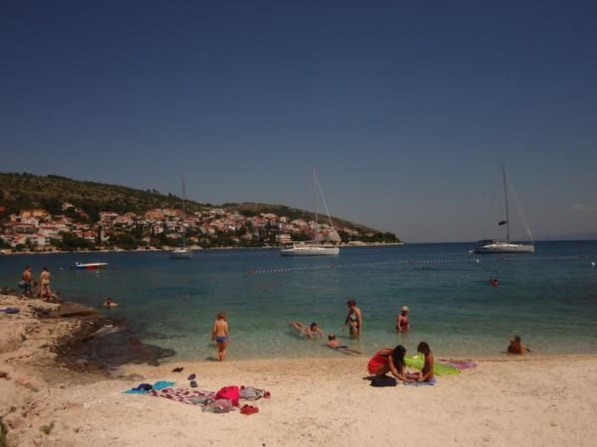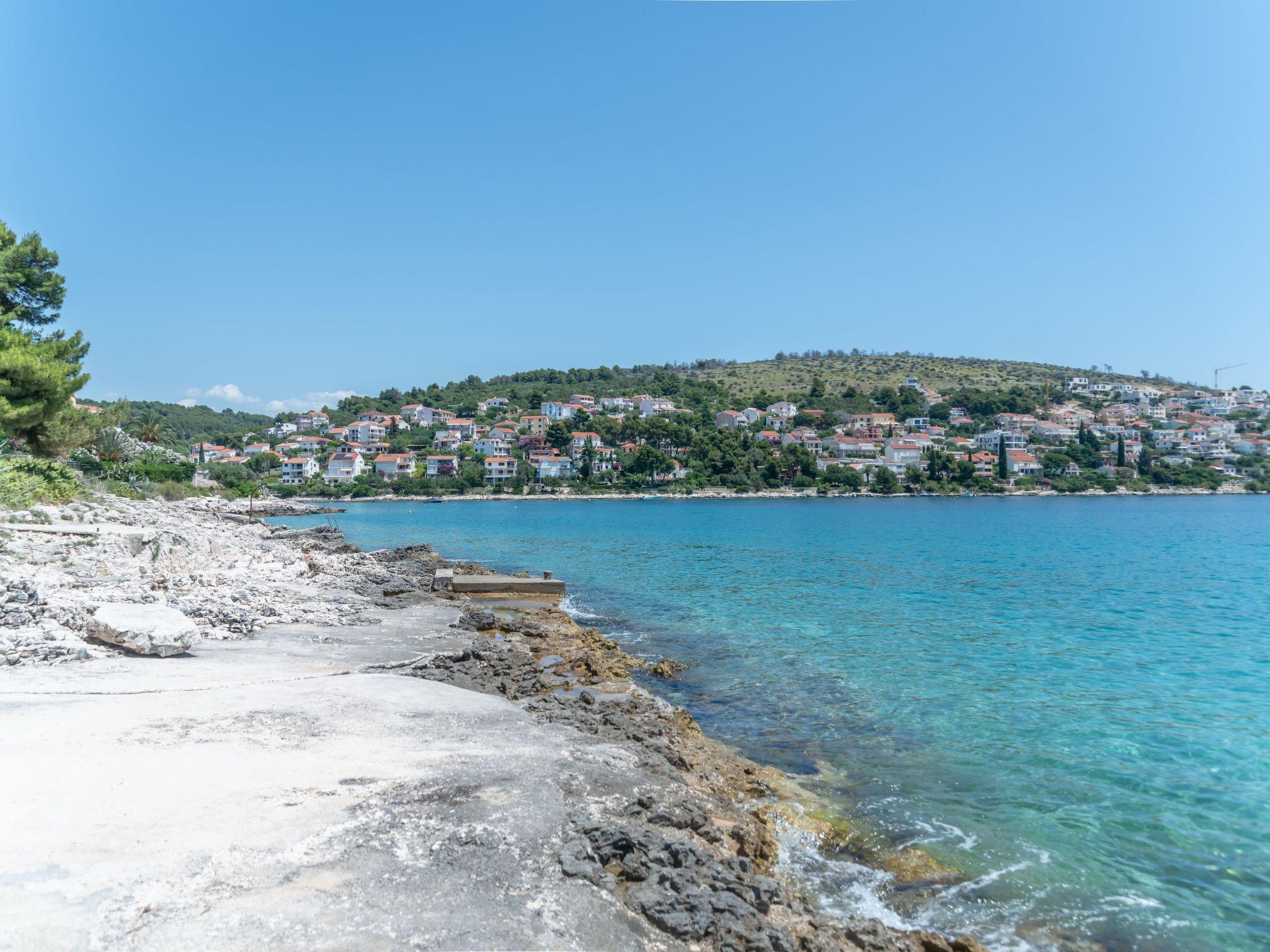 Das Ferienhaus befindet sich in ruhiger, erhöhter Lage auf der Südseite der Insel Ciovo, die mit der Stadt Trogir verbunden ist. Es liegt an einem wunderschönen Strand mit Blick auf das offene Meer und die Inseln Brac und Solta.