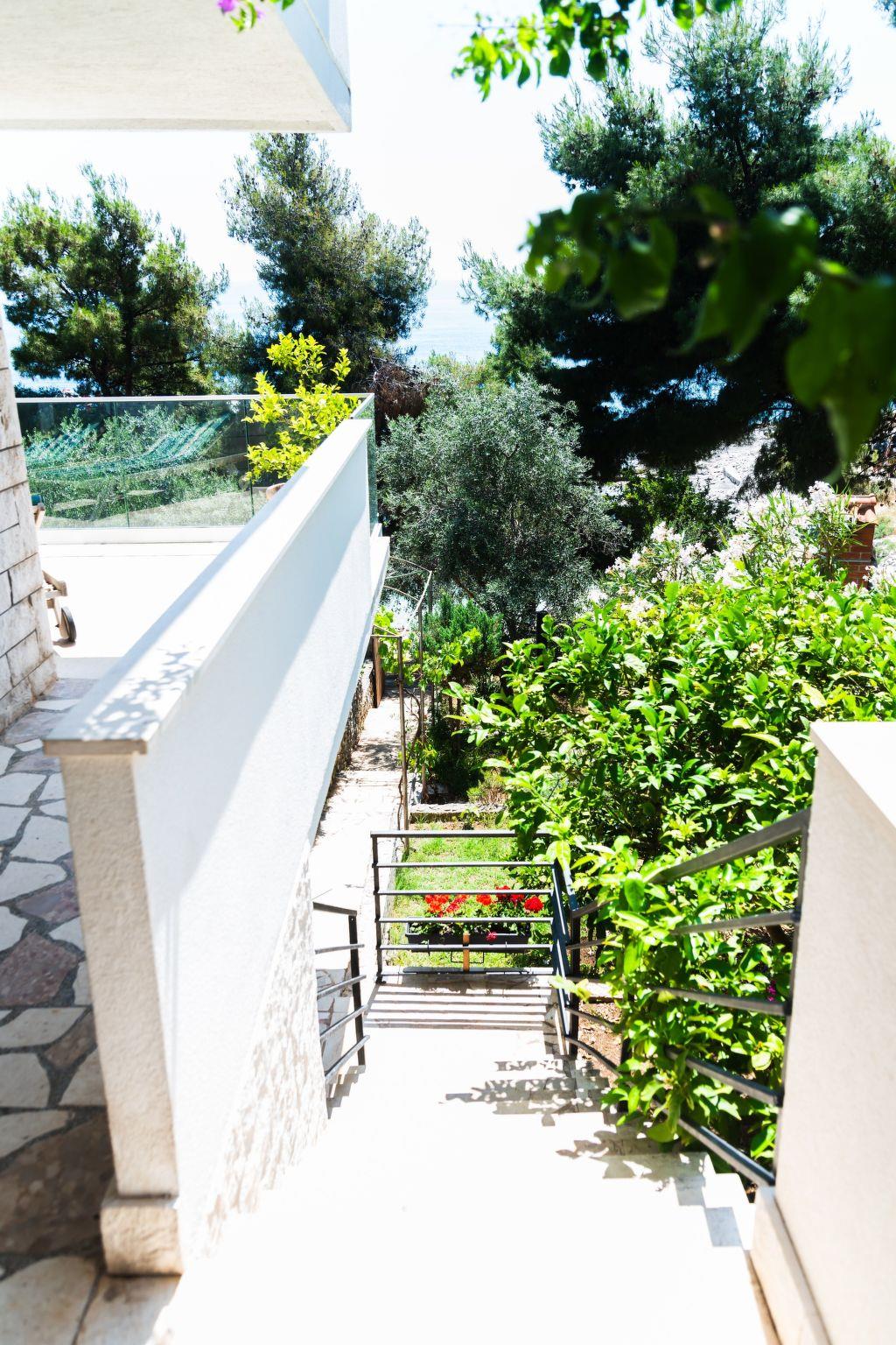 Wenn Sie durch den Garten gehen, kommen Sie direkt zum Strand. Alles, was Sie sonst noch für einen angenehmen Urlaub benötigen, wie Lebensmittelgeschäft, Apotheke, Post, Metzgerei, Bäckerei und ein Markt, ist nur 400 Meter vom Haus entfernt und bequem zu Fuß erreichbar. In der Nähe, nur 200 Meter vom Haus entfernt, gibt es auch einen Tauchclub mit langjähriger Erfahrung. Im 700 Meter entfernten Ortszentrum von Okrug Donji finden Sie Bars und Unterhaltungsmöglichkeiten. Sie können dort Tretboote, Jet-Ski und Wasserski mieten sowie Ausflüge zu den nahe gelegenen Inseln und den bekannten Nationalparks buchen.