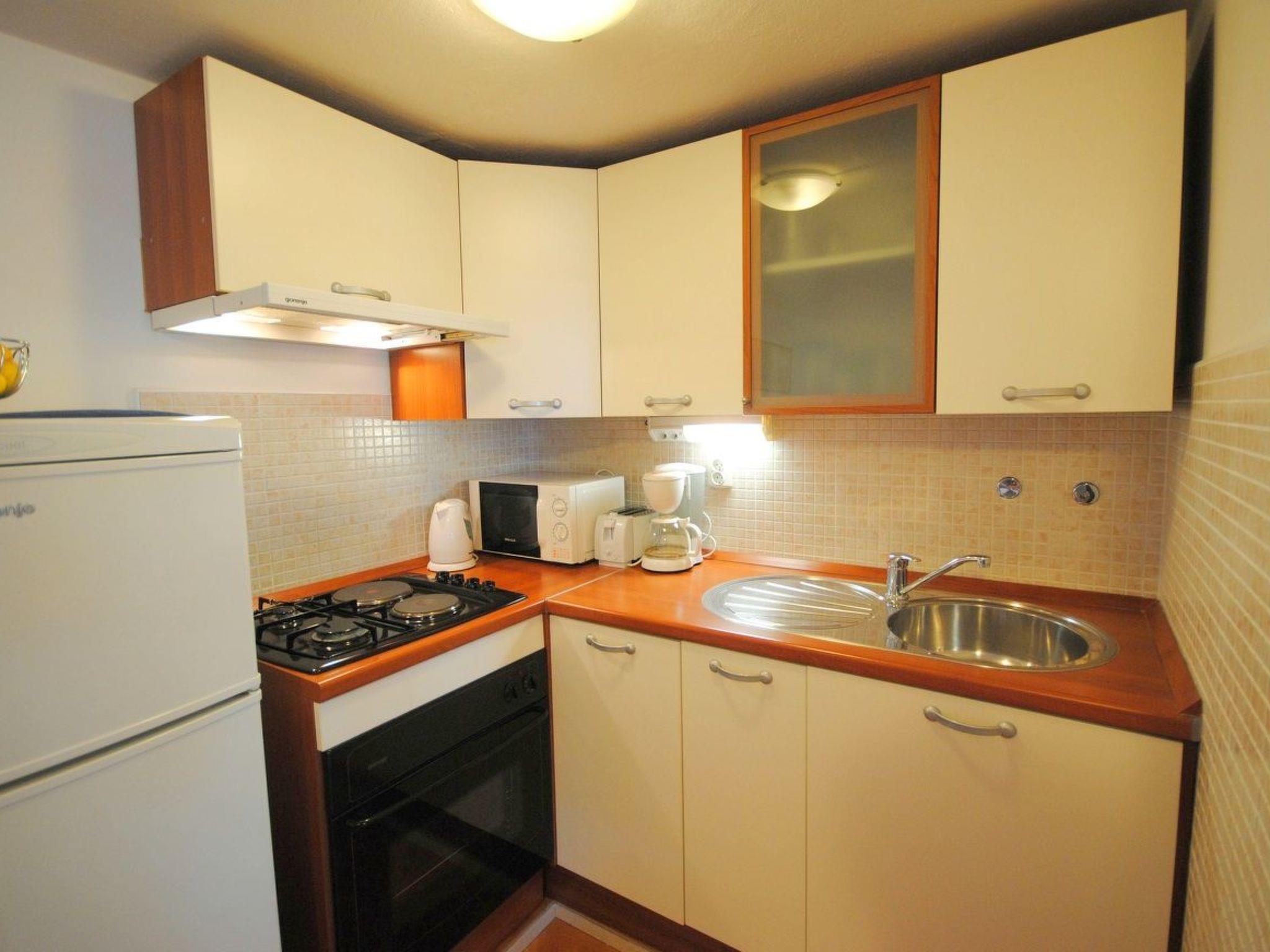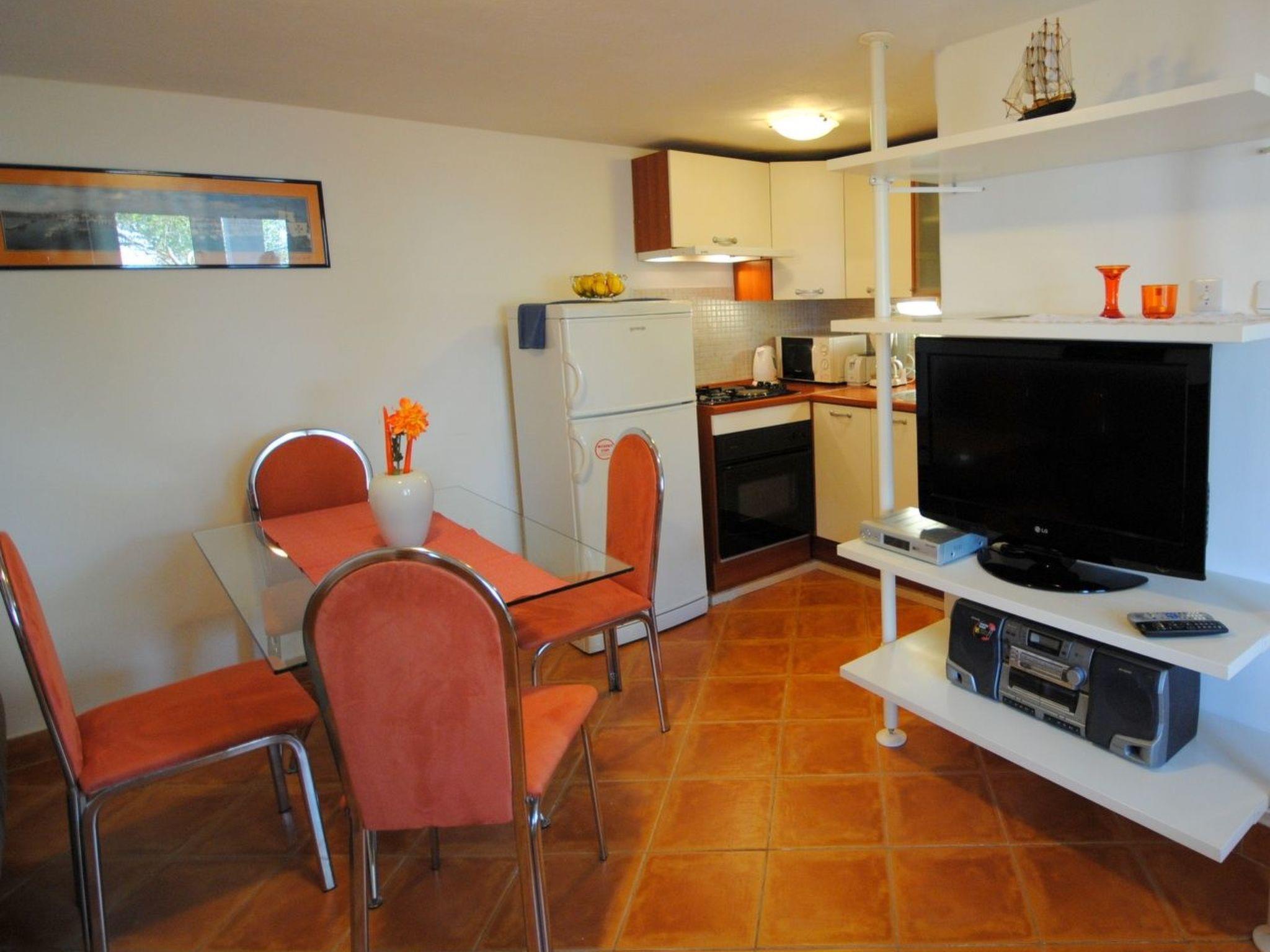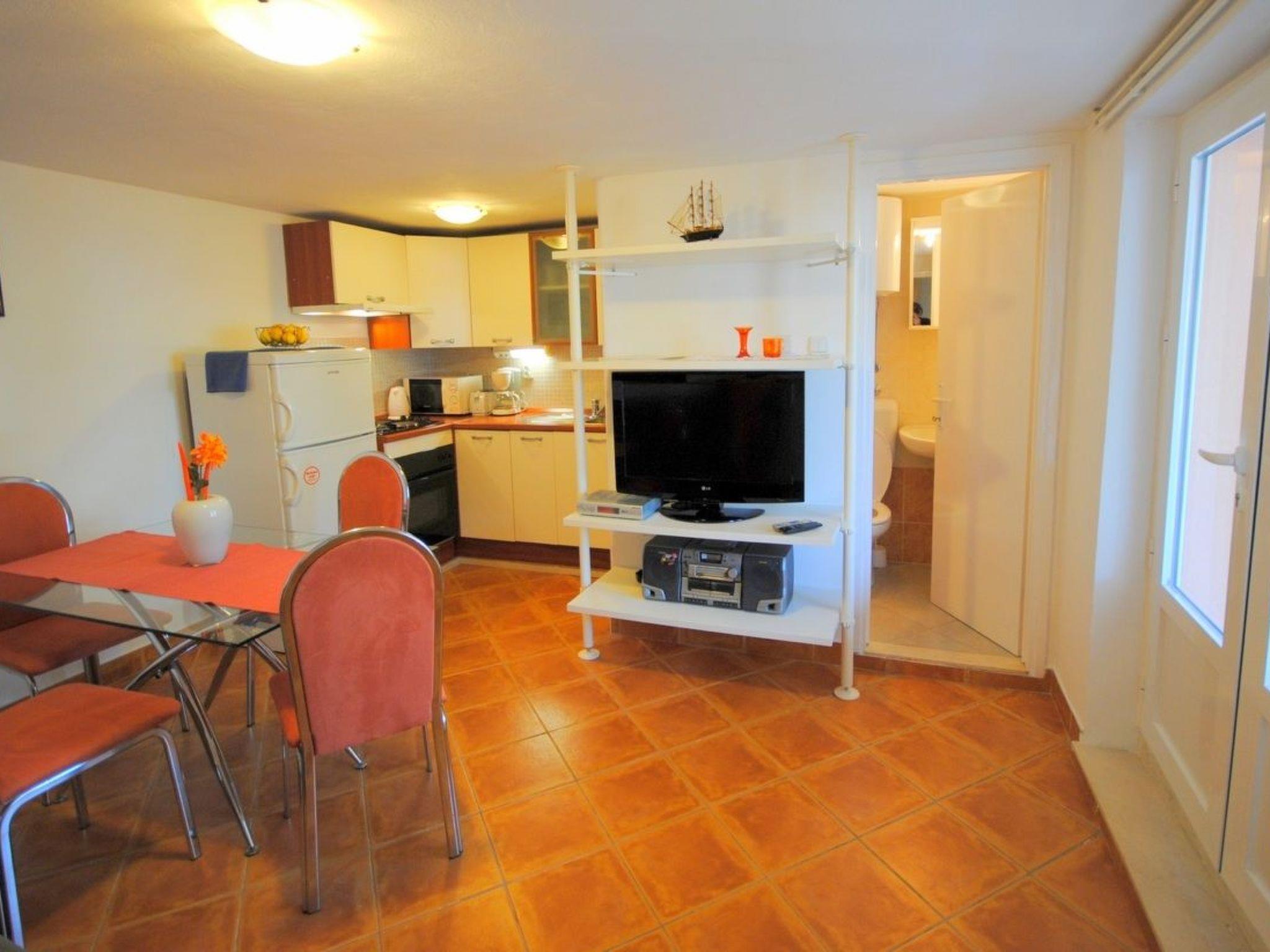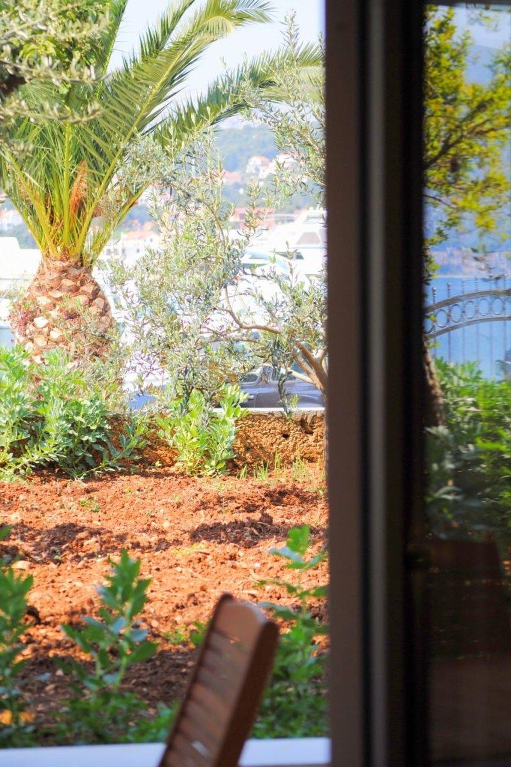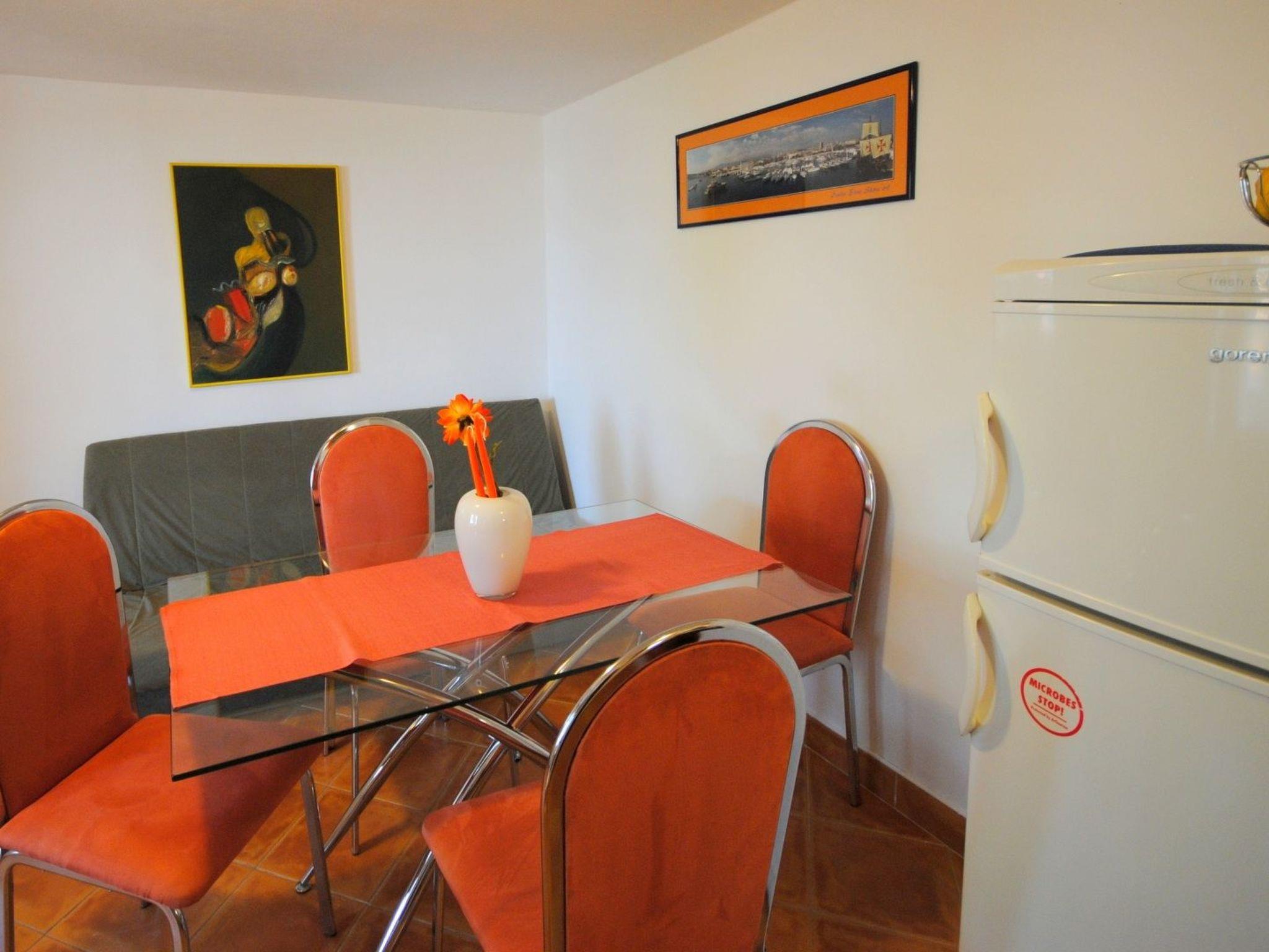 Wenn Sie nach draußen gehen, gelangen Sie auf eine einladende, offene Terrasse, auf der Sie das milde dalmatinische Klima genießen können. Obwohl der Schwerpunkt nicht auf Luxus liegt, bietet der gemeinschaftliche Gartenbereich einen ruhigen Ort zum Entspannen und für gesellige Runden. Dieser gemeinschaftlich genutzte Raum bietet eine zusätzliche Dimension des Vergnügens im Freien und vervollständigt Ihr Urlaubserlebnis am Strand.