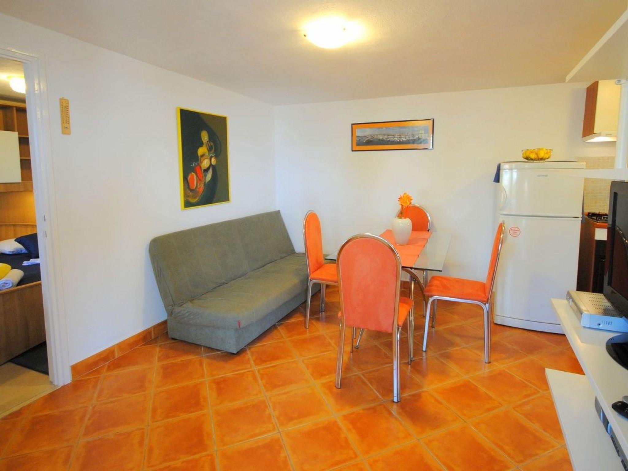 Das Innere der 40 Quadratmeter großen Wohnung ist durchdacht eingerichtet, um den Komfort zu maximieren. Das Schlafzimmer ist mit einem bequemen Doppelbett ausgestattet, das für erholsame Nächte sorgt. Für zusätzliche Schlafmöglichkeiten steht ein Schlafsofa für einen weiteren Gast zur Verfügung. Die Kombination aus gut ausgestatteter Küche und Essbereich bietet einen einladenden Raum für die Zubereitung und den Genuss von Mahlzeiten. Die teilweise vorhandene Klimaanlage sorgt für ein angenehmes Raumklima, egal wie das Wetter draußen ist.