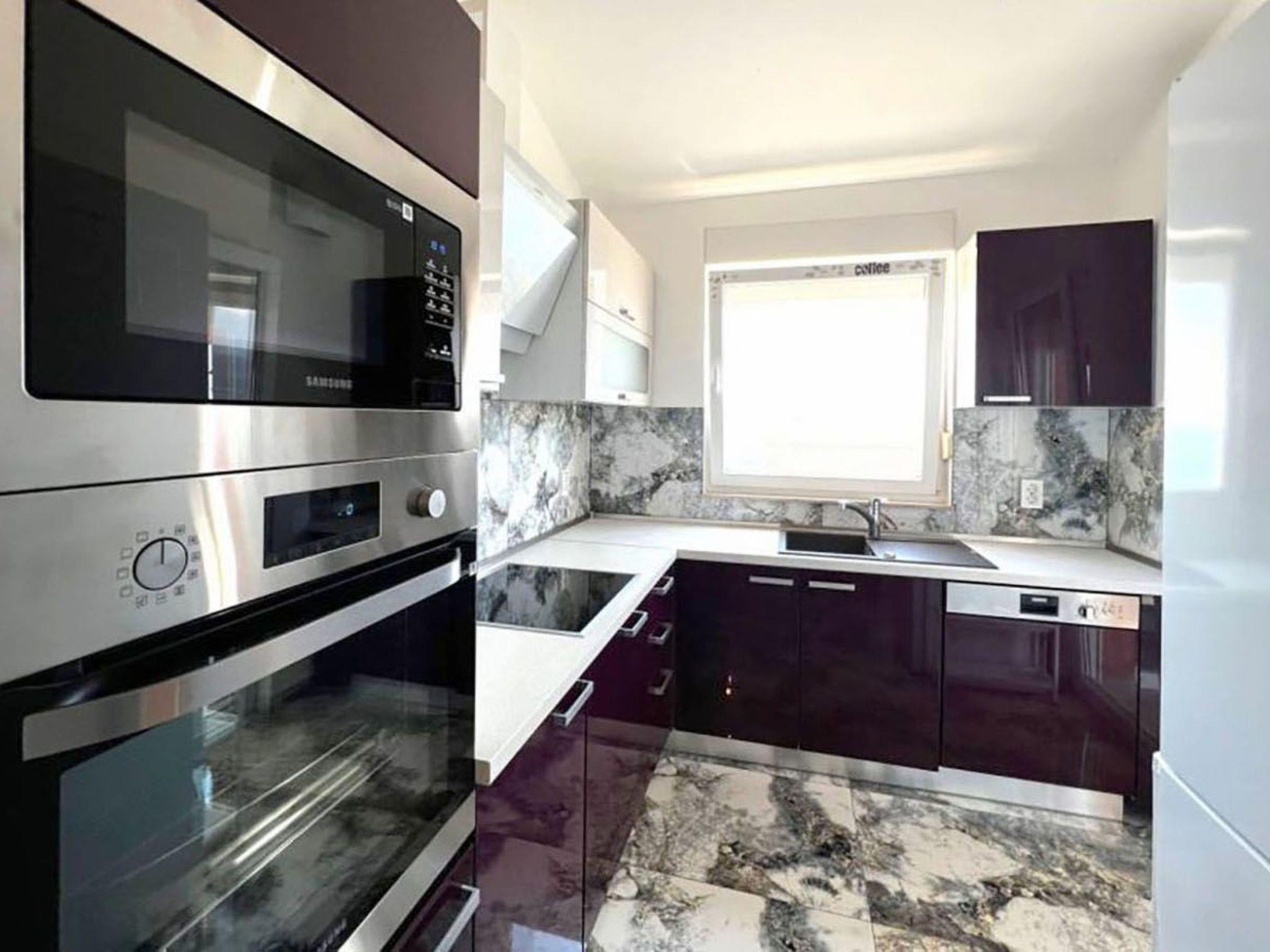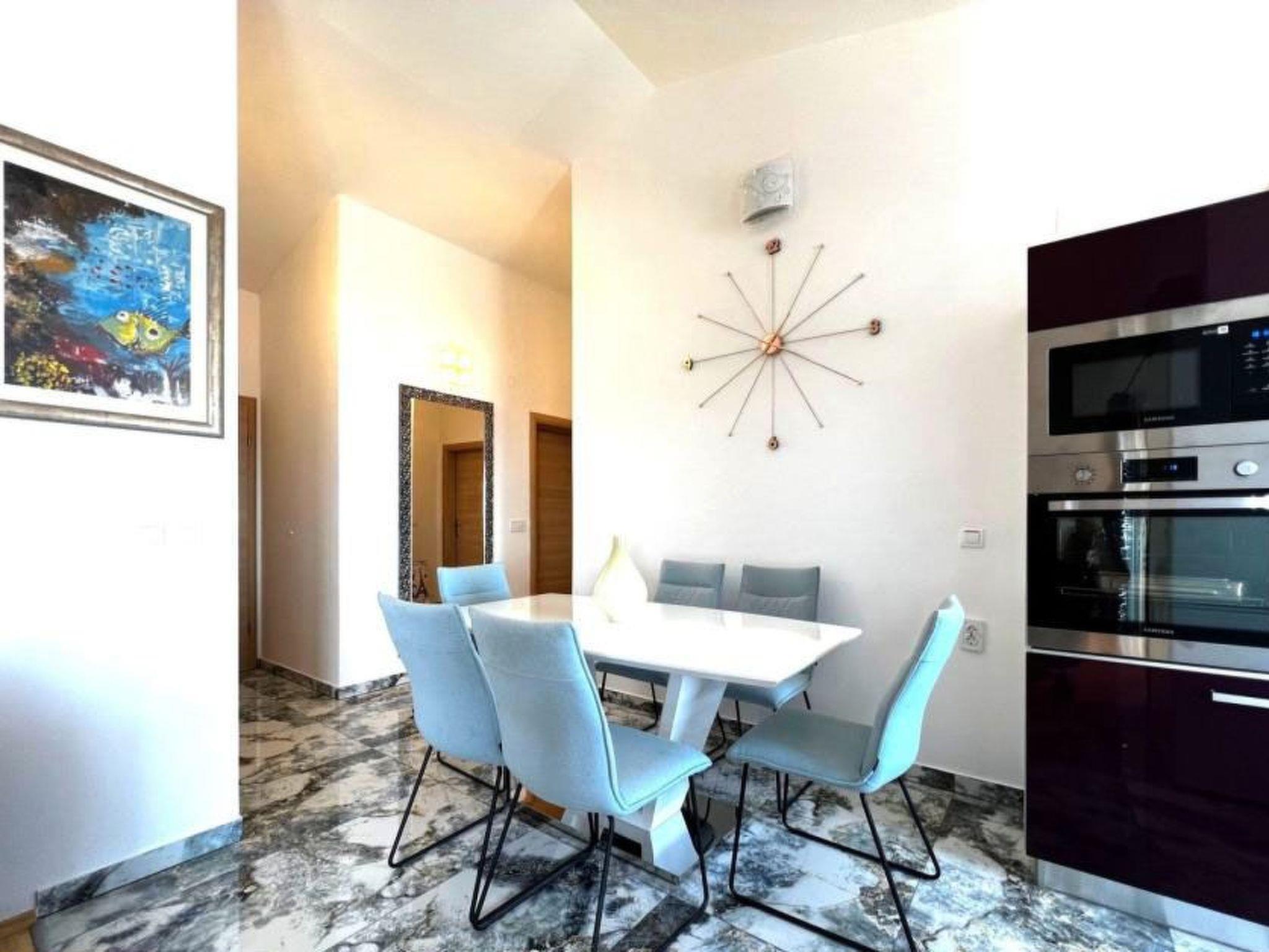 Das moderne Penthouse begeistert durch sein elegantes Design und den spektakulären Blick auf die Inseln. Der großzügige Wohnbereich verfügt über moderne und komfortable Möbel, eine Klimaanlage und einen großen 190-cm-Fernseher und sorgt so für eine angenehme Atmosphäre. Große Schiebewände bieten einen unglaublichen Panoramablick auf die Inseln und durchfluten den Raum mit natürlichem Licht. Die Küche ist mit modernsten Geräten ausgestattet, das Esszimmer ist geräumig und ermöglicht es Ihnen, Ihre Mahlzeiten mit einem faszinierenden Blick auf das Meer zu genießen. Es verfügt über drei komfortable Zimmer, die jeweils mit einem luxuriösen Bett, einem Fernseher und einer Klimaanlage ausgestattet sind, um den Gästen vollen Komfort zu bieten. Das Badezimmer mit ebenerdiger Dusche sorgt für ein luxuriöses Entspannungserlebnis, während das separate WC für zusätzlichen Komfort sorgt. Ein großer Balkon mit Gartenmöbeln und einer Schaukel ist der perfekte Ort zum Entspannen und Genießen des Sonne