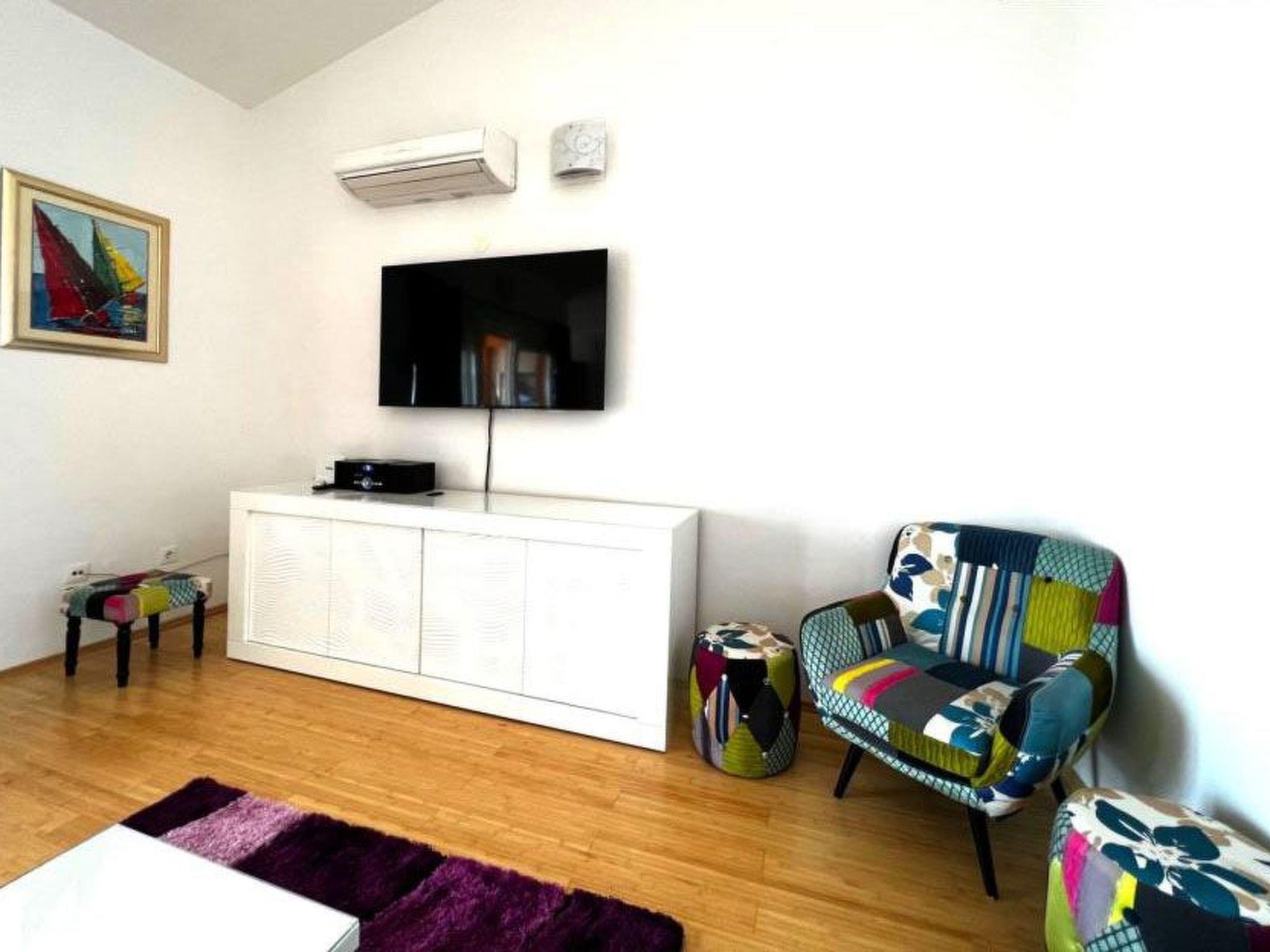 Die Dreizimmerwohnung im obersten Stockwerk in Okrug Gornji mit wunderschönem Blick auf die Inseln, 80 m vom Meer entfernt, ist mit drei Schlafzimmern (2 mit Doppelbett und 1 mit Etagenbett), einem Wohnzimmer und einer Küche ausgestattet , ein Badezimmer, eine Toilette und eine Terrasse. Die Wohnung ist modern mit viel natürlichem Licht und Luftigkeit eingerichtet und verfügt über alle notwendigen Einrichtungen für einen komfortablen Aufenthalt, darunter Klimaanlage in jedem Zimmer, TV, kostenfreies WLAN, Kaffeemaschine, Waschmaschine.