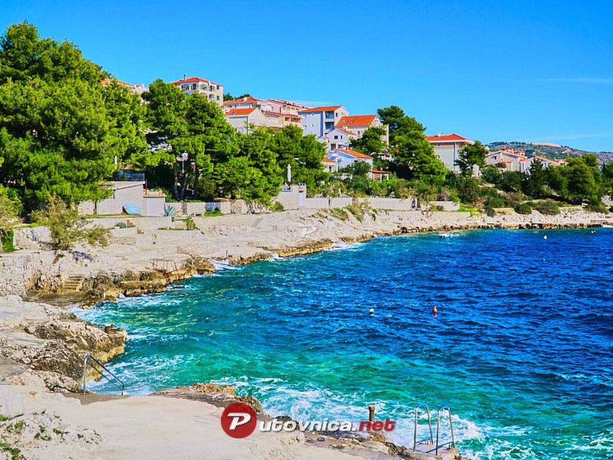 Diese Unterkunft befindet sich nur 70 Meter vom Meer entfernt. Bis in das Zentrum von Okrug Gornji ist es ungefähr einen Kilometer. Die nächst größere Stadt ist Trogir mit ihren vielen Cafes, Restaurants, Geschäften, einer Apotheke, Postamt und ein Supermarkt mit frischem Obst und Gemüse. Von Trogir wird eine Vielzahl an Ausflügen nach Split (Hauptstadt Dalmatiens), Sibenik und in den Nationalpark Krka mit seinen insgesamt etwa 860 Pflanzenarten und 220 Tierarten.