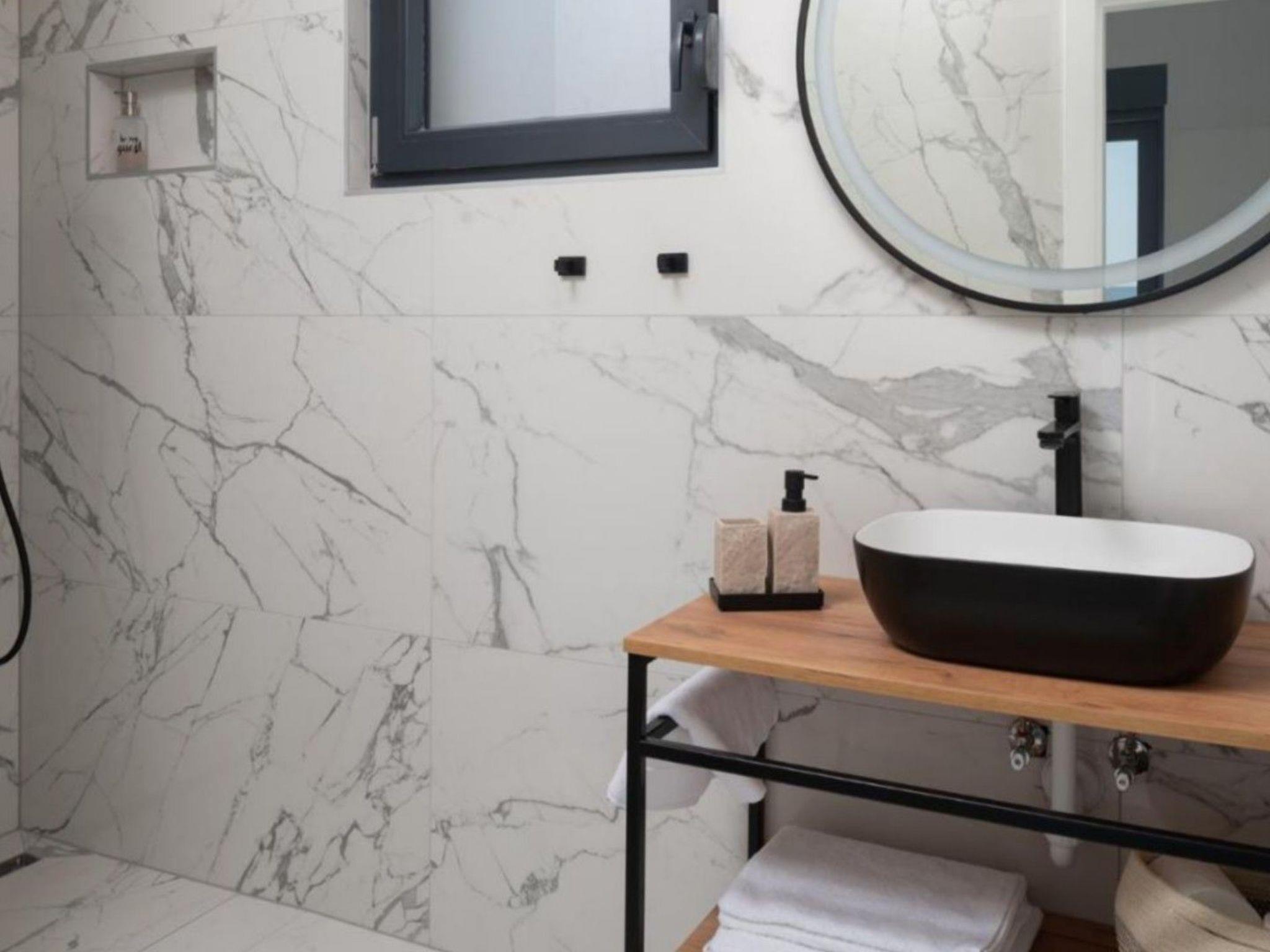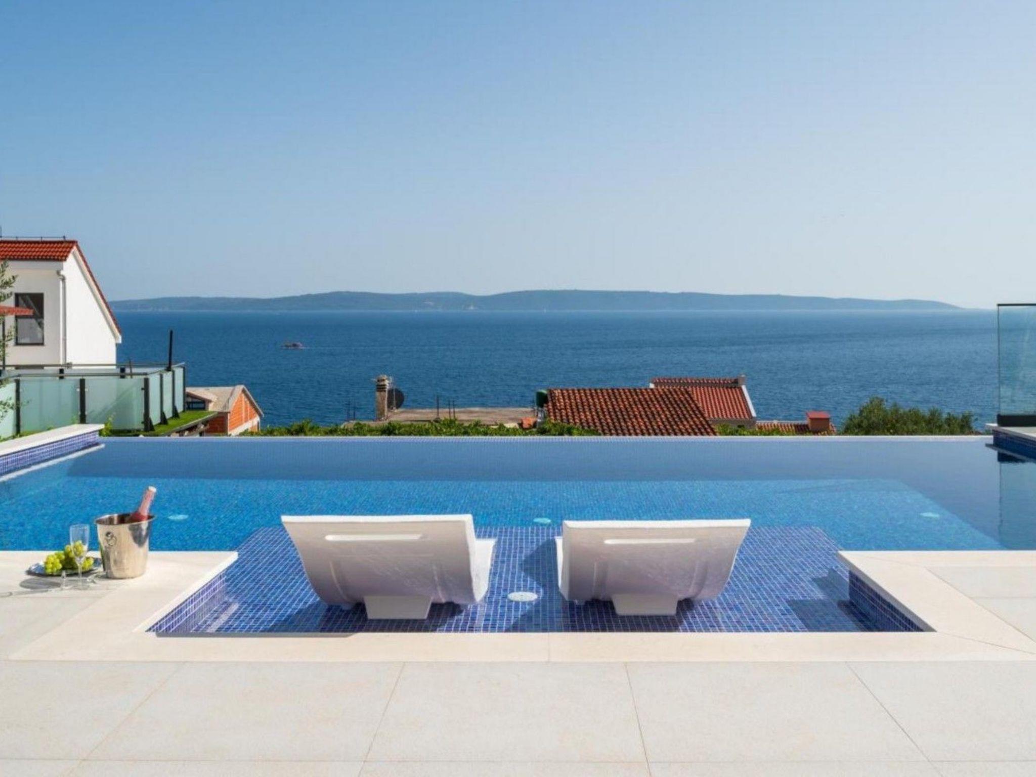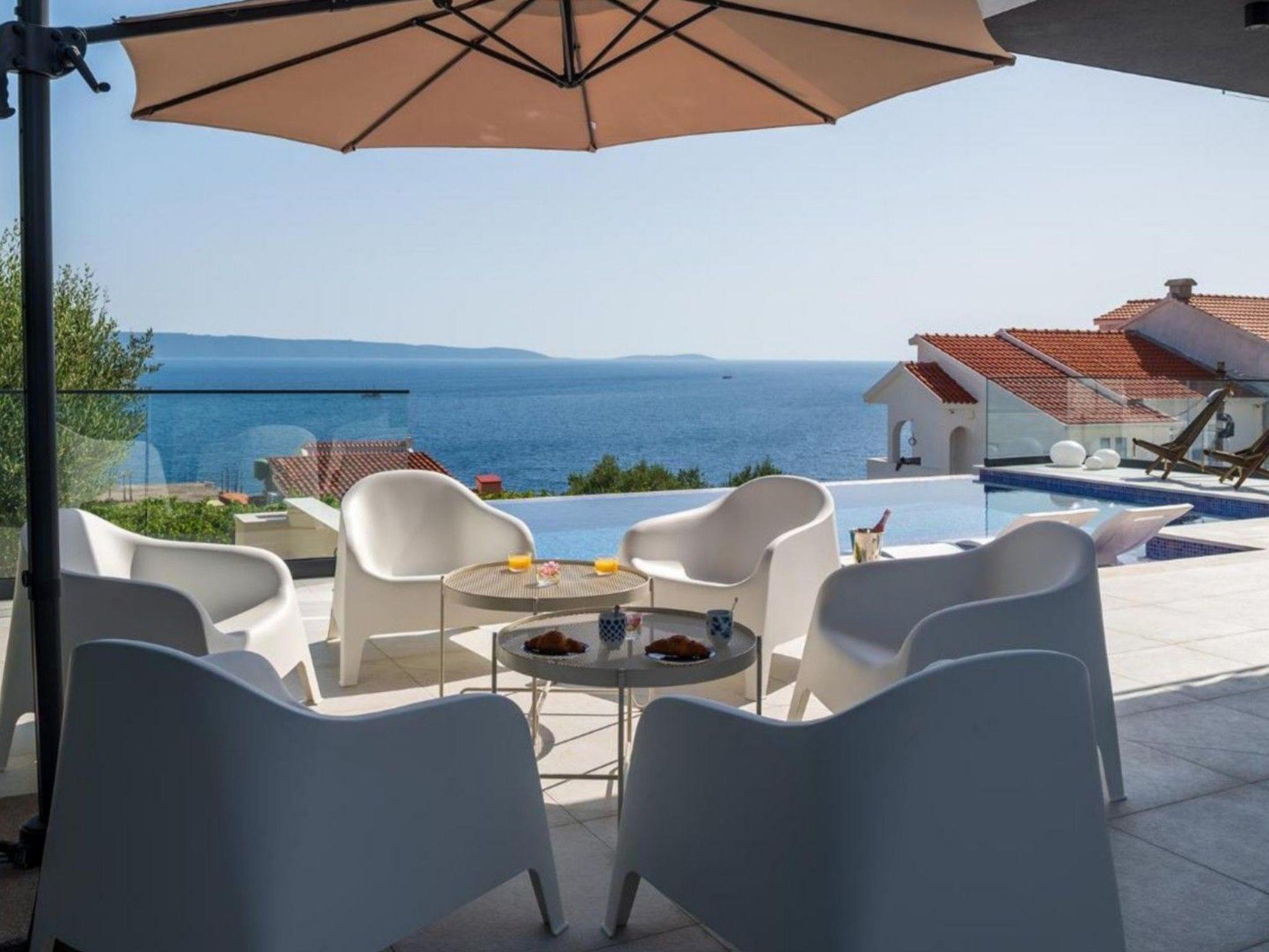 Diese moderne, geräumige Villa in einer ruhigen Gegend bietet alles, was für einen erholsamen Urlaub mit Freunden oder der Familie benötigt wird, einschließlich eines spektakulären Meerblicks von der Terrasse. Die Luxusvilla Julian hat eine Wohnfläche von 200 m², die sich auf ein Erdgeschoss, einen ersten Stock und eine Dachterrasse verteilt. Sie verfügt über vier Schlafzimmer, drei Bäder und ein Halbbad und bietet bequem Platz für bis zu neun Personen. Das Erdgeschoss ist als Ruhebereich konzipiert und besteht aus 3 klimatisierten Schlafzimmern mit Doppelbetten (eines der Betten kann in zwei Einzelbetten getrennt werden). Eines der Schlafzimmer hat ein eigenes Bad, während die beiden anderen sich ein Bad teilen. Alle Schlafzimmer bieten Meerblick und haben einen direkten Zugang zum Außenbereich mit Pool. Die erste Etage ist als Wohnbereich konzipiert und verfügt über ein geräumiges, offenes Wohnzimmer, eine voll ausgestattete Küche mit Essbereich, ein Schlafzimmer mit Doppelbett, ein Badezimmer und ein Halbbad.