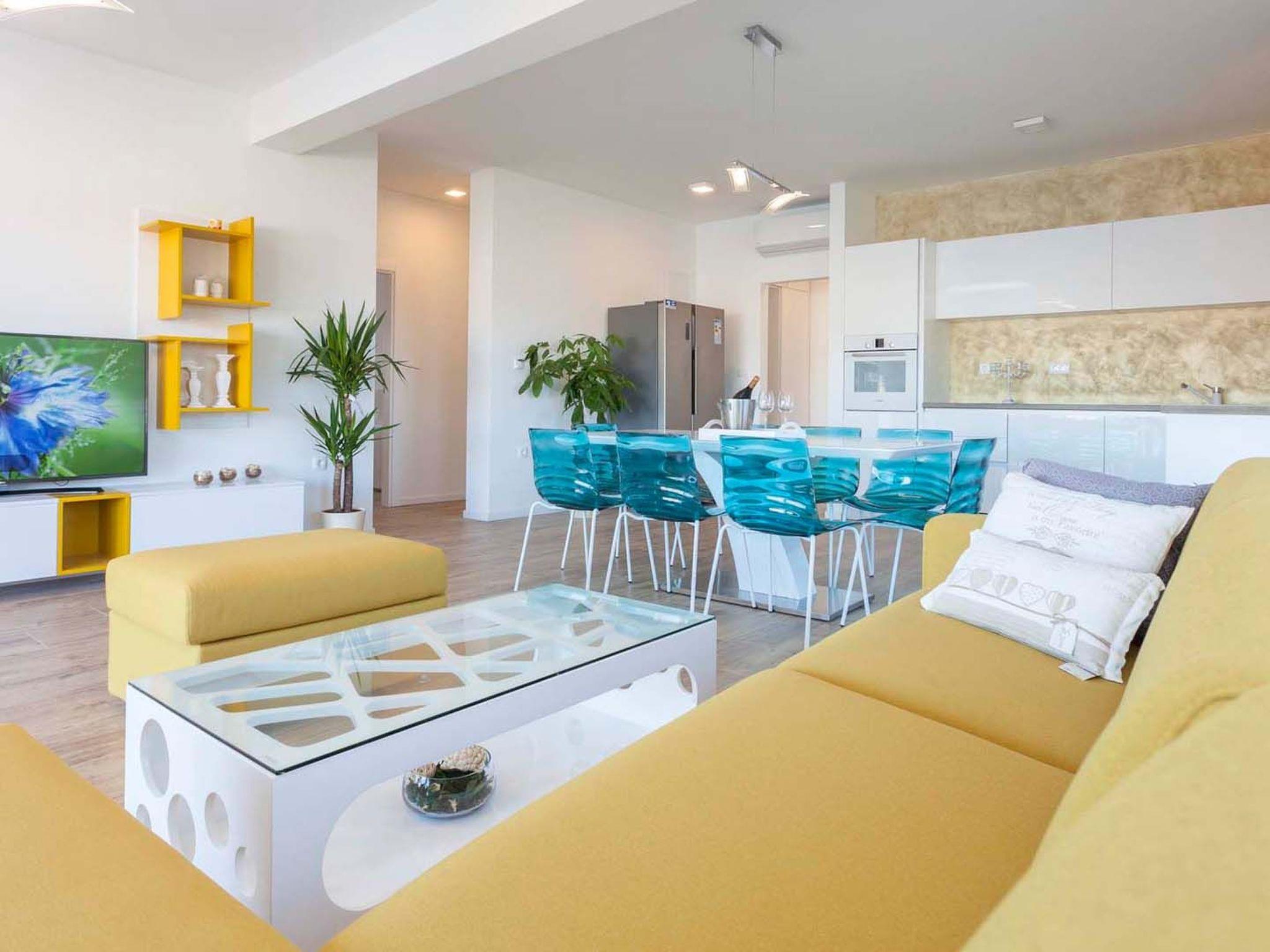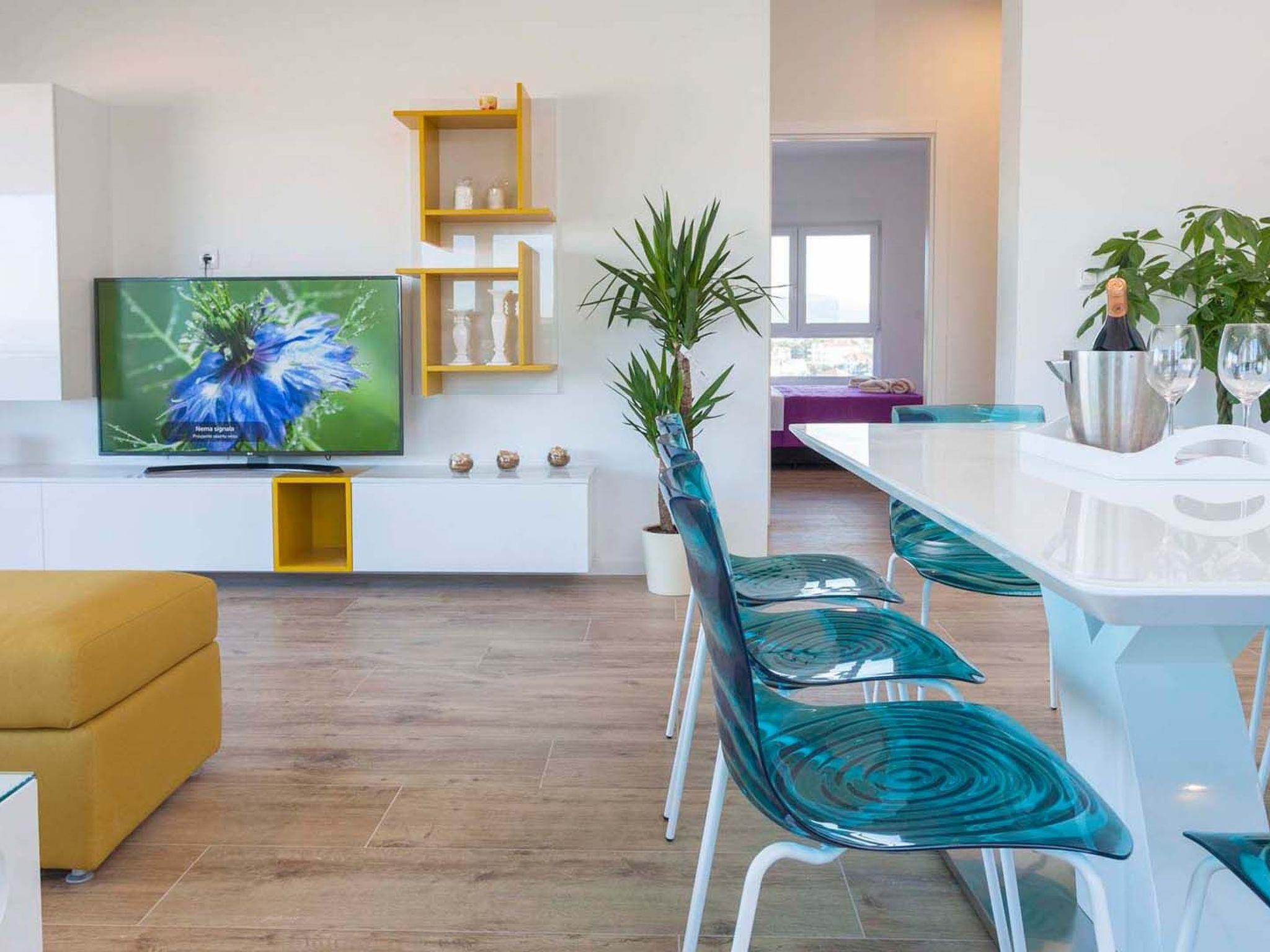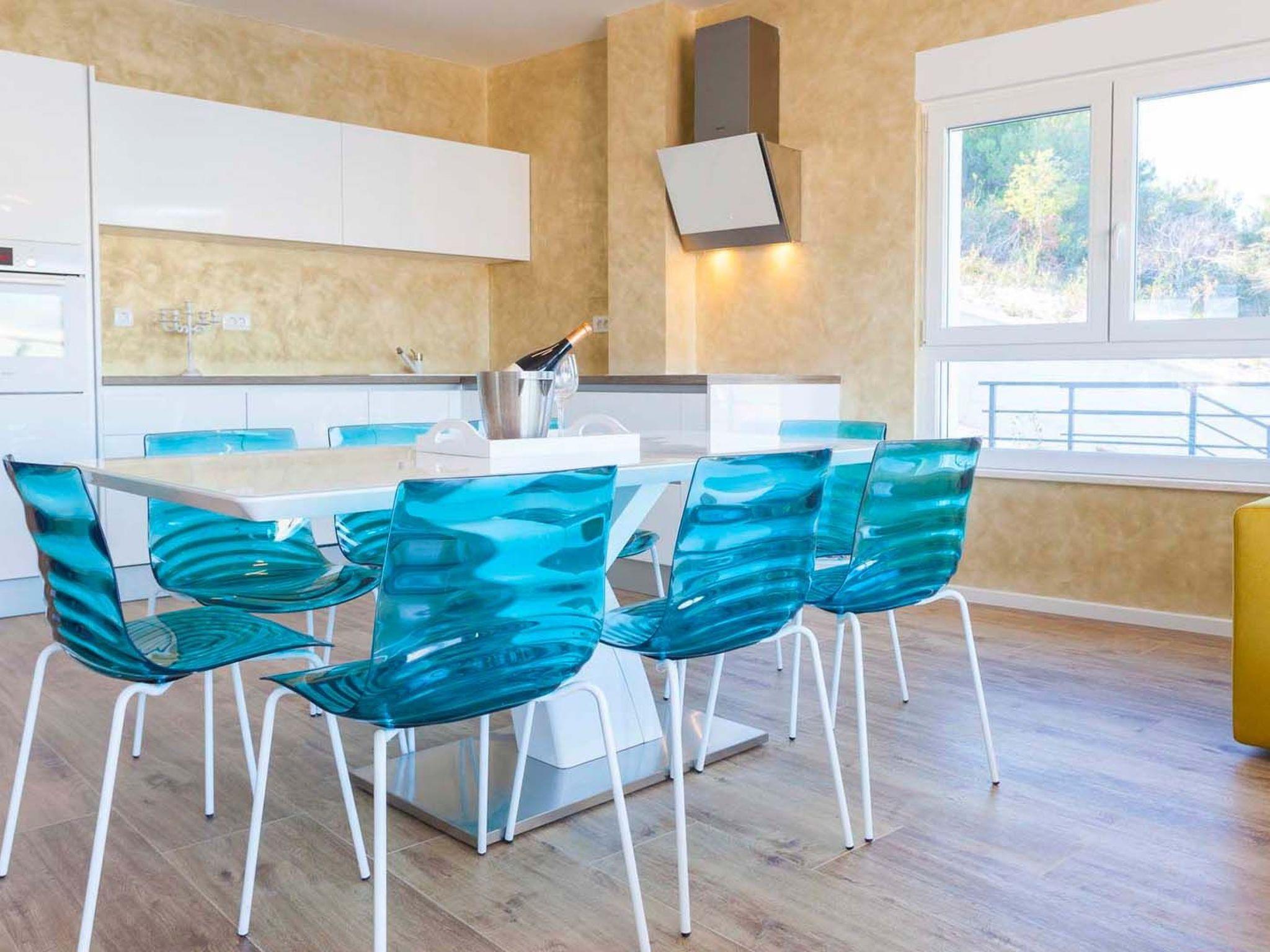Der schöne Meerblick von der geräumigen und komfortablen Terrasse am Pool trägt zum Gefühl eines idyllischen Urlaubsortes bei. Die Wohnung befindet sich im Erdgeschoss des Hauses und hat eine Fläche von 150 m2. Die Gäste haben Zugang zu einer voll ausgestatteten Küche, klimatisierte Zimmer, Wohnzimmer und Essbereich, zwei Bäder mit Dusche, 1 separates WC und einen herrlichen Balkon mit Meerblick (30 m2) mit Gartenmöbeln für 6 Personen. Ein kostenloser Privatparkplatz ist ebenfalls vorhanden. Wohnung Solis bietet Liegeplatz für Motorboote auf Anfrage.