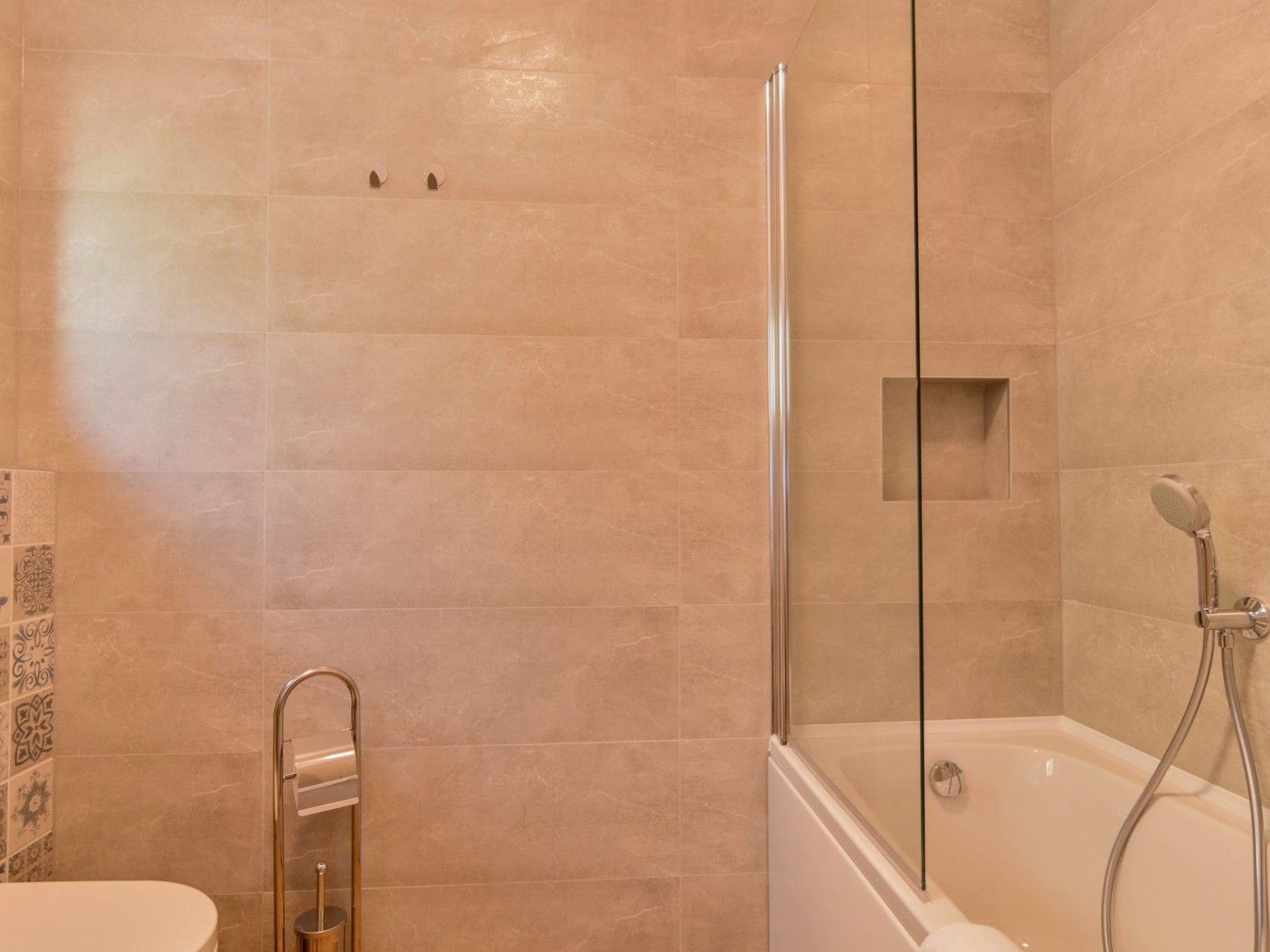 Eine Treppe führt in das Erdgeschoss, das aus 3 Schlafzimmern, 2 Badezimmern mit Dusche, 1 Badezimmer mit Badewanne, Wohnzimmer und einer Küche besteht. Das zweite und dritte Schlafzimmer haben ein Doppelbett. Das vierte Schlafzimmer hat zwei Einzelbetten. Das Wohnzimmer und die Küche befinden sich in einem gemeinsamen Raum.