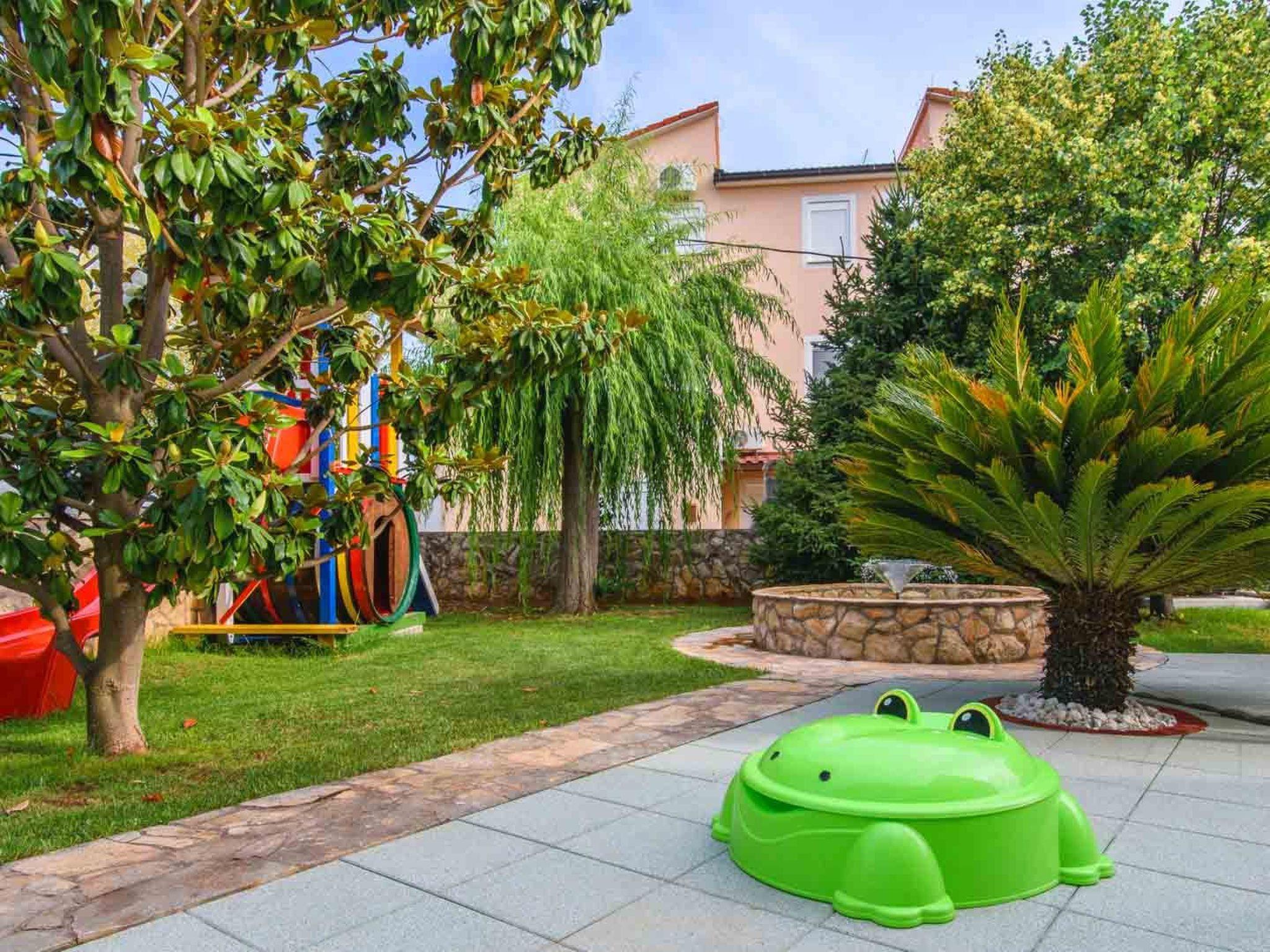 Der Außenbereich ist so gestaltet, dass Sie sich hier vollkommen entspannen können. Die Gäste der Appartements Maris haben Zugang zum gemeinsamen beheizten Pool (30 m2) mit Massagedüsen und Wasserfall, der von Liegestühlen und Sonnenschirmen umgeben ist, während Grillfreunde den gemeinsamen Grill in der Sommerküche nutzen können, der auf Anfrage und nach vorheriger Anmeldung zur Verfügung steht. Familien mit Kindern werden sicherlich den Spielplatz im Garten zu schätzen wissen, der aus einer Rutsche und einer Schaukel besteht, während der Wasserbrunnen inmitten des üppigen mediterranen Gartens das Ambiente einer friedlichen Oase vervollständigt.