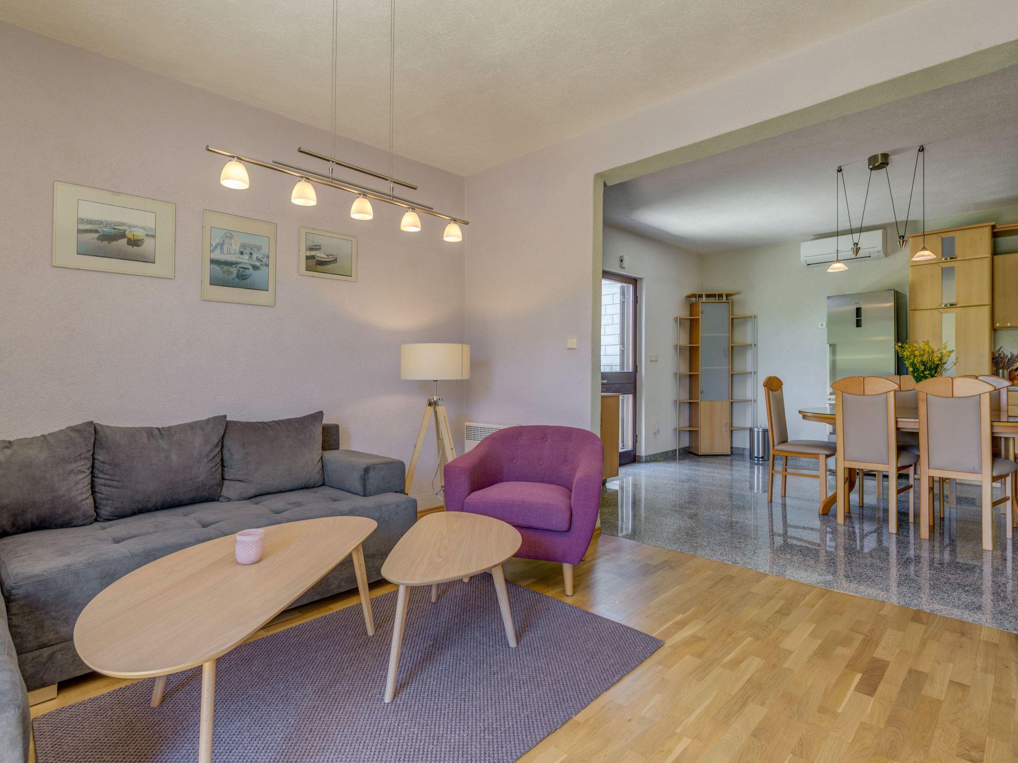 In dem schönen überschaubaren Ort Okrug Donji (bei Trogir) auf der Insel Ciovo befindet sich dieses komfortable Ferienapartment. Genießen Sie einen erholsamen Urlaub in absolut ruhiger ländlicher Lage mit Ausblick ins Grüne und umgeben von Tannen, Olivenbäumen, Salbei und mediterraner Vegetation am Rande der kleinen Gemeinde. Den Strand und das Ortszentrum mit zahlreichen Annehmlichkeiten erreichen Sie fußläufig nach wenigen Metern. Wanderungen und Erkundungsfahrten auf der Insel mit ihren Strandbuchten und Ausflüge nach Trogir oder Split bieten sich in der Umgebung an.