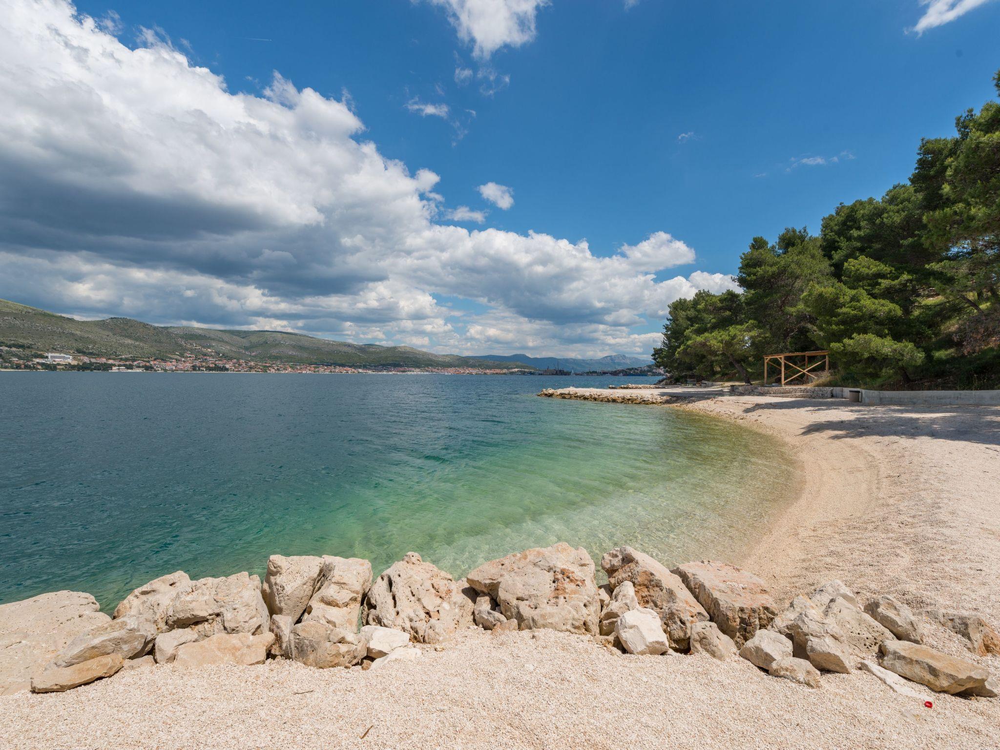 Der Strand „Stari Porat“ ist von der Ferienwohnung ca. 400m entfernt und in nur wenigen Minuten fußläufig zu erreichen. Darüber hinaus warten in Okrug Gornji (ca. drei km) zahlreiche Einkaufsmöglichkeiten, Cafés und Restaurants auf Ihren Besuch. Ein Lebensmittelgeschäft und eine Poststelle sind ebenfalls in Okrug Donji in unmittelbarer Nähe vorzufinden. Neben den zahlreichen Strandbuchten mit klarem, sauberem Wasser, lohnen sich Tagesausflüge nach Trogir (sieben km), an die Krka Wasserfälle (60 km) oder nach Split (35 km). Ein großartiger Ort, um sich zu entspannen und die ruhigen Sternennächte zu genießen. Aufgrund seiner Ruhe, der unberührten Natur, der Abgeschiedenheit und der Nähe zur UNESCO Stadt Trogir, ist Okrug Donji für einen erholsamen Urlaub mit der Familie und zugleich für einen Kultururlaub geeignet. Okrug Donji ist ein kleiner Ort auf der westlichen Seite der Insel Ciovo, der nur sieben Kilometer von der historisch malerischen Stadt Trogir entfernt ist, die sich auf dem Festland befindet. Die Insel ist mit einer Brücke zum Festland verbunden, zudem gibt es eine Bootslinie von Okrug Donji direkt nach Trogir. Die Insel Ciovo ist vor allem für ihre wunderschönen einsamen Buchten bekannt. Besonders beliebt ist Okrug Donji aufgrund der Ruhe, Abgelegenheit und der natürlichen Umgebung bei Naturisten, die an den vereinzelten Buchten nackt baden können. Natürlich befinden sich auch öffentliche Strände für Familien in Okrug Donji: Der kleine Kiesstrand Kava und der größere Kiesstrand Stari Porat sowie der Strand Duga Uvala. Wenn Sie weiter entlang der Küste gehen, ist es möglich, auch abgelegene Orte zu finden, um den Wald und das Meer zu genießen. Bei klaren Sichtverhältnissen hat man südlich von Okrug Donji einen schönen Ausblick auf die vorgelagerten Inseln Kraljevac und Sveta Fumija. Zusätzliche Freizeitangebote und Ausflugsmöglichkeiten, wie die bekannten Kultureinrichtungen und Naturdenkmäler von Mitteldalmatien bieten rund um Trogir und Split weitere spannende Abwechslung. Die Insel Ciovo ist somit ein guter Ausgangspunkt um alle historischen und Naturellen Sehenswürdigkeiten von Dalmatien zu besuchen.