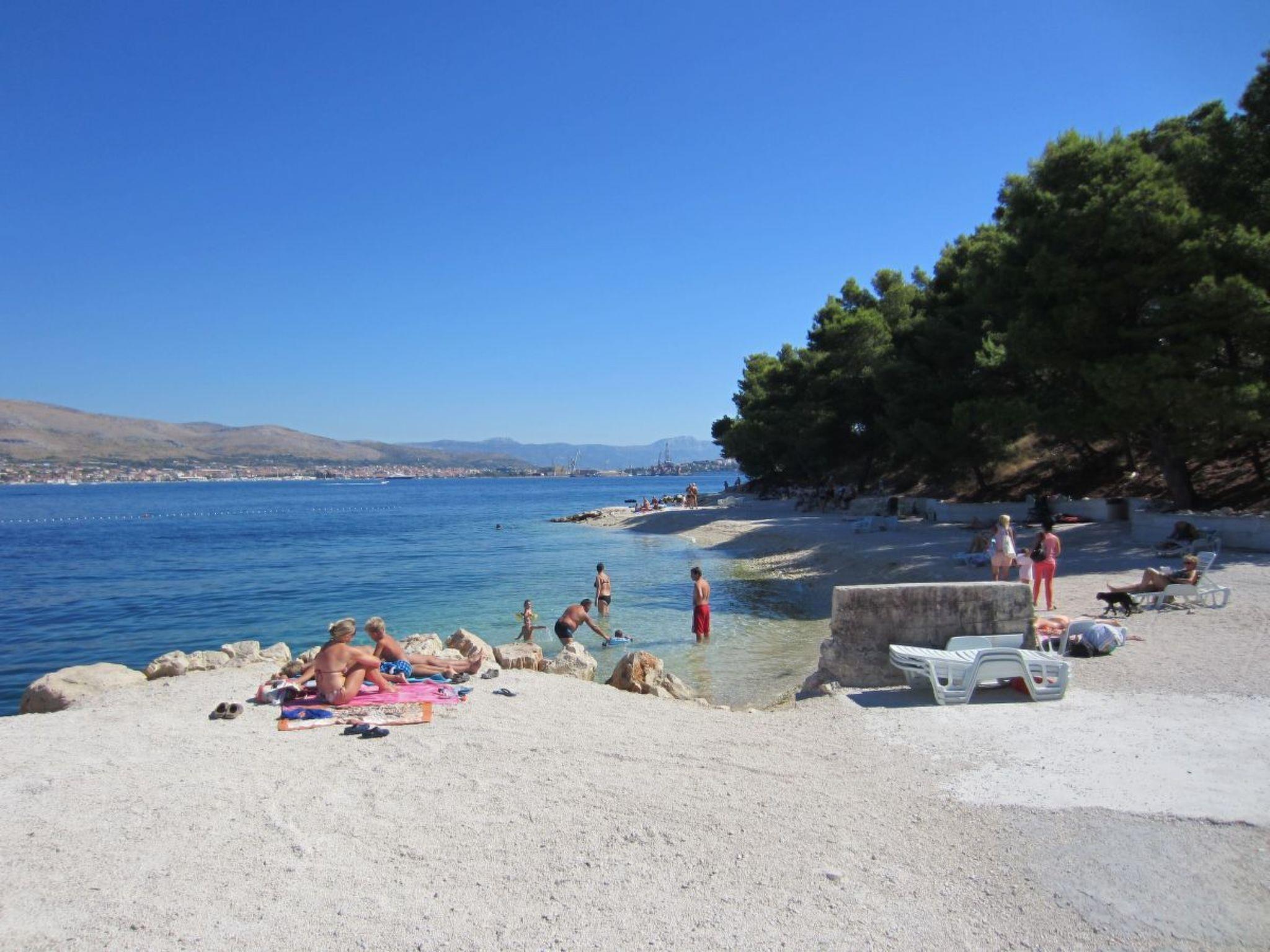 Der Strand „Stari Porat“ ist vom Ferienwohnung ca. 400m entfernt und in nur wenigen Minuten fußläufig zu erreichen. Darüber hinaus warten in Okrug Gornji (ca. 4 km) zahlreiche Einkaufsmöglichkeiten, Cafés und Restaurants auf Ihren Besuch. Ein Lebensmittelgeschäft und eine Poststelle sind ebenfalls in Okrug Donji in unmittelbarer Nähe. Neben den zahlreichen Strandbuchten mit klarem, sauberem Wasser, lohnen sich Tagesausflüge nach Trogir (7 km), an die Krka Wasserfälle (60 km) oder nach Split (35 km).