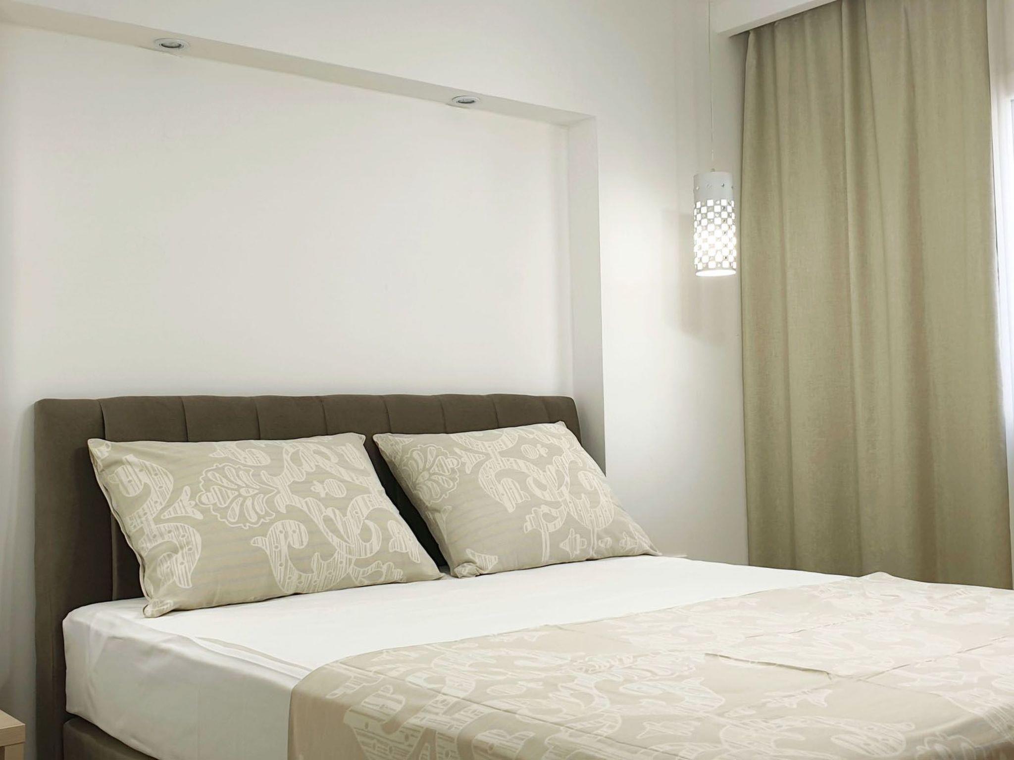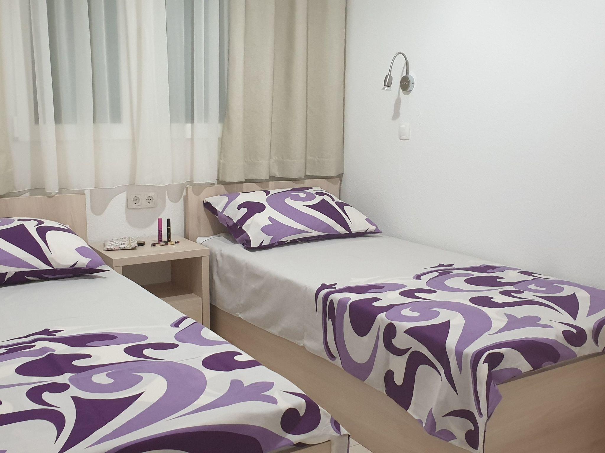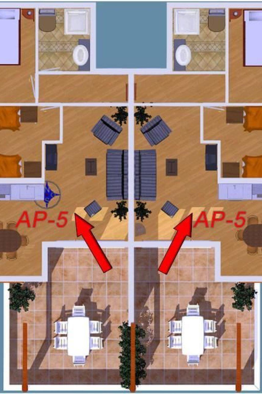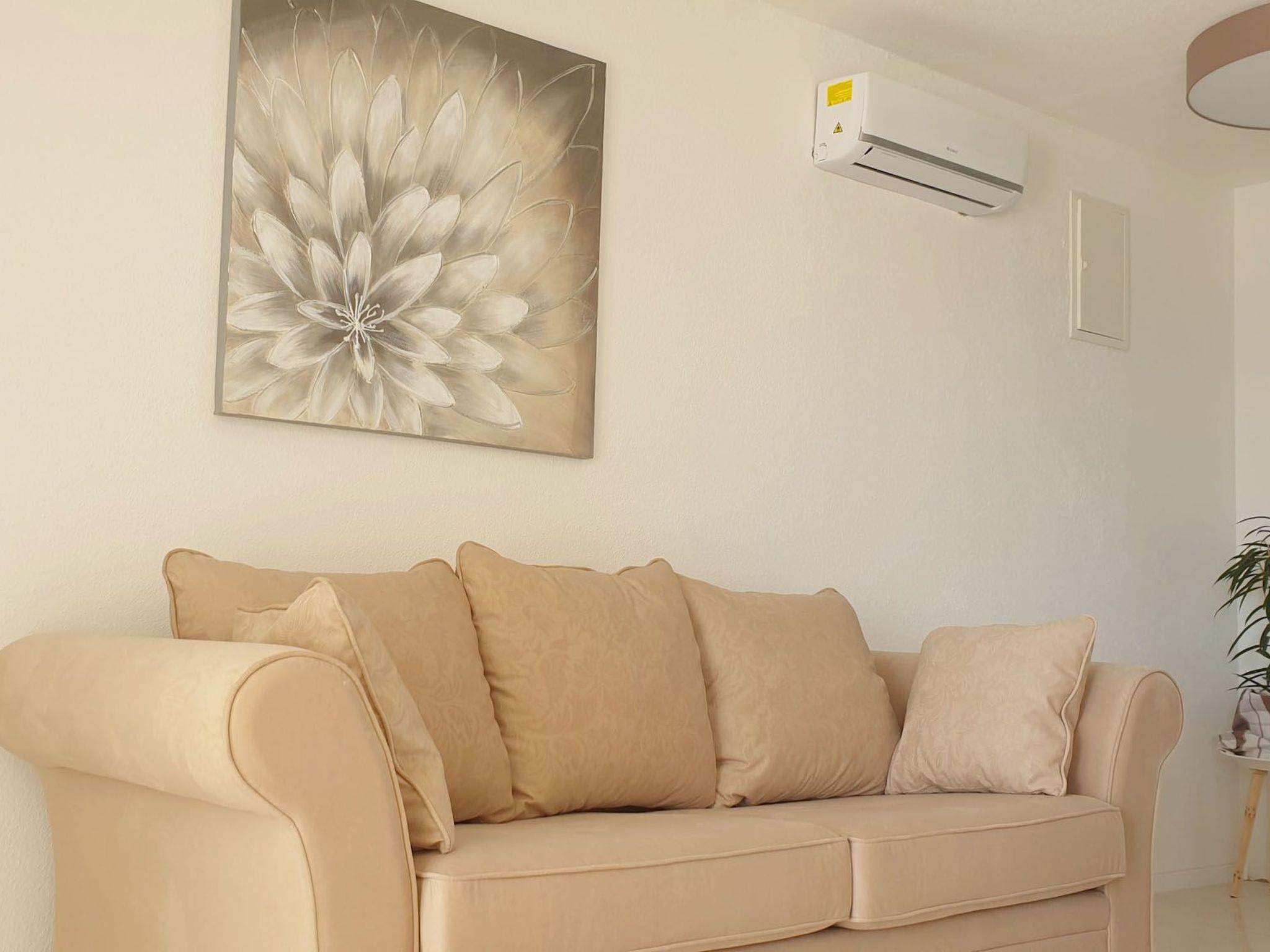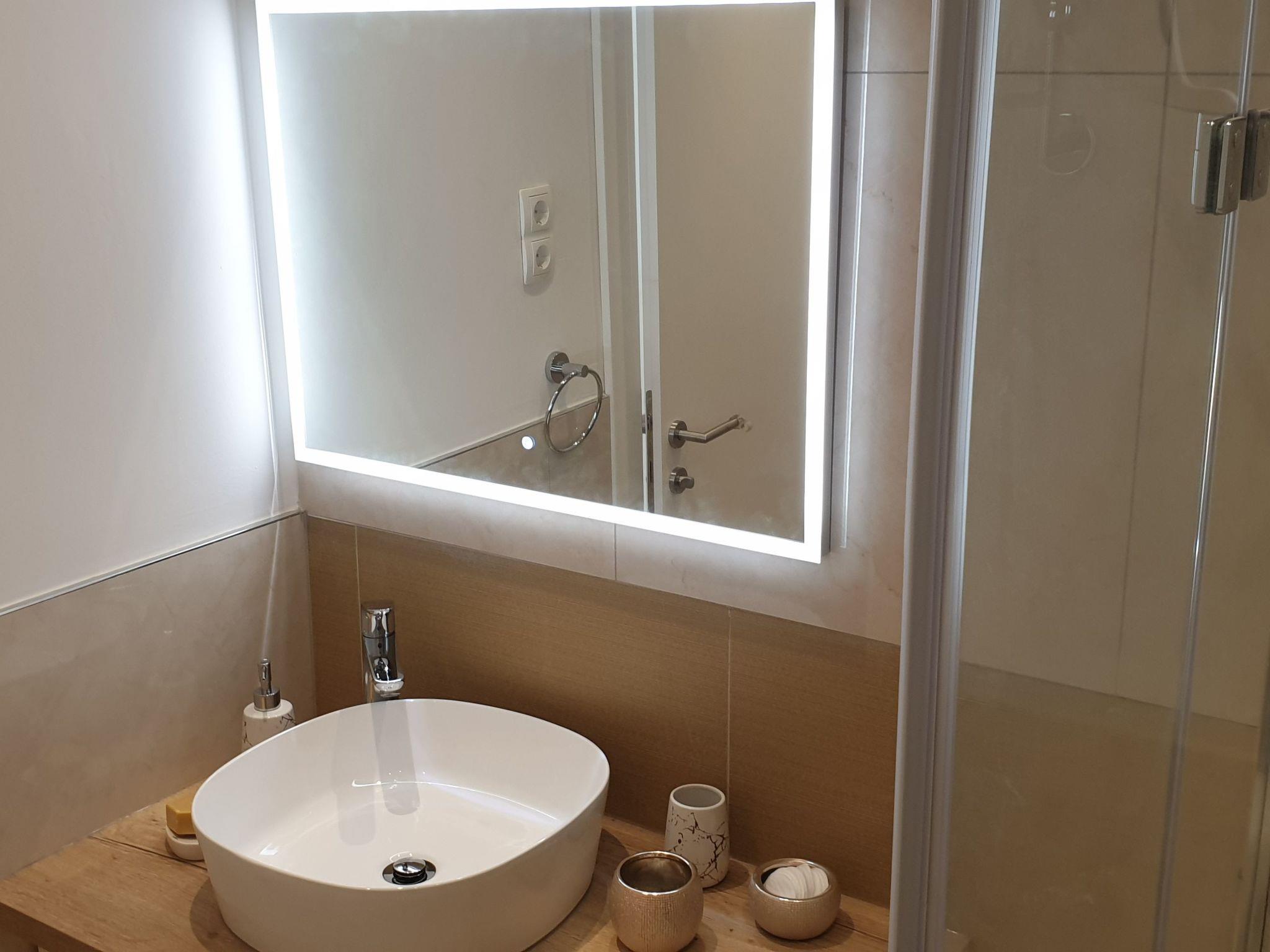 Die 55m² großen Ferienwohnungen im Erdgeschoss verfügen über ein Wohn- und Esszimmer mit integrierter, offener Küche, zwei Schlafzimmer und ein Bad. Das klimatisierte (kühl/warm) Wohnzimmer bietet bequeme Sofas und Fernseher mit Satellitenempfang. Der Essbereich daneben hat einen großen Holztisch mit passenden Stühlen. Die offenen Küchen sind mit einem Elektroherd, Backofen, Kühlschrank mit Gefrierfach und Wasserkocher ausgestattet. Eines der Schlafzimmer ist mit einem Doppelbett (160 x 200cm) und das andere mit zwei Einzelbetten (90 x 190cm) ausgestattet. Das Badezimmer mit hellen Fliesen ist mit einer Duschkabine, einem Waschbecken mit Wandspiegel und einer Toilette ausgestattet. Ein zuverlässiger 5G-WLAN-Zugang wird kostenlos angeboten. Privater schattiger Parkplatz, Schwimmbad von 20.04. bis 15.10. geöffnet (beheizt)