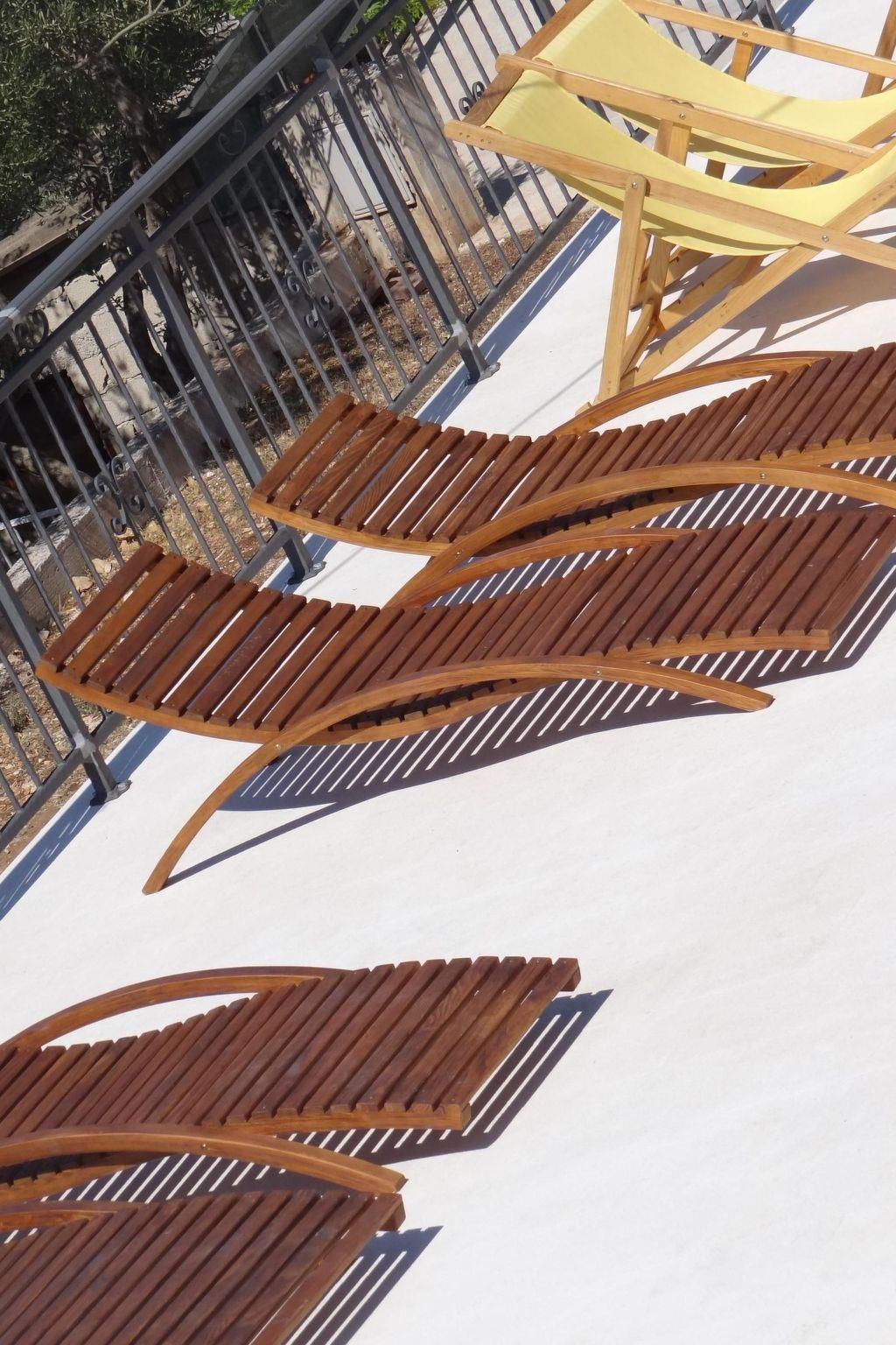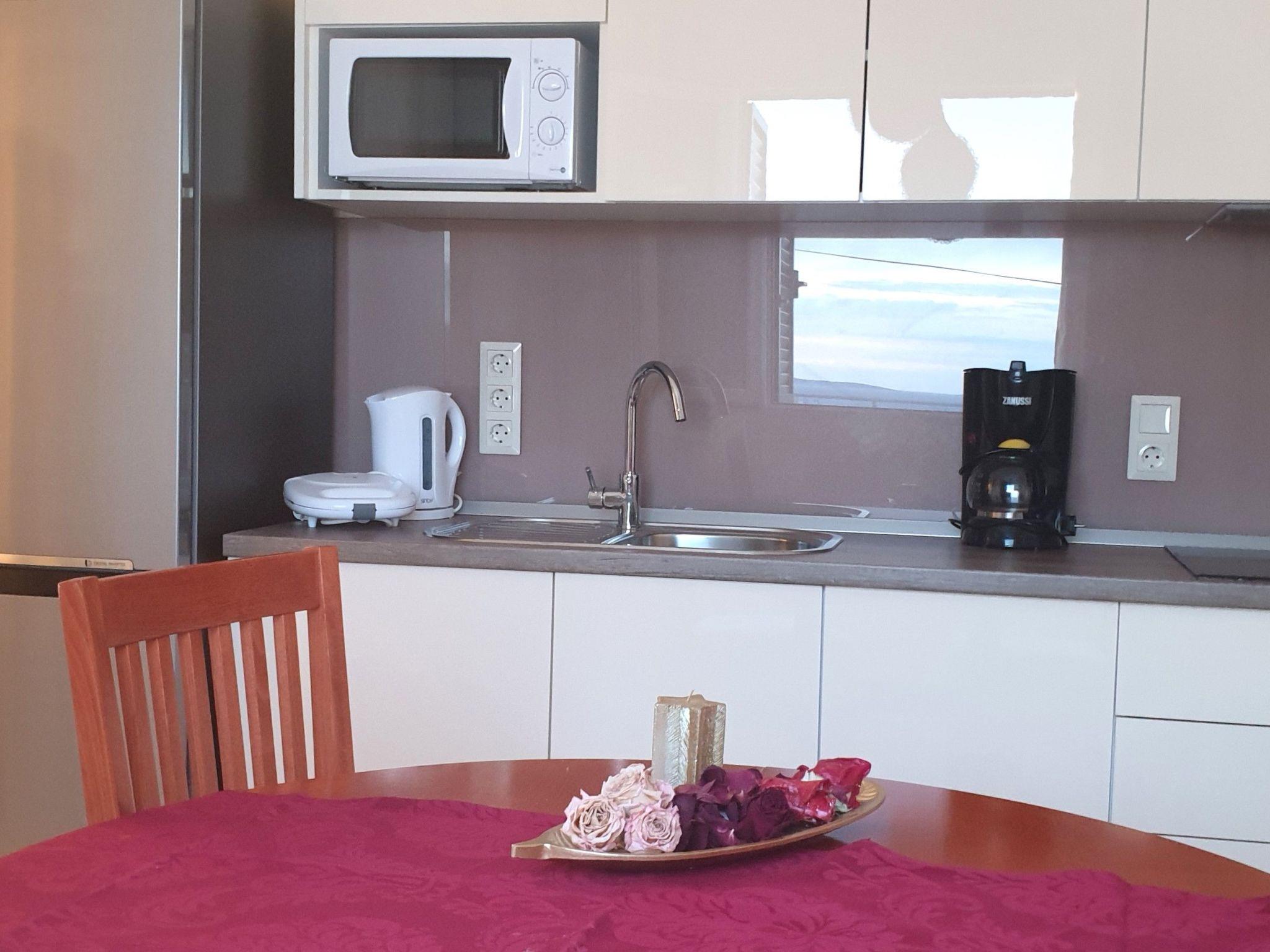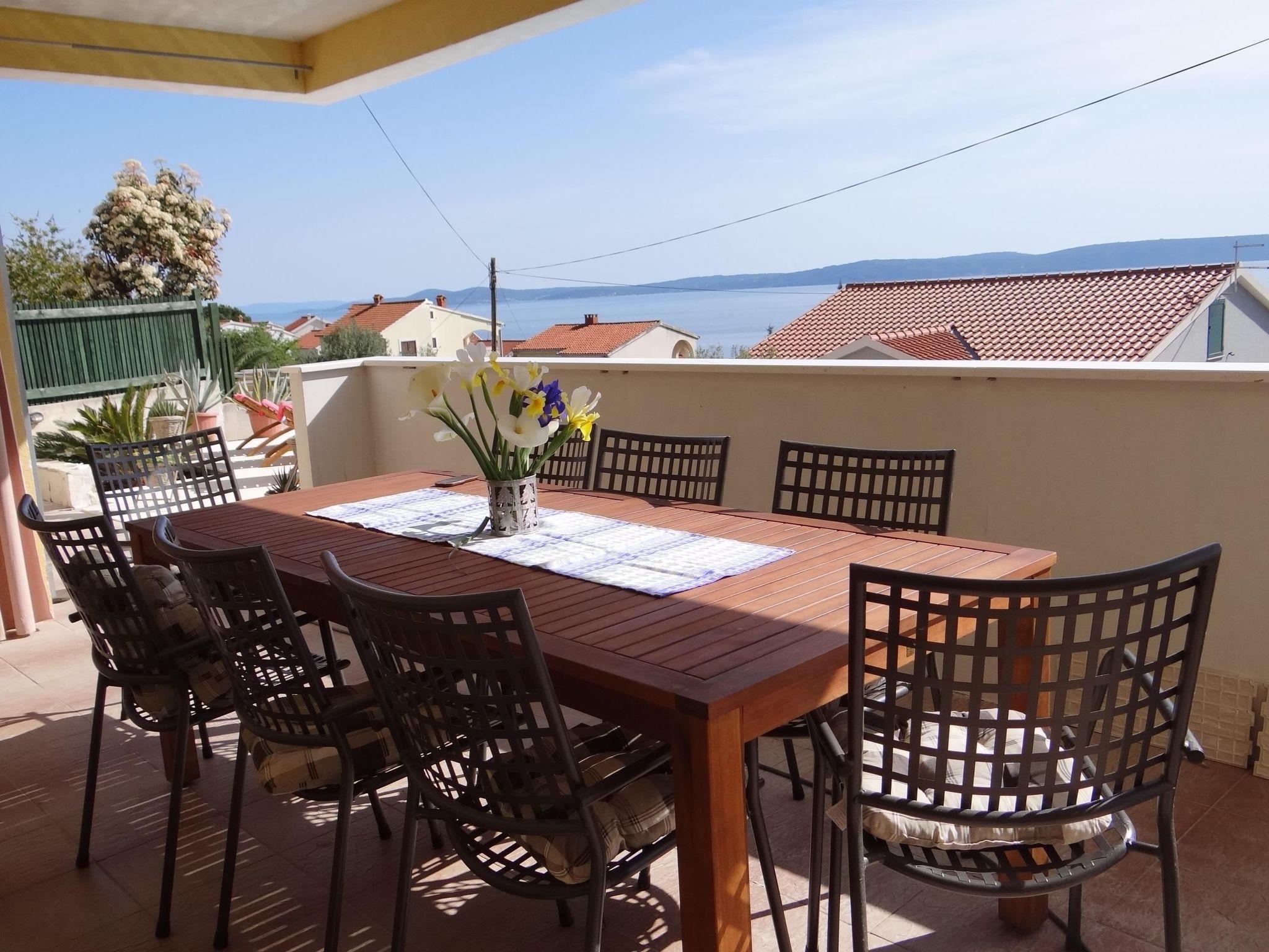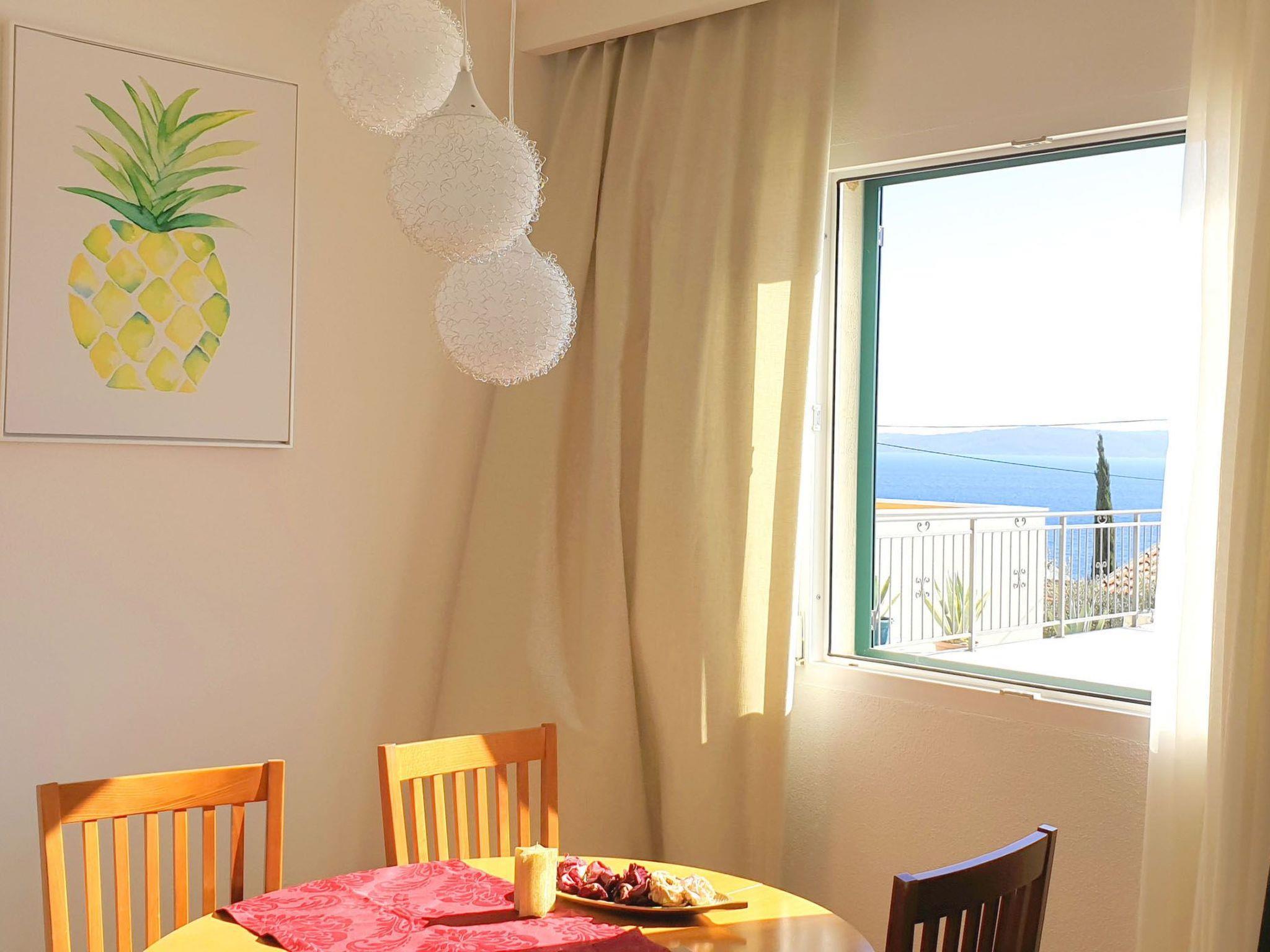 Die Wohnzimmer öffnen sich auf private, sonnige Balkone, die mit Tisch und Stühlen ausgestattet sind. Hier können Sie gemütlich mit Blick auf das Meer frühstücken oder nach einem langen Tag am Strand den Sonnenuntergang mit einem Glas dalmatinischen Weins bewundern.