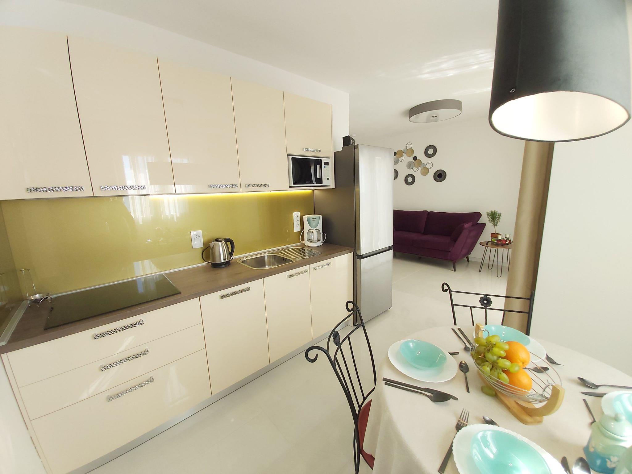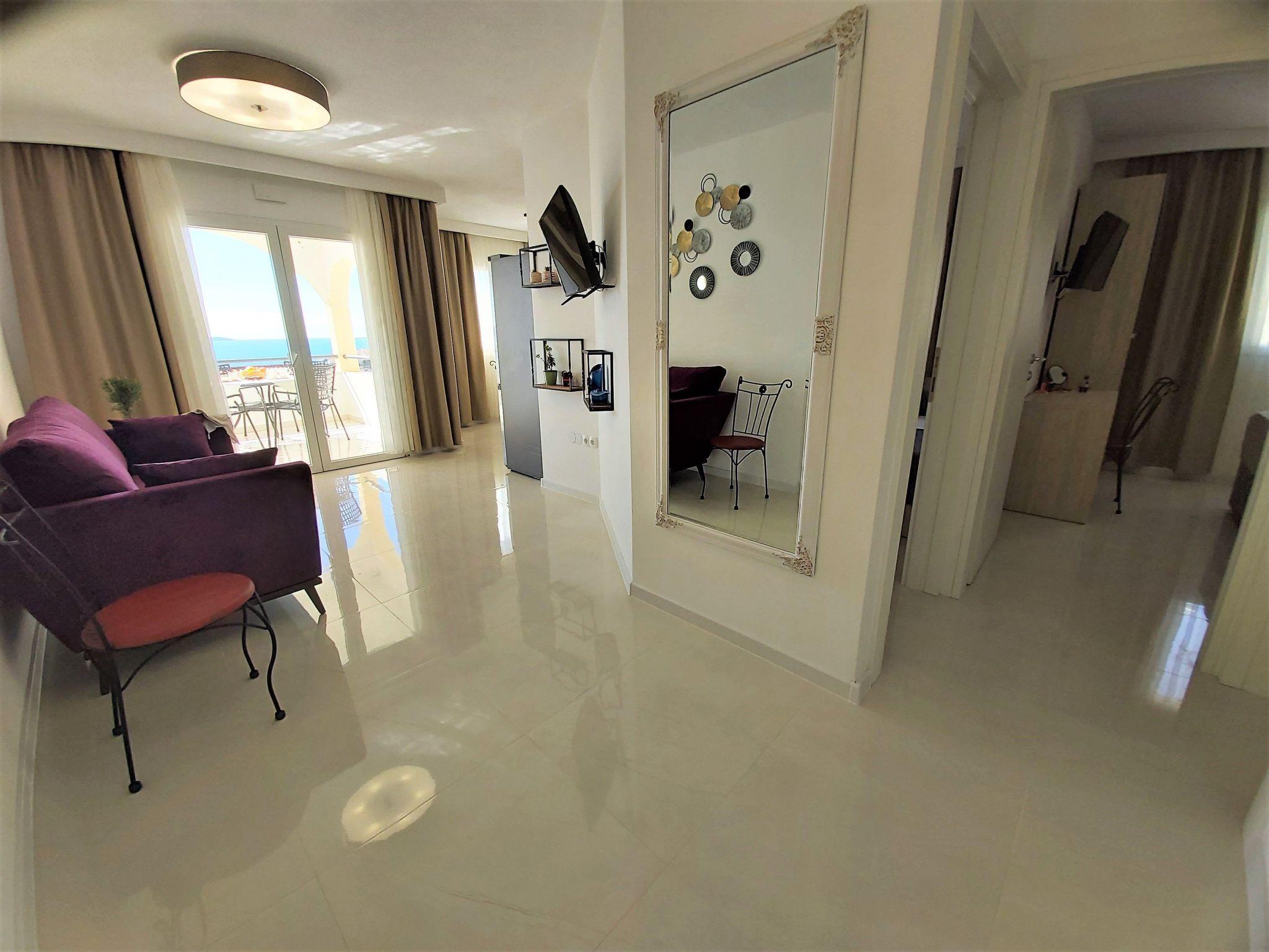 Diese 55 m² große Ferienwohnung befindet sich im ersten Stock des Gebäudes und verfügt über einen Wohn-/Essbereich mit integrierter, voll ausgestatteter Küche, zwei Schlafzimmer und ein Badezimmer. Das klimatisierte Wohnzimmer ist mit einem Sofa und einem Satellitenfernseher ausgestattet. Der Essbereich bietet einen großen Holztisch mit passenden Stühlen. Neben dem Essbereich befindet sich die Küche, die mit Herd, Backofen, Kühlschrank, Mikrowelle, Gefrierfach und Wasserkocher ausgestattet ist. Eines der beiden Schlafzimmer ist mit einem 160 cm x 200 cm großen Doppelbett ausgestattet, das andere Schlafzimmer hat zwei 90 cm x 190 cm große Einzelbetten, die zu einem Doppelbett zusammengeschoben werden können. Das Badezimmer ist mit einer Dusche, einem Waschbecken und einer Toilette ausgestattet. Ein zuverlässiger 5G-WLAN-Zugang wird kostenlos angeboten. Privater schattiger Parkplatz, Schwimmbad vom 20.04. bis 15.10. geöffnet.