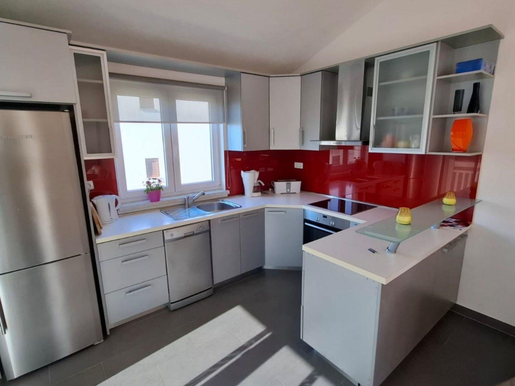 Die Küche ist voll ausgestattet und bietet alles, was man für einen entspannten und angenehmen Aufenthalt braucht. Vom Wohnzimmer aus gelangt man auf einen geräumigen Balkon mit Sitzgelegenheiten im Freien, wo man bei einem Kaffee den Blick auf das Meer genießen kann.