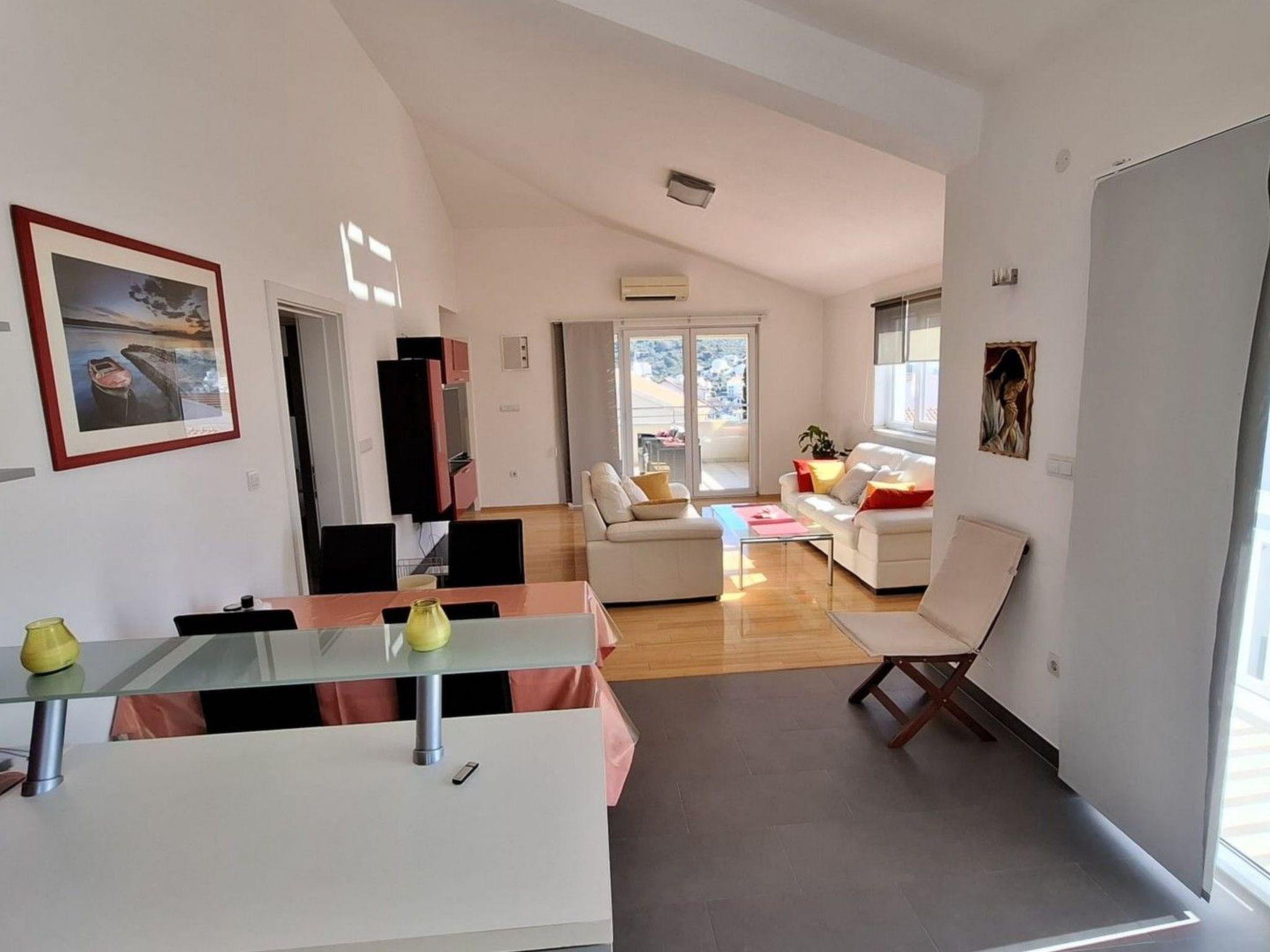 Das Apartment More ist 90 m² groß und bietet bequem Platz für bis zu 4 Personen. Es verfügt über zwei Schlafzimmer, ein Badezimmer mit Dusche und einen geräumigen, offen gestalteten Wohnbereich, der Küche und Essbereich vereint. Ein Schlafzimmer ist mit einem Queen-Size-Doppelbett ausgestattet, während das zweite Schlafzimmer zwei Einzelbetten bietet, die je nach Wunsch der Gäste zusammengefügt oder getrennt werden können. Für maximalen Komfort an warmen Sommertagen sind alle Schlafzimmer und der Wohnbereich klimatisiert.