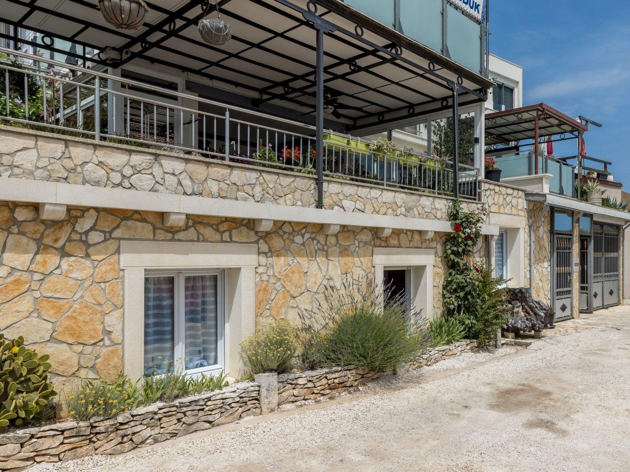 Der Wohnbereich hat Zugang zu einer überdachten Terrasse (15 m2) mit einem atemberaubenden Blick auf das Meer, ideal für eine erste Tasse Kaffee am Morgen oder ein Glas Wein am Abend. Die Gäste der Wohnung Katarina haben auch einen Grill im Freien und eine zusätzliche überdachte Terrasse mit einem großen Tisch und Stühlen im Freien zur Verfügung.