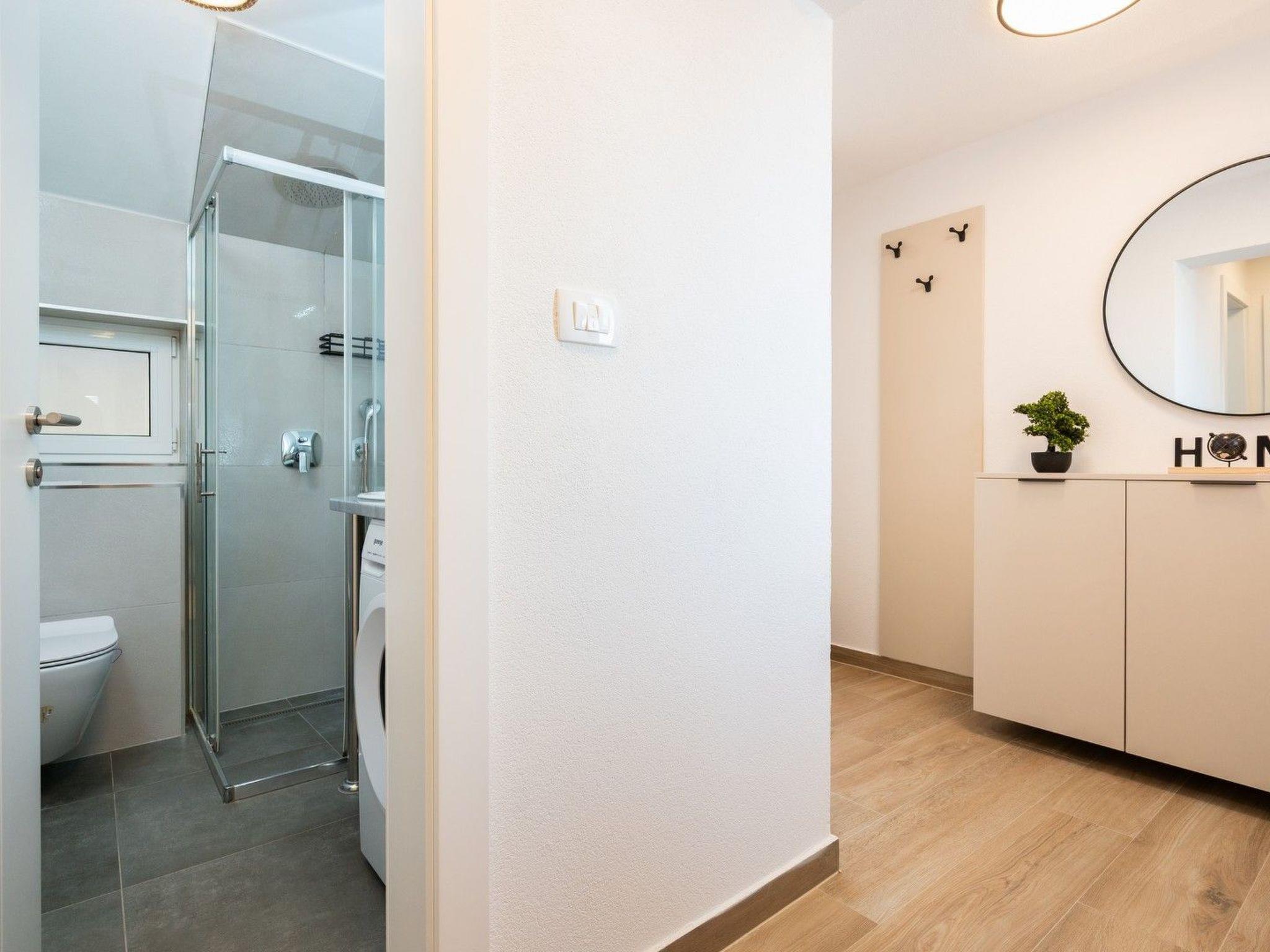 Die Wohnung befindet sich nur 400 m vom Meer und dem nächsten Strand entfernt, und nur 4 km von der historischen UNESCO-geschützten Zentrum der Stadt Trogir.