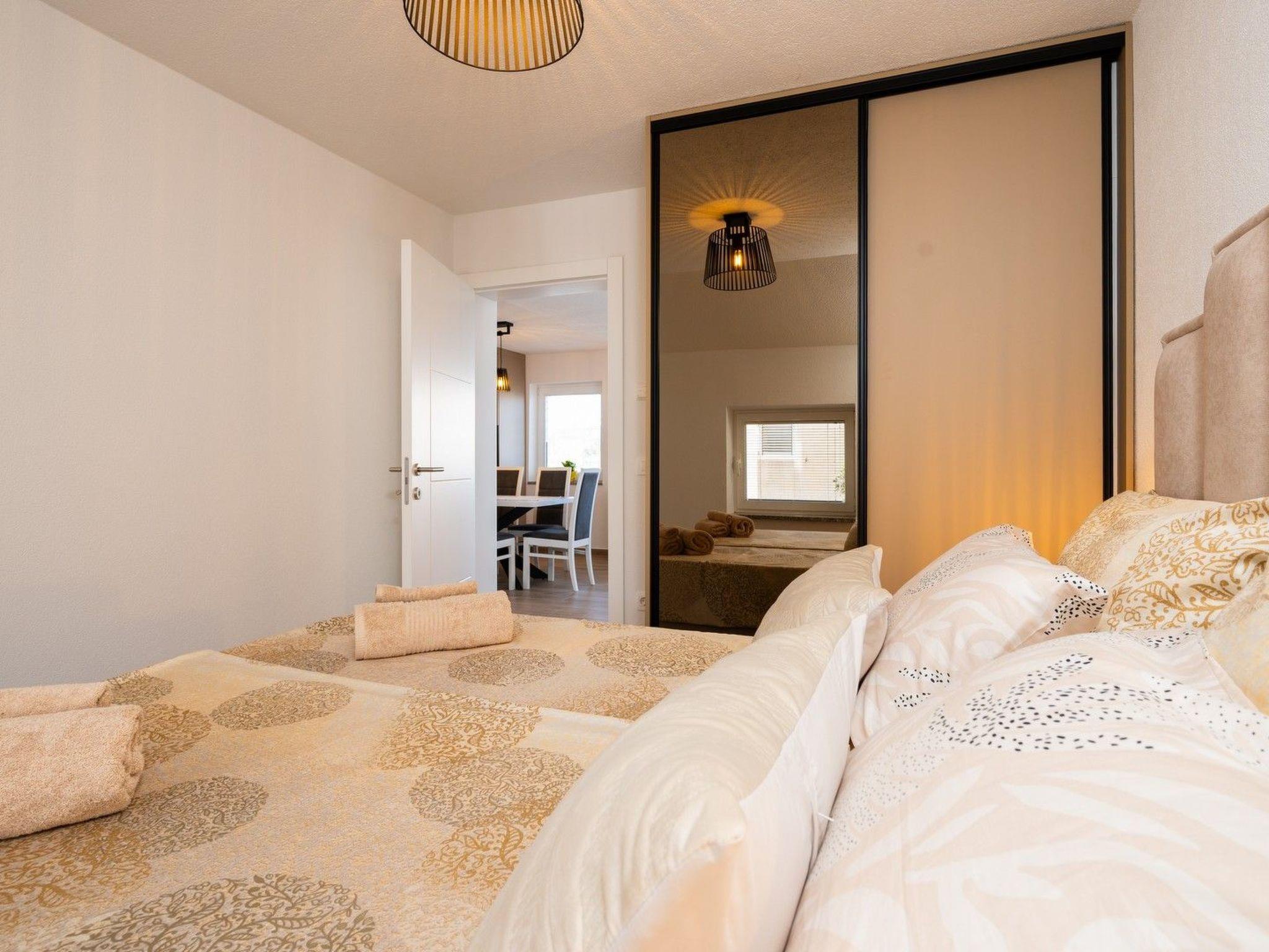 Diese komfortable und elegante Wohnung befindet sich im ersten Stock und besteht aus 2 Schlafzimmern (eines mit Kingsize-Doppelbett und eines mit einem Doppelbett), 1 modernes Badezimmer mit Dusche, ein modernes Wohnzimmer mit Essbereich und eine gut ausgestattete Küche.