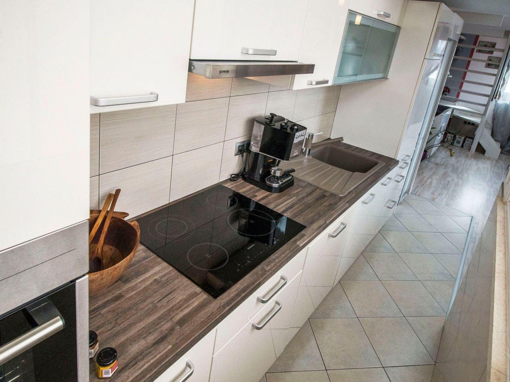 Zweite Etage: Zwei Schlafzimmer, zwei Bäder, eine offene Küche, ein moderner Wohn- und Essbereich und ein Balkon mit atemberaubendem Blick auf die Adria.