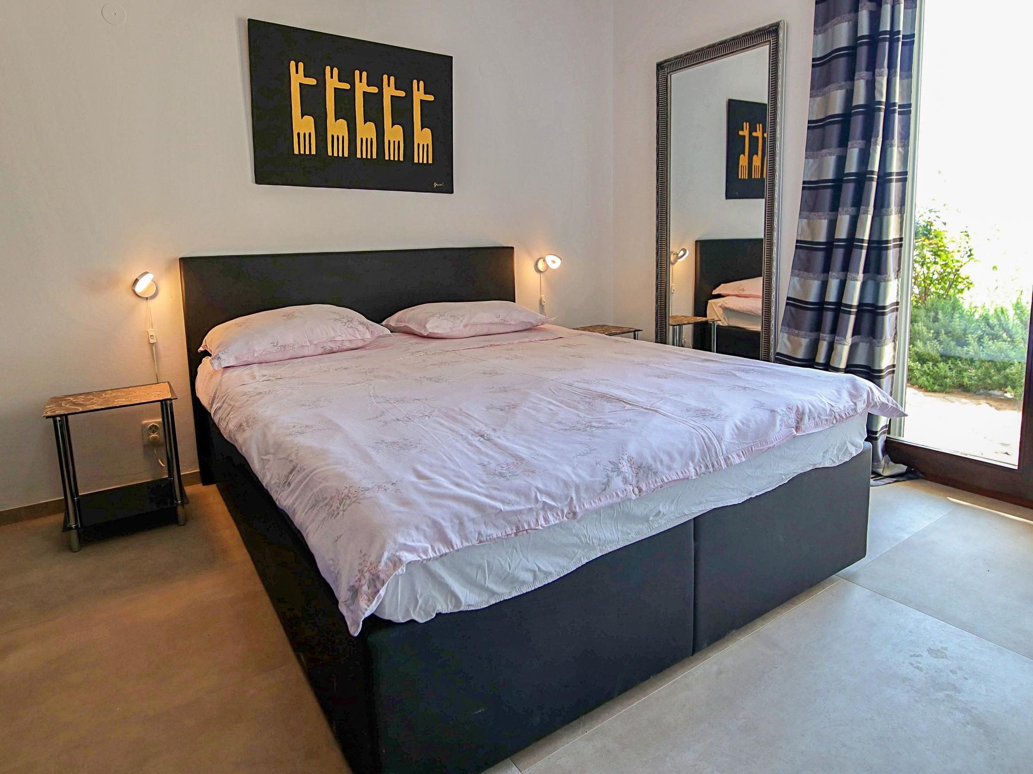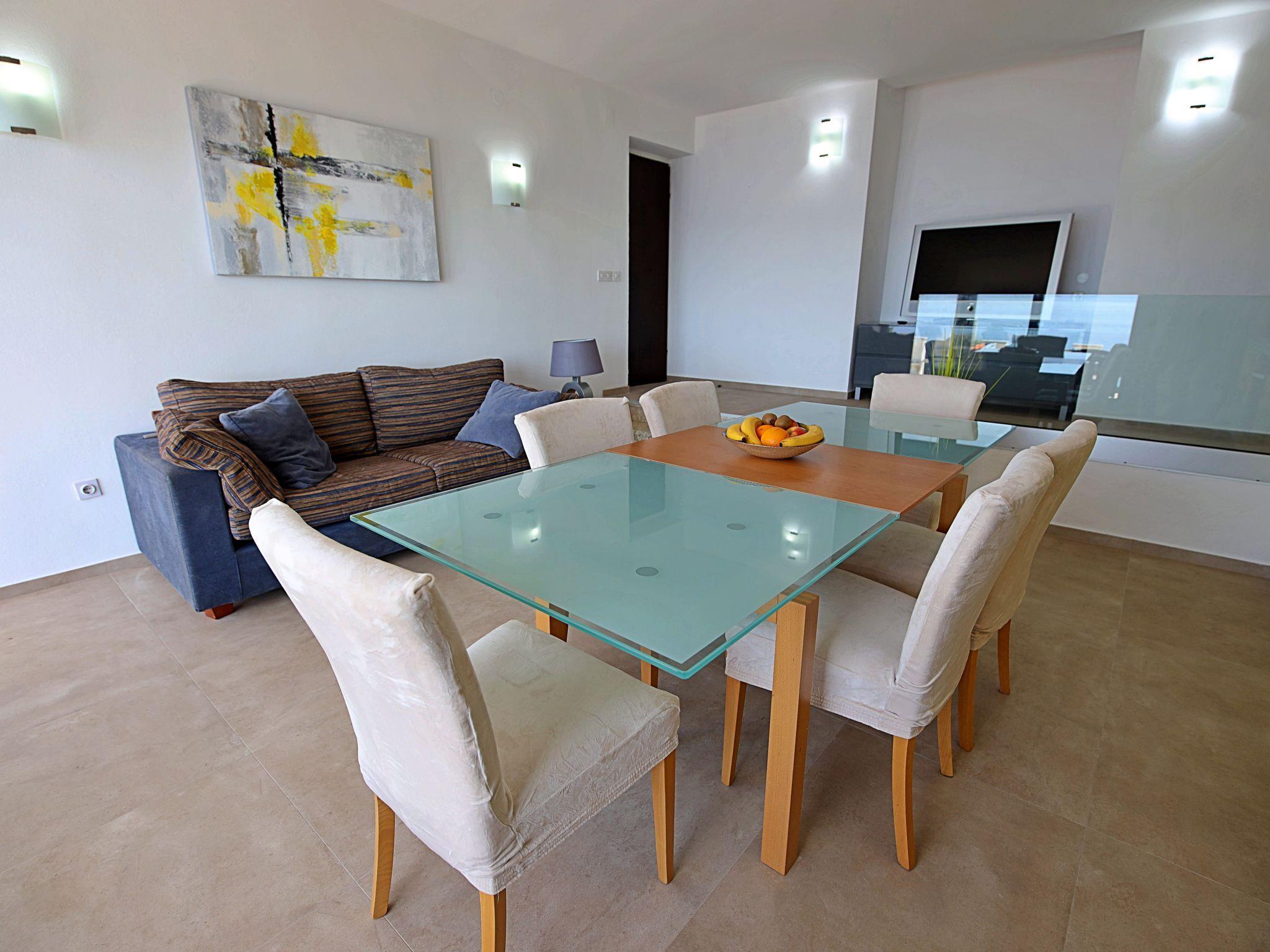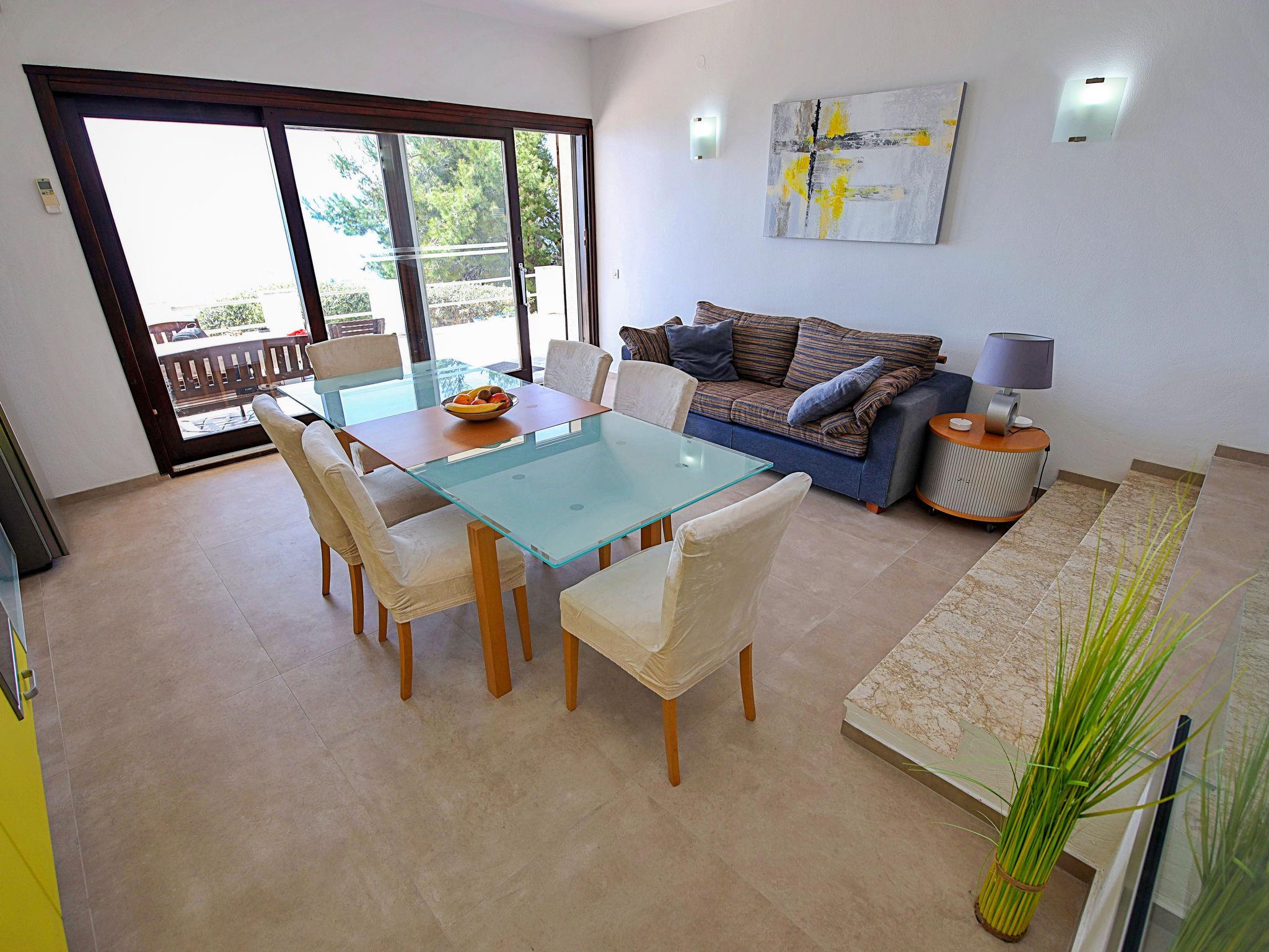 3-Zimmer-Wohnung 65 m2, im Erdgeschoss. Wohn-/Esszimmer mit Sat-TV und Klimaanlage. Ausgang zur Terrasse. 1 Doppelzimmer mit Klimaanlage. Ausgang zur Terrasse. 1 Zimmer mit 2 Betten und Klimaanlage. Ausgang zur Terrasse. Küche (4 Kochplatten, Backofen, Geschirrspüler). Dusche/Bidet/WC, sep. WC. Grosse Terrasse teilweise überdacht, Südlage. Terrassenmöbel. Herrliche Sicht auf das Meer und das Schwimmbad. Zur Verfügung: Waschmaschine, Haartrockner. Internet (Wireless LAN, gratis).