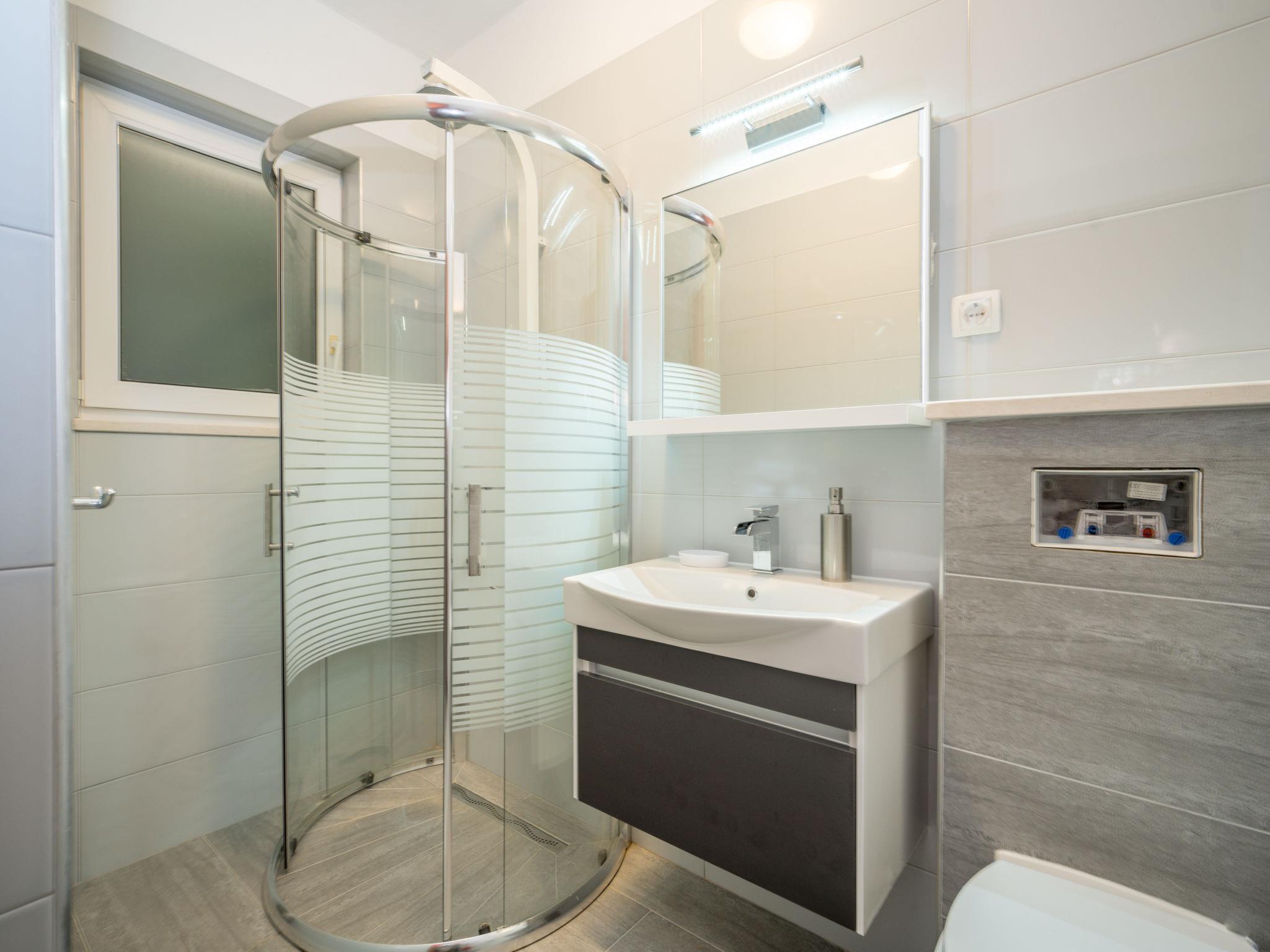 Okrug Gornji (Ciovo), 6 km von Trogir: Schönes Mehrfamilienhaus "Villa Andjelka". 1 km vom Zentrum von Okrug Gornji, ruhige, sonnige, erhöhte Lage, 50 m vom Meer, 50 m vom Strand. Zur Mitbenutzung: Grundstück, Schwimmbad beheizt (38 m2, 130 - 160 cm tief, saisonale Verfügbarkeit: 25.Apr. - 03.Okt.) mit Innentreppe. WC im Poolbereich, Aussendusche, Poolhaus mit Kühlschrank, Terrasse, Gartenmöbel, Grill. Im Hause: Internetzugang, Sauna (extra). Waschmaschine, Wäschetrockner. Handtuchwechsel 2 mal wöchentlich. Parkplatz beim Haus auf dem Grundstück. E-Ladestation. Einkaufsgeschäft 200 m, Restaurant 1 km, Café 1 km, Bushaltestelle 1.7 km, Kieselstrand 500 m, Felsstrand 50 m. Bitte beachten: Weitere Unterkünfte sind buchbar. Schwimmbad mit Gegenstromanlage und Hydromassage. Zur Mitbenutzung: Sommerküche.