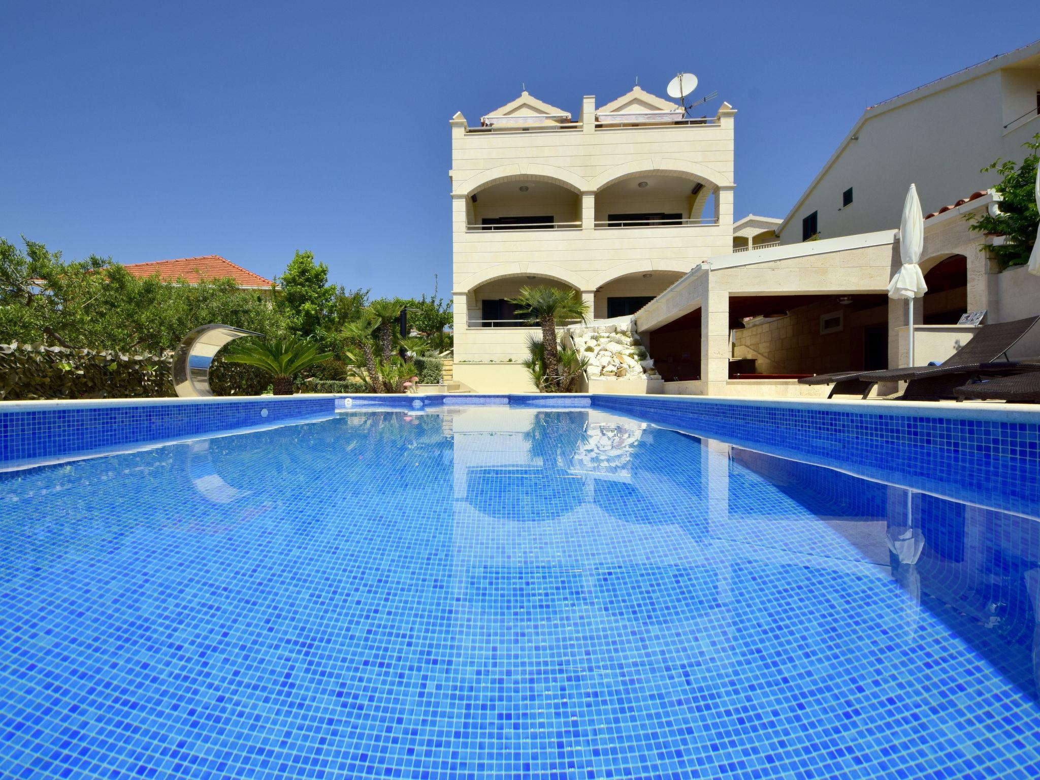 Okrug Gornji (Ciovo), 6 km von Trogir: Schönes Mehrfamilienhaus "Villa Andjelka". 1 km vom Zentrum von Okrug Gornji, ruhige, sonnige, erhöhte Lage, 50 m vom Meer, 50 m vom Strand. Zur Mitbenutzung: Grundstück, Schwimmbad beheizt (38 m2, 130 - 160 cm tief, saisonale Verfügbarkeit: 25.Apr. - 03.Okt.) mit Innentreppe. WC im Poolbereich, Aussendusche, Poolhaus mit Kühlschrank, Terrasse, Gartenmöbel, Grill. Im Hause: Internetzugang, Sauna (extra). Waschmaschine, Wäschetrockner. Handtuchwechsel 2 mal wöchentlich. Parkplatz beim Haus auf dem Grundstück. E-Ladestation. Einkaufsgeschäft 200 m, Restaurant 1 km, Café 1 km, Bushaltestelle 1.7 km, Kieselstrand 500 m, Felsstrand 50 m. Bitte beachten: Weitere Unterkünfte sind buchbar. Schwimmbad mit Gegenstromanlage und Hydromassage. Zur Mitbenutzung: Sommerküche.