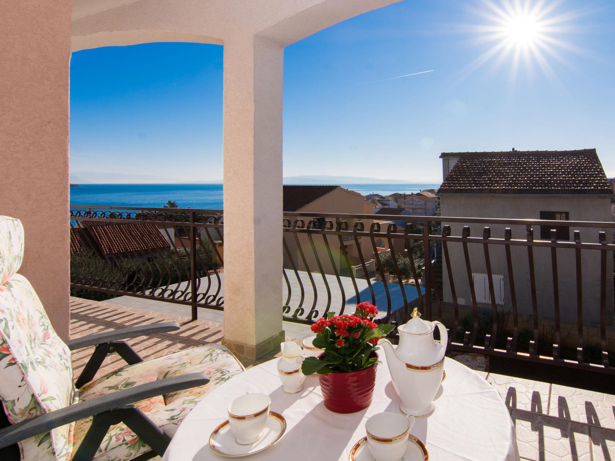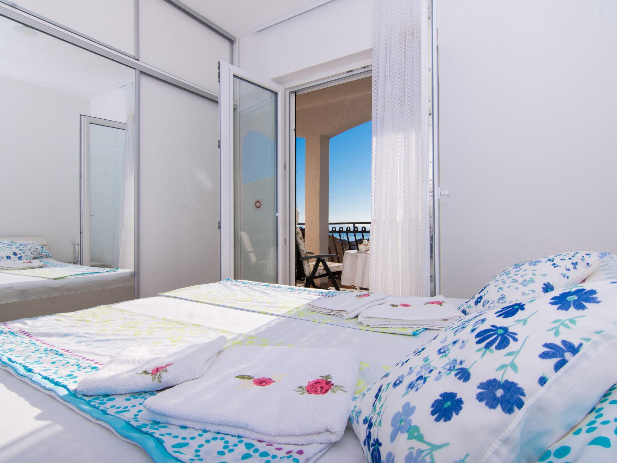 3-Zimmer-Wohnung 80 m2 im 1. Stock. Wohn-/Esszimmer mit Sat-TV und Klimaanlage. Ausgang zum Balkon. 1 Zimmer mit 1 Doppelbett (2 x 80 cm, Länge 200 cm). 1 Zimmer mit 1 Doppelbett (2 x 80 cm, Länge 200 cm), Sat-TV. Ausgang zum Balkon. Offene Küche (Backofen, Geschirrspüler, 4 Induktionskochplatten, Toaster, Wasserkocher, Mikrowelle, Tiefkühler, elektrische Kaffeemaschine, Kochinsel). Ausgang zum Balkon. Dusche/WC. Bodenheizung. Balkon 19 m2. Balkonmöbel. Schöne Sicht auf das Meer. Zur Verfügung: Fliegengitter, Haartrockner. Internet (WLAN, gratis). Bitte beachten: Rauchmelder.