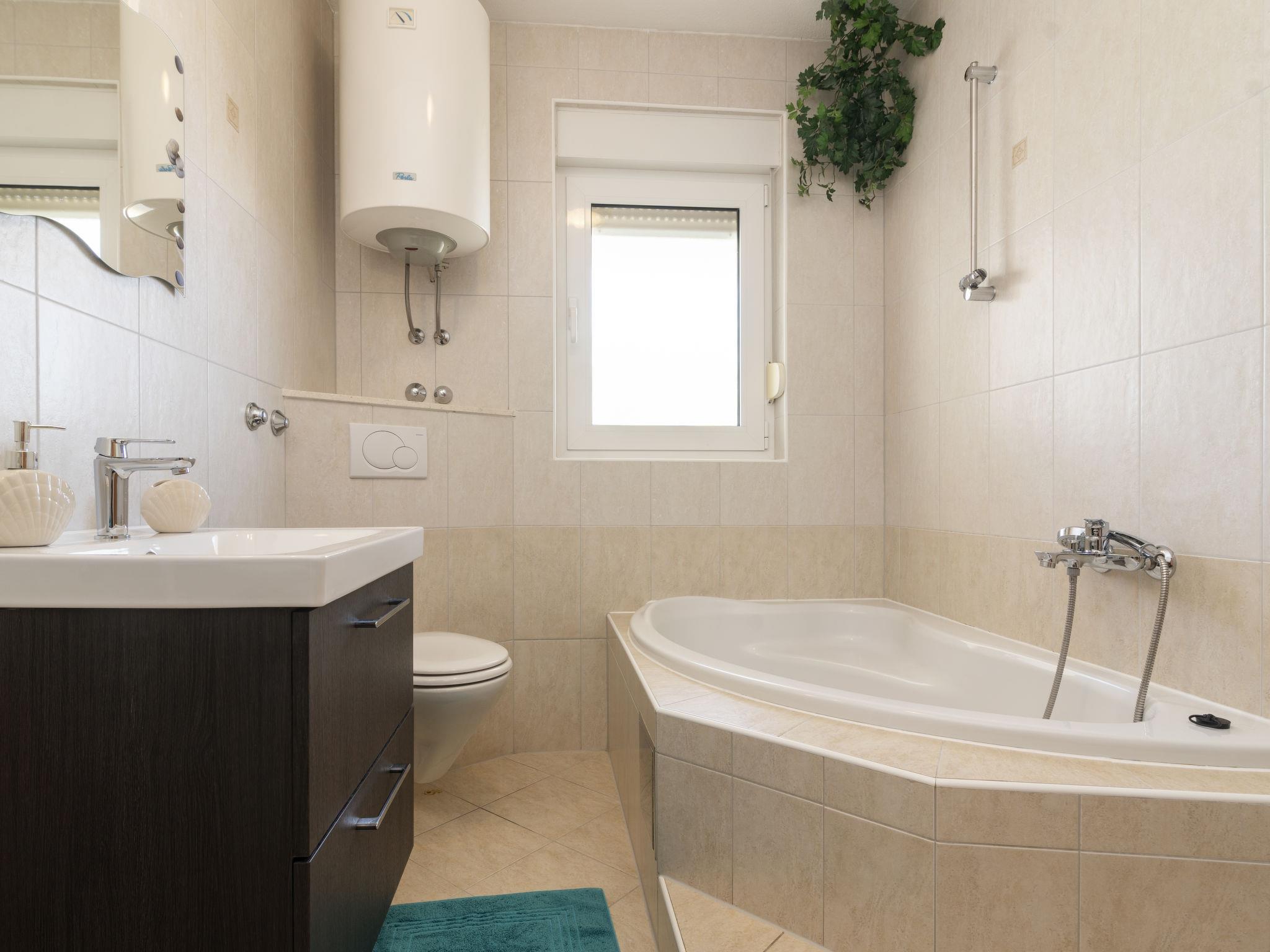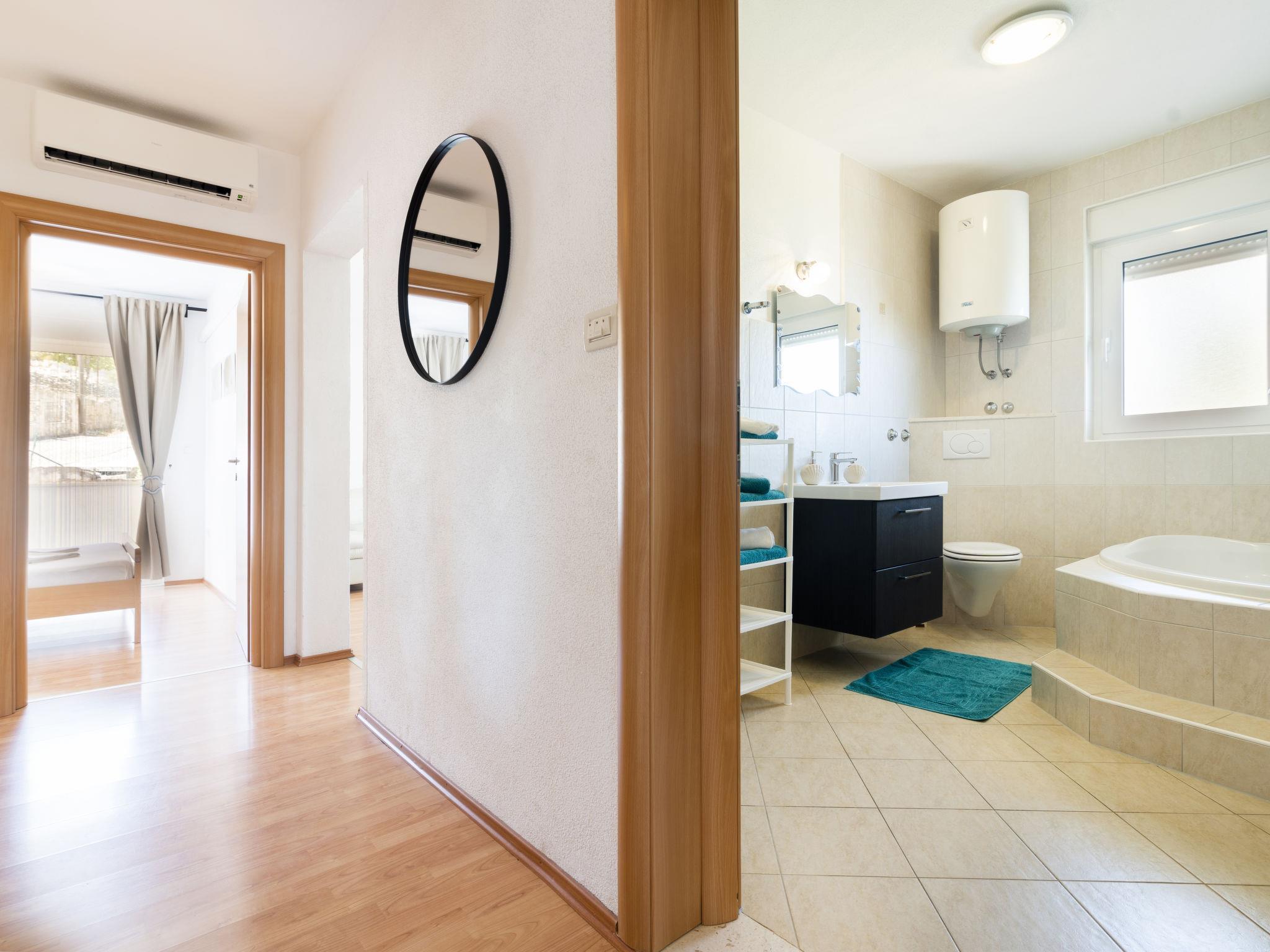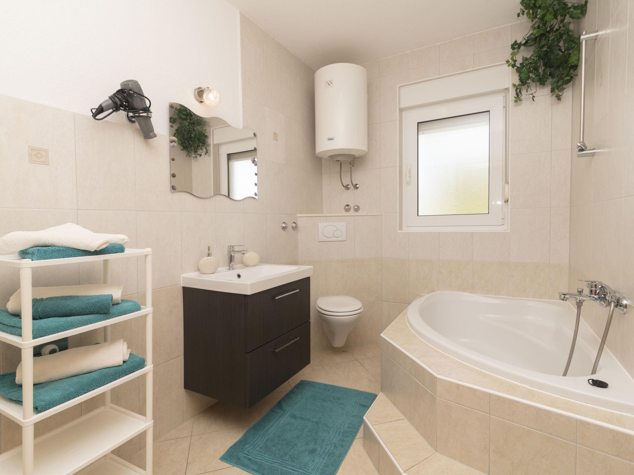 Slatine (Ciovo) 6 km von Trogir: Mehrfamilienhaus "Anda". Ruhige, sonnige Lage, 175 m vom Meer, 175 m vom Strand. Zur Mitbenutzung: Terrasse (30 m2), Gartenmöbel, Grill. Im Hause: Internetzugang. Parkplatz (überdacht) beim Haus auf dem Grundstück. Einkaufsgeschäft 1 km, Restaurant 1 km, Bushaltestelle 170 m, Kieselstrand, Felsstrand 175 m.