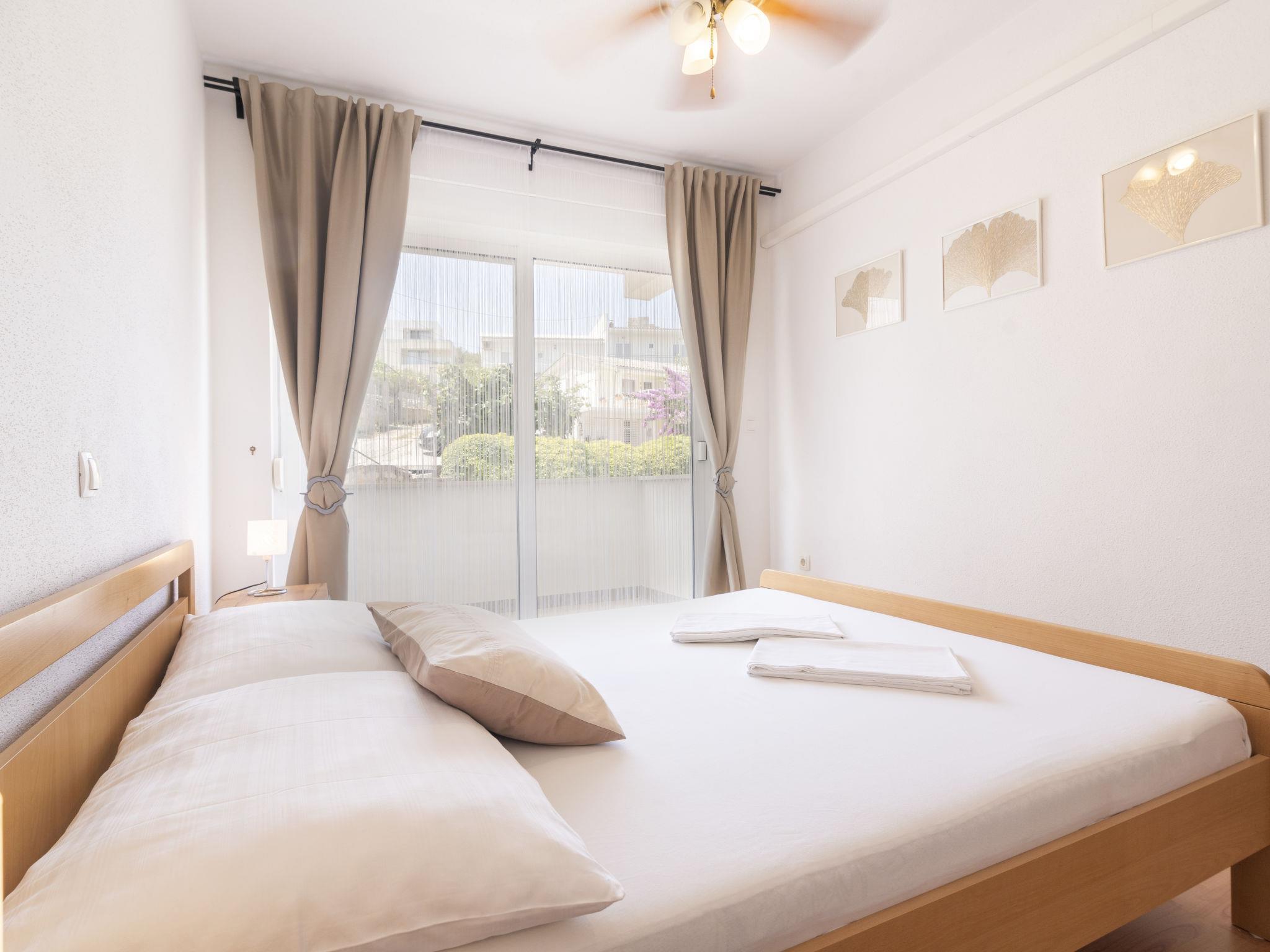 3-Zimmer-Wohnung 55 m2 im 1. Stock, Westlage. Wohn-/Esszimmer mit Sat-TV und Klimaanlage. Ausgang zum Balkon. 1 Zimmer mit 2 Betten (90 cm, Länge 200 cm). 1 Zimmer mit 1 franz. Bett (160 cm, Länge 190 cm). Ausgang zum Balkon. Offene Küche (Backofen, Geschirrspüler, 4 Glaskeramikplatten, Mikrowelle, Tiefkühler). Bad/WC. Balkon 5 m2, Balkon 3 m2. Balkonmöbel. Eingeschränkte Sicht auf das Meer. Zur Verfügung: Haartrockner. Internet (Wireless LAN, gratis).