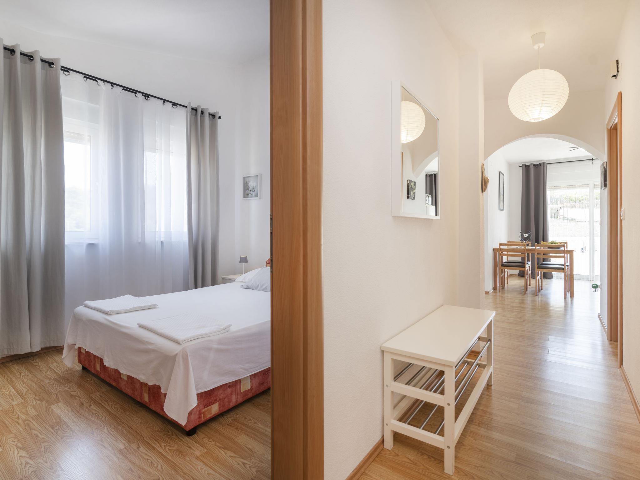 Slatine (Ciovo) 6 km von Trogir: Mehrfamilienhaus "Anda". Ruhige, sonnige Lage, 175 m vom Meer, 175 m vom Strand. Zur Mitbenutzung: Terrasse (30 m2), Gartenmöbel, Grill. Im Hause: Internetzugang. Parkplatz (überdacht) beim Haus auf dem Grundstück. Einkaufsgeschäft 1 km, Restaurant 1 km, Bushaltestelle 170 m, Kieselstrand, Felsstrand 175 m.