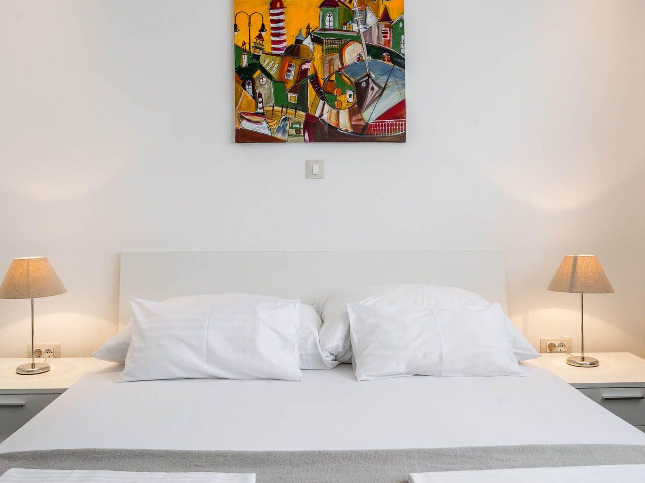 Das Apartment Golden B2 ist ein Duplex-Apartment, das sich über den ersten und zweiten Stock des Gebäudes erstreckt. Das sorgfältig gestaltete Interieur mit klaren Linien schafft eine Atmosphäre von Eleganz und Luxus, die in Kombination mit der wunderbaren Umgebung niemanden gleichgültig lässt. Die luxuriöse Wohnung Golden B2 besteht aus 3 Doppelschlafzimmern mit angrenzenden Bädern, einem modernen Wohnzimmer, einer gut ausgestatteten offenen Küche und einer geräumigen Dachterrasse mit atemberaubendem Meerblick. Eine Glasschiebetür führt vom Wohnzimmer auf einen schönen Balkon mit Meerblick, der mit Gartenmöbeln ausgestattet ist. Die Wohnung ist für 6 Personen geeignet. Das Apartment Golden B2 ist voll klimatisiert und mit SAT-TV, Wi-Fi, Safe, Bügeleisen und Bügelbrett, Waschmaschine, elektrischem Außengrill, Haartrockner, Herd, Backofen, Dunstabzugshaube, Kühlschrank mit Gefrierfach, Geschirrspüler, Wasserkocher und Kaffeemaschine ausgestattet. Babybett und Hochstuhl sowie Liegeplatz für Boote sind auf Anfrage erhältlich. Den Gästen steht ein kostenloser Parkplatz zur Verfügung.