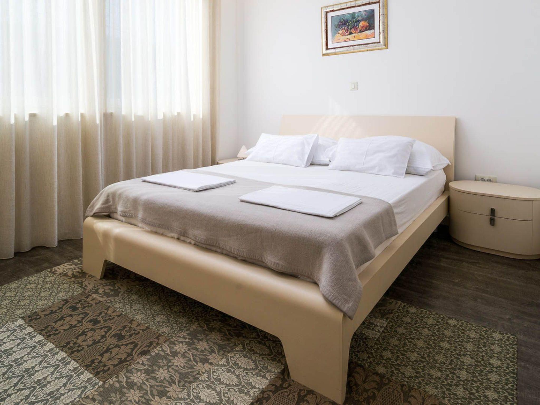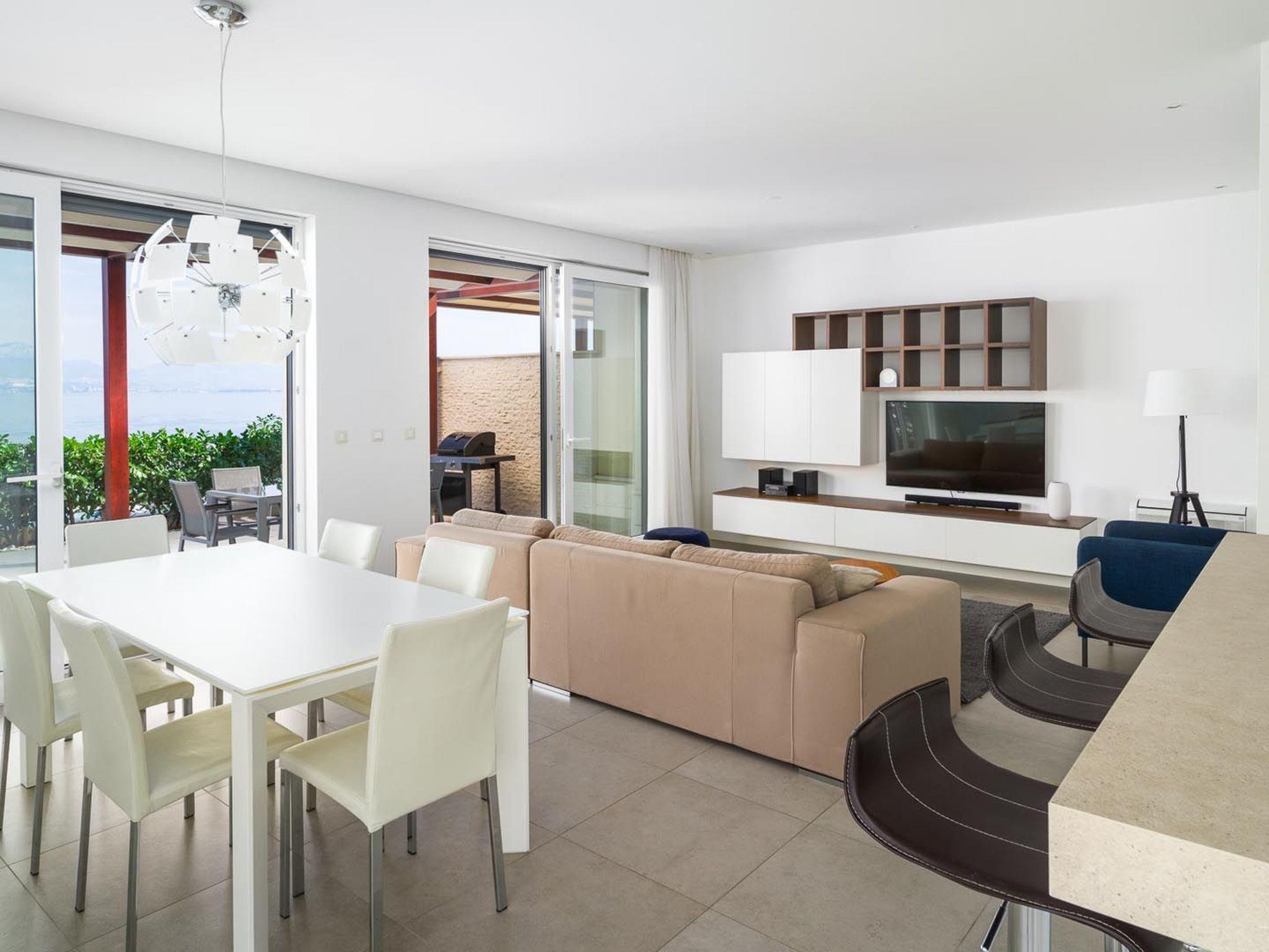Die Villa Golden A erstreckt sich über das Erdgeschoss, den ersten und zweiten Stock, aufgeteilt in 2 Duplex-Suiten mit separaten Eingängen. Die Villa umfasst 300 m2 Wohnfläche. Sorgfältig gestaltete Innenräume und ein wunderschön gestalteter Außenbereich verbinden Eleganz, Stil und Luxus perfekt miteinander. Villa Golden A besteht aus 6 Doppelschlafzimmern mit angrenzenden Bädern, 2 Wohnzimmern, 1 Halbbad, 2 gut ausgestatteten Küchen und einer geräumigen Dachterrasse mit atemberaubendem Meerblick. Es ist eine geeignete Unterkunft für bis zu 12 Personen. Das Erdgeschoss besteht aus einem geräumigen und luxuriös eingerichteten Wohnzimmer mit Essbereich, einer offenen Küche, einem Schlafzimmer mit Doppelbett und einem eigenen Bad mit Dusche und Badewanne. Eine große Glastür führt vom Wohnzimmer auf die große Terrasse mit Blick auf den Pool und das Meer. Eine Innentreppe führt in die erste Etage, die als Ruhebereich mit 3 modernen Schlafzimmern (zwei davon mit atemberaubendem Meerblick) mit eigenem Bad ausgestattet ist. Die zweite Etage besteht aus einem zweiten Wohnzimmer mit Essbereich und Zugang zu einem schönen Balkon mit Meerblick, einer offenen Küche und 2 Doppelschlafzimmern mit eigenem Bad. Villa Golden A ist voll klimatisiert und ausgestattet mit SAT-TV, Wi-fi, Safe, Bügeleisen und Bügelbrett, Waschmaschine, Haartrockner, Herd, Backofen, Dunstabzugshaube, Kühlschrank mit Gefrierfach, Geschirrspüler, Wasserkocher und Kaffeemaschine. Babybett und Hochstuhl sowie ein Bootsliegeplatz sind auf Anfrage erhältlich. Den Gästen steht ein kostenloser Parkplatz zur Verfügung. Raumaufteilung und Ausstattung der Villa Golden A: Erdgeschoss: Schlafzimmer 1: Doppelbett, Klimaanlage, Kleiderschrank, Bettwäsche / Bad 1: Badewanne, Dusche, WC, Waschbecken, Toilettenartikel, Handtücher, Haartrockner Wohnzimmer/Essbereich: Klimaanlage, Sofa, SAT-TV, Wi-Fi, Esstisch und Stühle für 6 Personen, Gartenmöbel auf der Terrasse mit Meerblick Küchenausstattung: Herd, Backofen, Dunstabzugshaube, Kühlschrank mit Gefrierfach, Geschirrspüler, Wasserkocher, Kaffeemaschine, Geschirr und Utensilien Halbbad: WC, Waschbecken, Handtücher Obergeschoss: Schlafzimmer 2: Doppelbett, Klimaanlage, SAT-TV, Kleiderschrank, Bettwäsche, Meerblick Französischer Balkon / en suite Badezimmer 2: Dusche, WC, Waschbecken, Handtücher, Toilettenartikel Schlafzimmer 3: Doppelbett, Klimaanlage, SAT-TV, Kleiderschrank, Bettwäsche, Meerblick Französischer Balkon / en suite Badezimmer 3: Dusche, WC, Waschbecken, Handtücher, Toilettenartikel Schlafzimmer 4: Doppelbett, Klimaanlage, Kleiderschrank, Bettwäsche / en suite Badezimmer 4: Badewanne, Dusche, WC, Waschbecken, Toilettenartikel, Handtücher, Haartrockner Zweiter Stock: Schlafzimmer 5: Doppelbett, Klimaanlage, Kleiderschrank, Bettwäsche / en suite Badezimmer 5: Dusche, WC, Waschbecken, Handtücher, Toilettenartikel Schlafzimmer 6: Doppelbett, Klimaanlage, Kleiderschrank, Bettwäsche Badezimmer 6: Dusche, WC, Waschbecken, Handtücher, Toilettenartikel Wohnzimmer/ Essbereich: Klimaanlage, Sofa, SAT-TV, Wi-Fi, Esstisch und Stühle für 6 Personen, Gartenmöbel auf einem Balkon mit Meerblick Küchenausstattung: Herd, Backofen, Dunstabzugshaube, Kühlschrank mit Gefrierfach, Geschirrspüler, Wasserkocher, Kaffeemaschine, Geschirr und Utensilien Genießen Sie Ihren Aufenthalt in der luxuriösen Villa Golden A und verbringen Sie einen unvergesslichen Urlaub auf der Insel Ciovo!