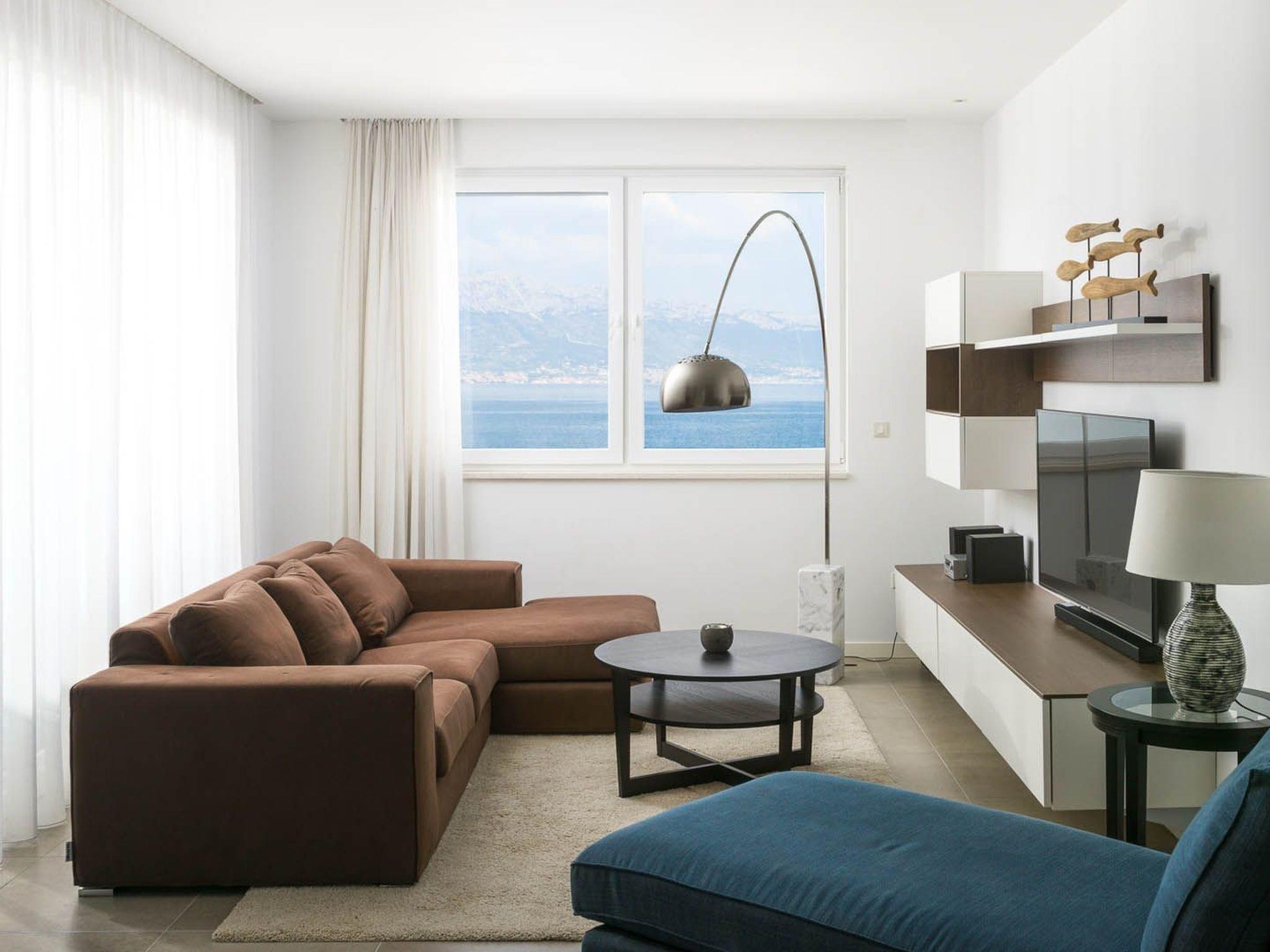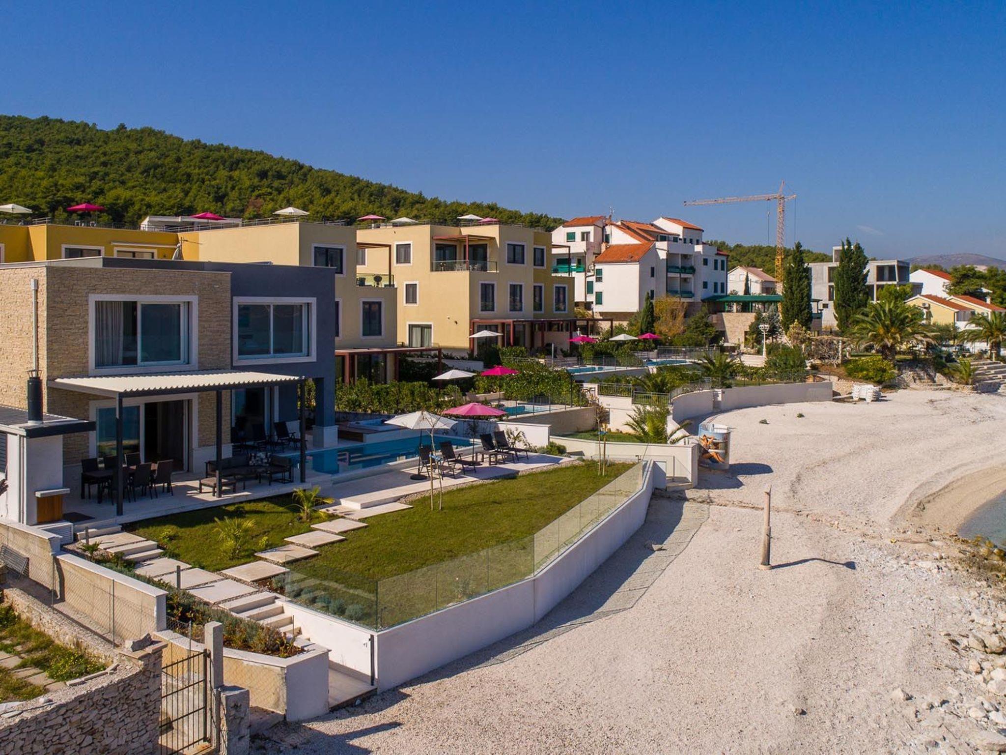 Villa Golden A ist eine luxuriöse Ferienvilla am Strand auf der Insel Ciovo, nur 7 km von der historischen UNESCO-geschützten Stadt Trogir, die mit der Insel über eine Brücke verbunden ist, und 10 km vom Flughafen Split entfernt. Diese hervorragend eingerichtete und elegante Villa ist Teil eines neu gebauten luxuriösen Strandkomplexes Golden, nur 10 m vom schönen Kieselstrand und dem kristallklaren Meer entfernt, mit einem atemberaubenden Panoramablick auf die Küste, die Berge und die Stadt Split.