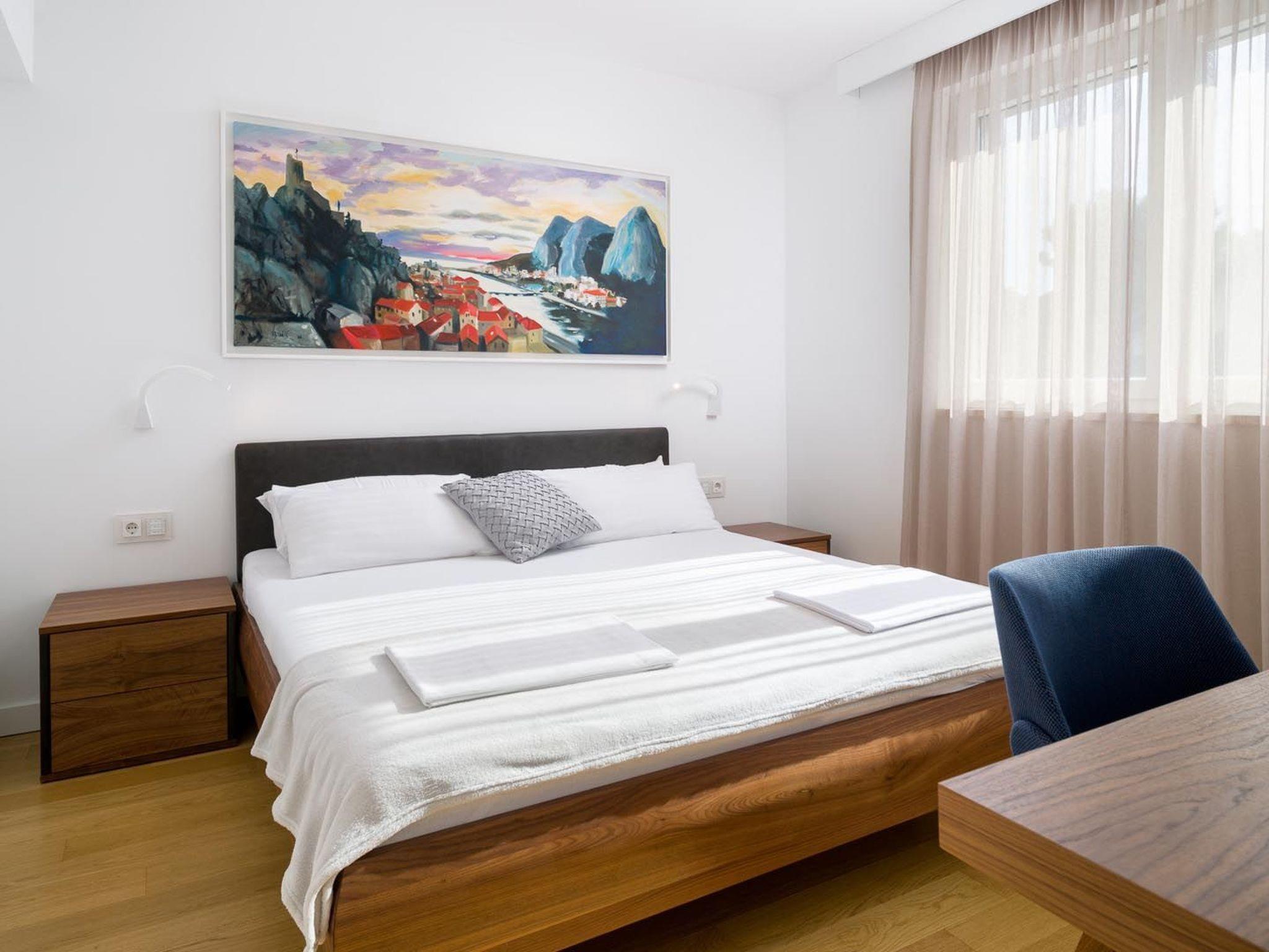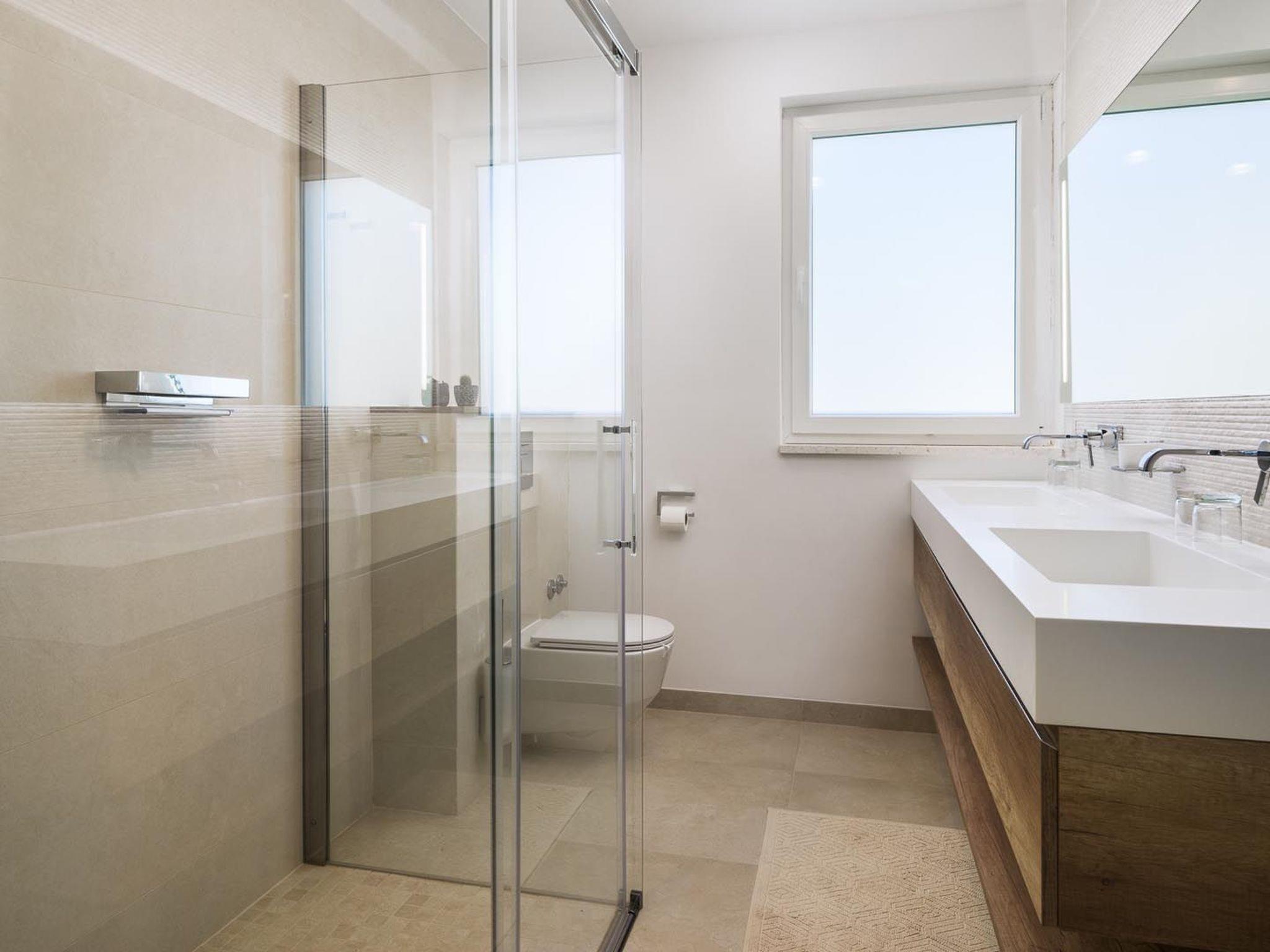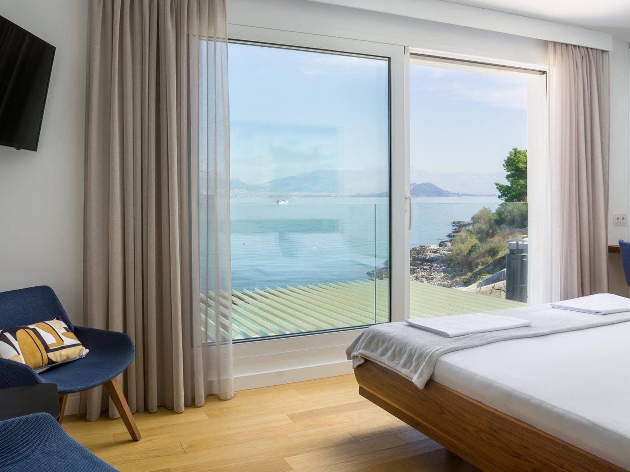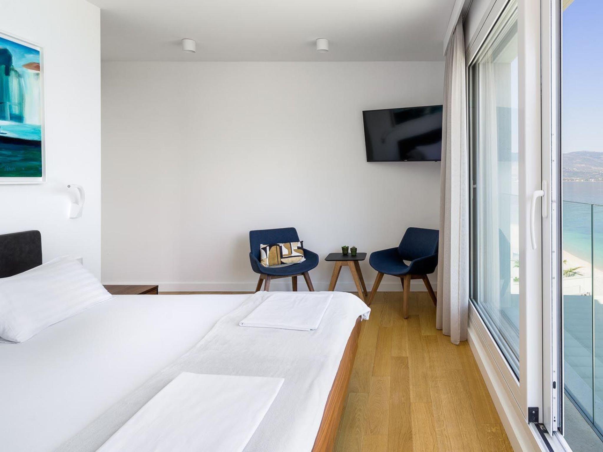 Die Villa Paradise besteht aus dem Erdgeschoss und dem ersten Stock und umfasst insgesamt 260 m2 Wohnfläche. Die Villa verfügt über 4 Doppelschlafzimmer, 3 Bäder, Wohnzimmer mit offener Küche, 1 Halbbad und kann bis zu 8 Personen beherbergen. Das Erdgeschoss besteht aus einem geräumigen Wohnzimmer mit hochwertigen Möbeln und einem Innenkamin, einem Essbereich mit einem großen Esstisch und Stühlen für 8 Personen und einer gut ausgestatteten luxuriösen offenen Küche. Große Glasschiebetüren führen vom Wohnzimmer und der Küche auf die überdachte Terrasse mit Gartenmöbeln und einem Außengrill mit Blick auf das Meer und den Garten. Die erste Etage ist als Ruhebereich mit 4 klimatisierten Schlafzimmern mit Kingsize-Betten und SAT-TVs und 3 Bädern mit Duschen konzipiert. Zwei Schlafzimmer haben große französische Balkone mit spektakulärem Blick auf das Meer, so dass man das Gefühl hat, in einem wahren mediterranen Paradies aufzuwachen. Die Villa Paradise ist voll klimatisiert und mit SAT-TV, Wi-fi, Safe, Bügeleisen und Bügelbrett, Waschmaschine, Haartrockner, Herd, Backofen, Dunstabzugshaube, Kühlschrank mit Gefrierfach, Geschirrspüler, Wasserkocher und Kaffeemaschine ausgestattet. Babybett und Hochstuhl sowie Liegeplatz für Boote sind auf Anfrage erhältlich. Den Gästen stehen 3 überdachte Parkplätze zur Verfügung. Haustiere sind nicht erlaubt. Die Kurtaxe ist bei der Ankunft zu entrichten. Die Gäste erhalten bei ihrer Ankunft ein Begrüßungsgetränk.