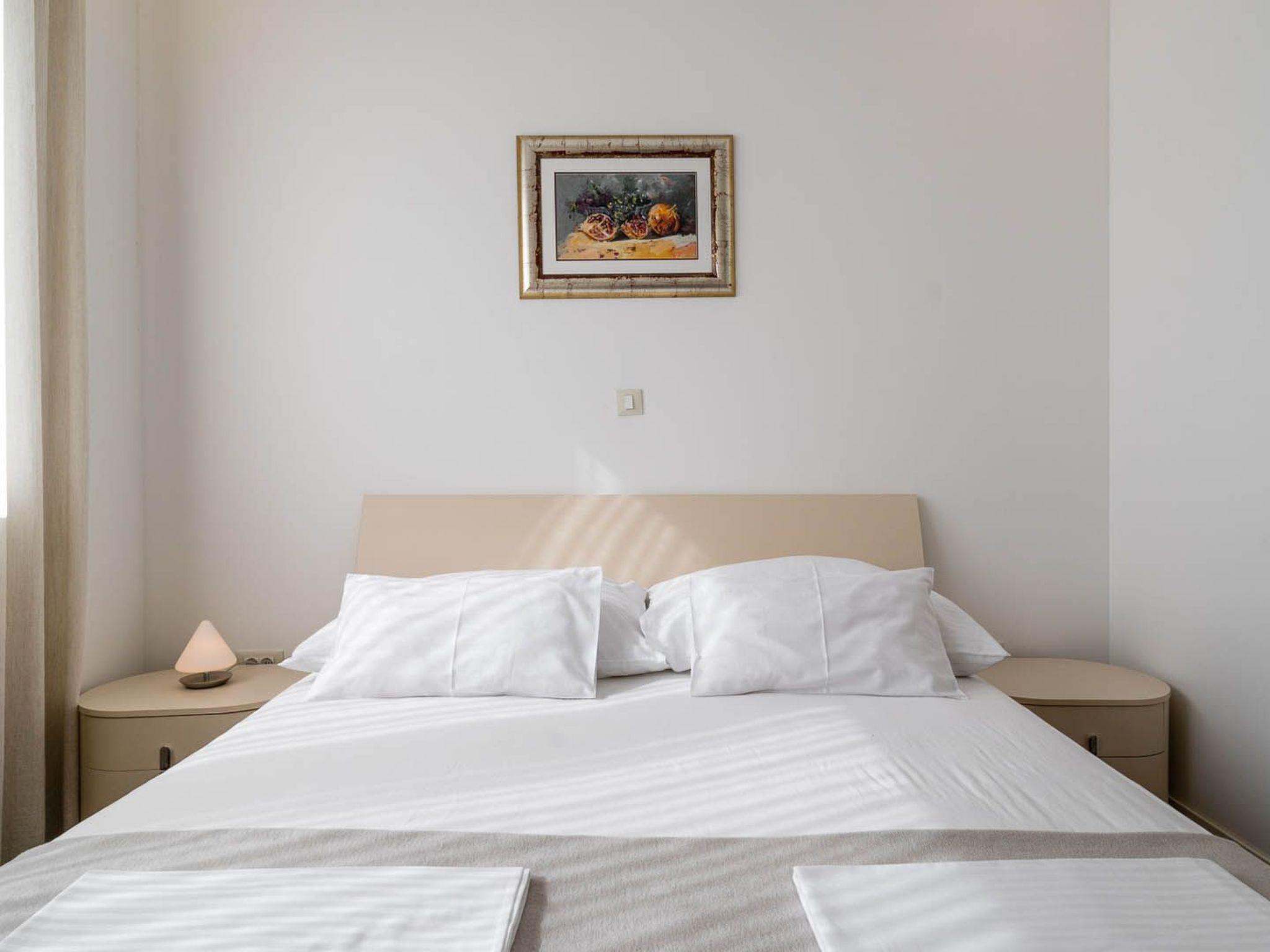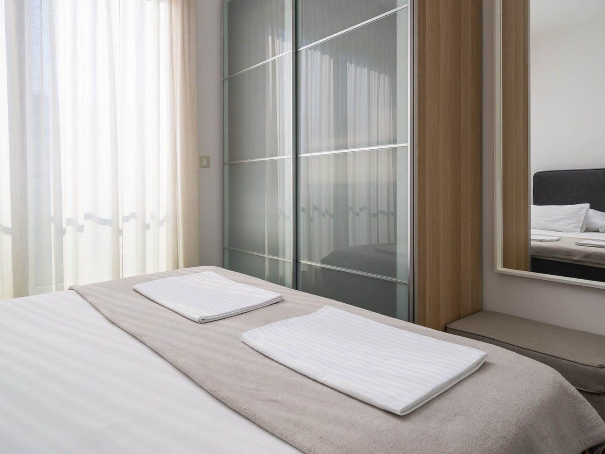 Das luxuriöse Apartment Golden A2 besteht aus 3 Doppelschlafzimmern mit angrenzenden Badezimmern, einem modernen Wohnzimmer, einer gut ausgestatteten offenen Küche und einer geräumigen Dachterrasse mit atemberaubendem Meerblick. Eine Glasschiebetür führt vom Wohnzimmer auf einen schönen Balkon mit Meerblick, der mit Gartenmöbeln ausgestattet ist. Die Wohnung ist für 6 Personen geeignet. Das Appartement Golden A2 ist voll klimatisiert und ausgestattet mit SAT-TV, Wi-fi, Safe, Bügeleisen und Bügelbrett, Waschmaschine, elektrischem Außengrill, Haartrockner, Herd, Backofen, Dunstabzugshaube, Kühlschrank mit Gefrierfach, Geschirrspüler, Wasserkocher und Kaffeemaschine. Babybett und Hochstuhl sowie ein Bootsliegeplatz sind auf Anfrage erhältlich.