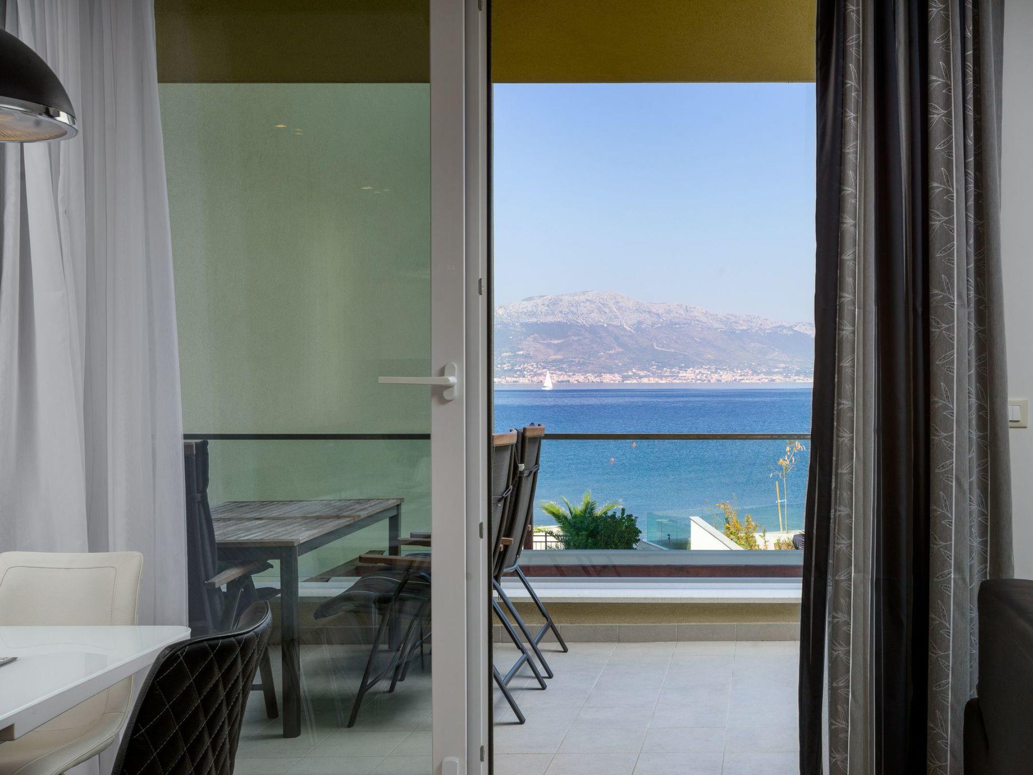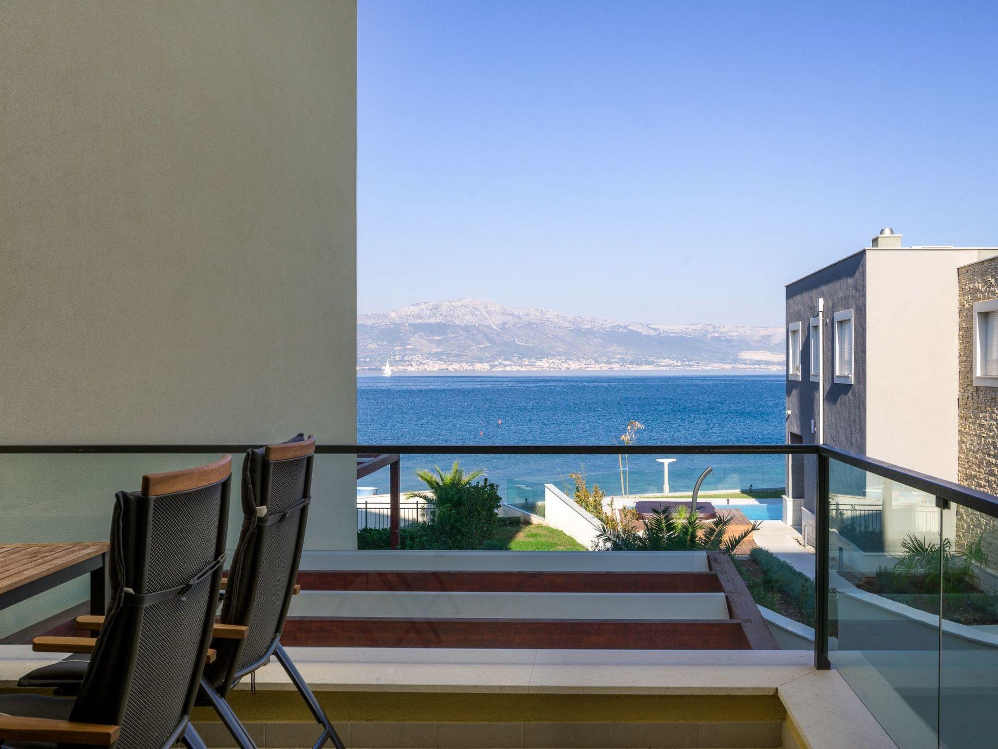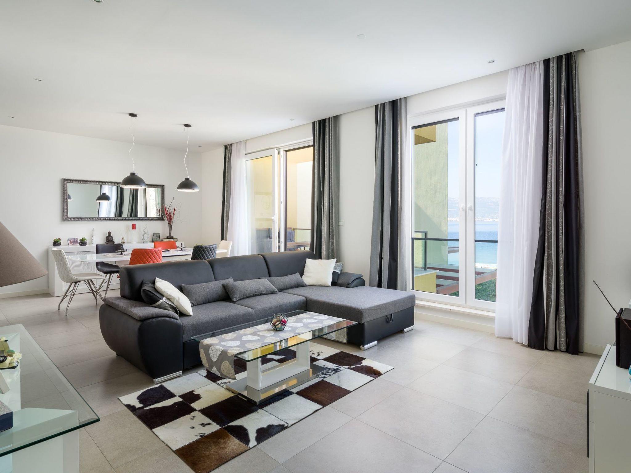 Diese wunderschön eingerichtete Wohnung ist Teil eines neu gebauten luxuriösen Strandkomplexes Golden, nur 10 m vom schönen Kieselstrand und kristallklarem Meer mit einem atemberaubenden Panoramablick auf die Küste, die Berge und die Stadt Split entfernt.