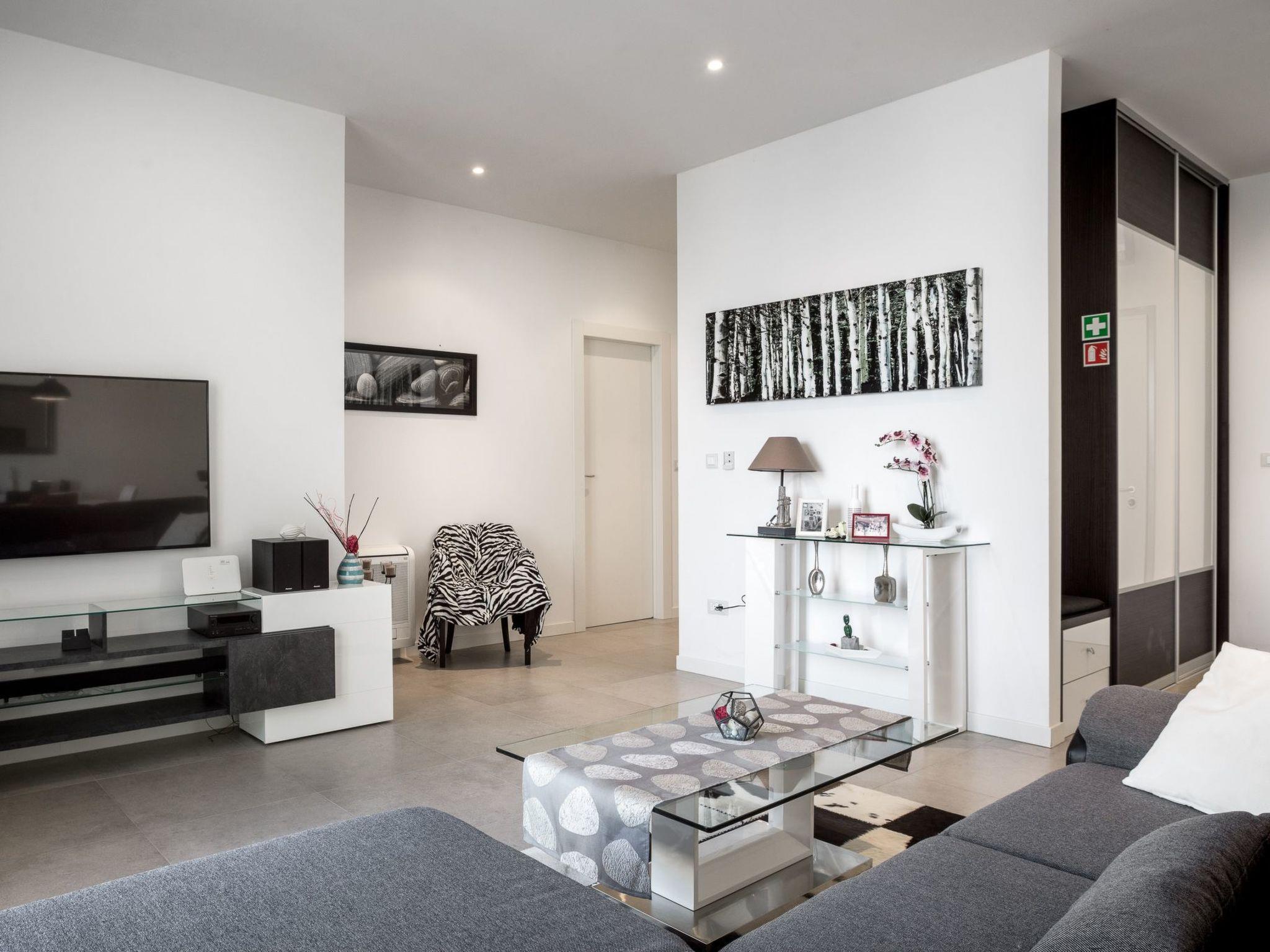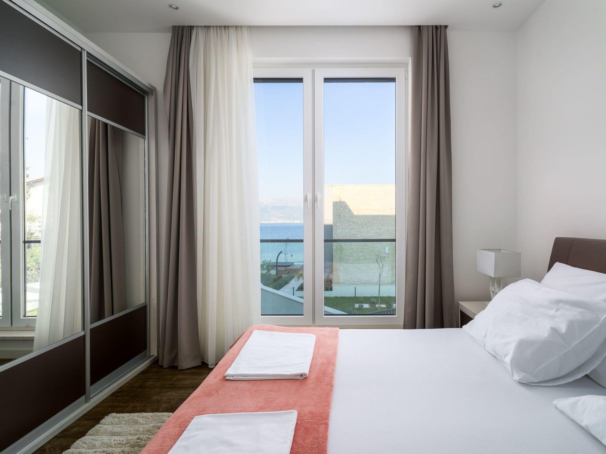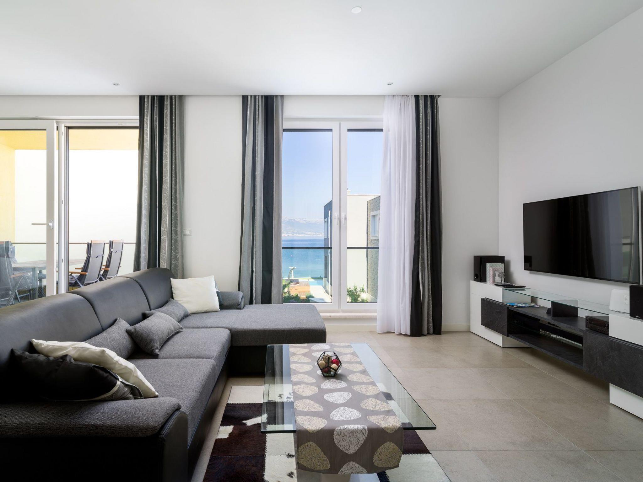 Diese wunderschön eingerichtete Wohnung ist Teil eines neu gebauten luxuriösen Strandkomplexes Golden, nur 10 m vom schönen Kieselstrand und kristallklarem Meer mit einem atemberaubenden Panoramablick auf die Küste, die Berge und die Stadt Split entfernt.