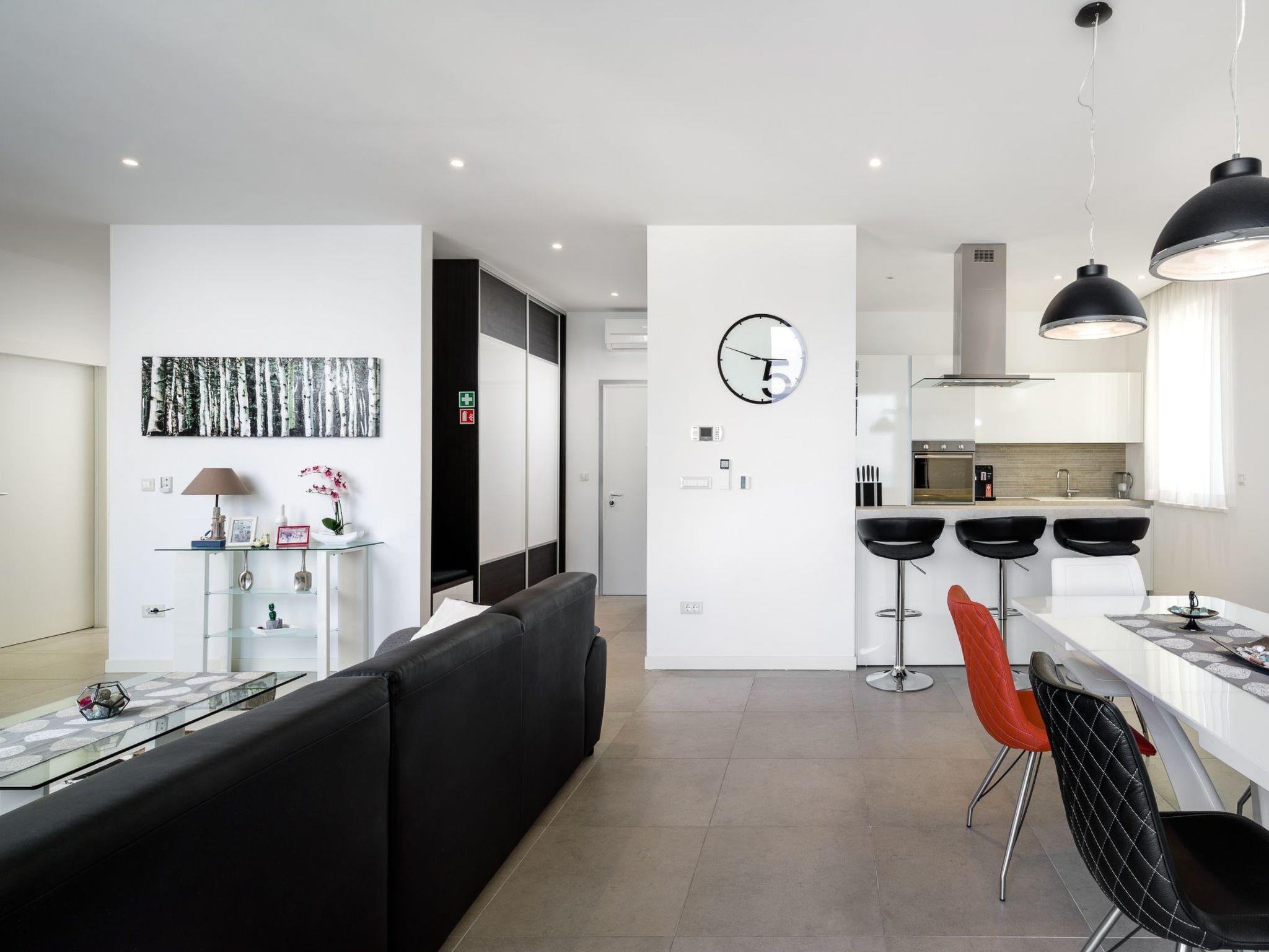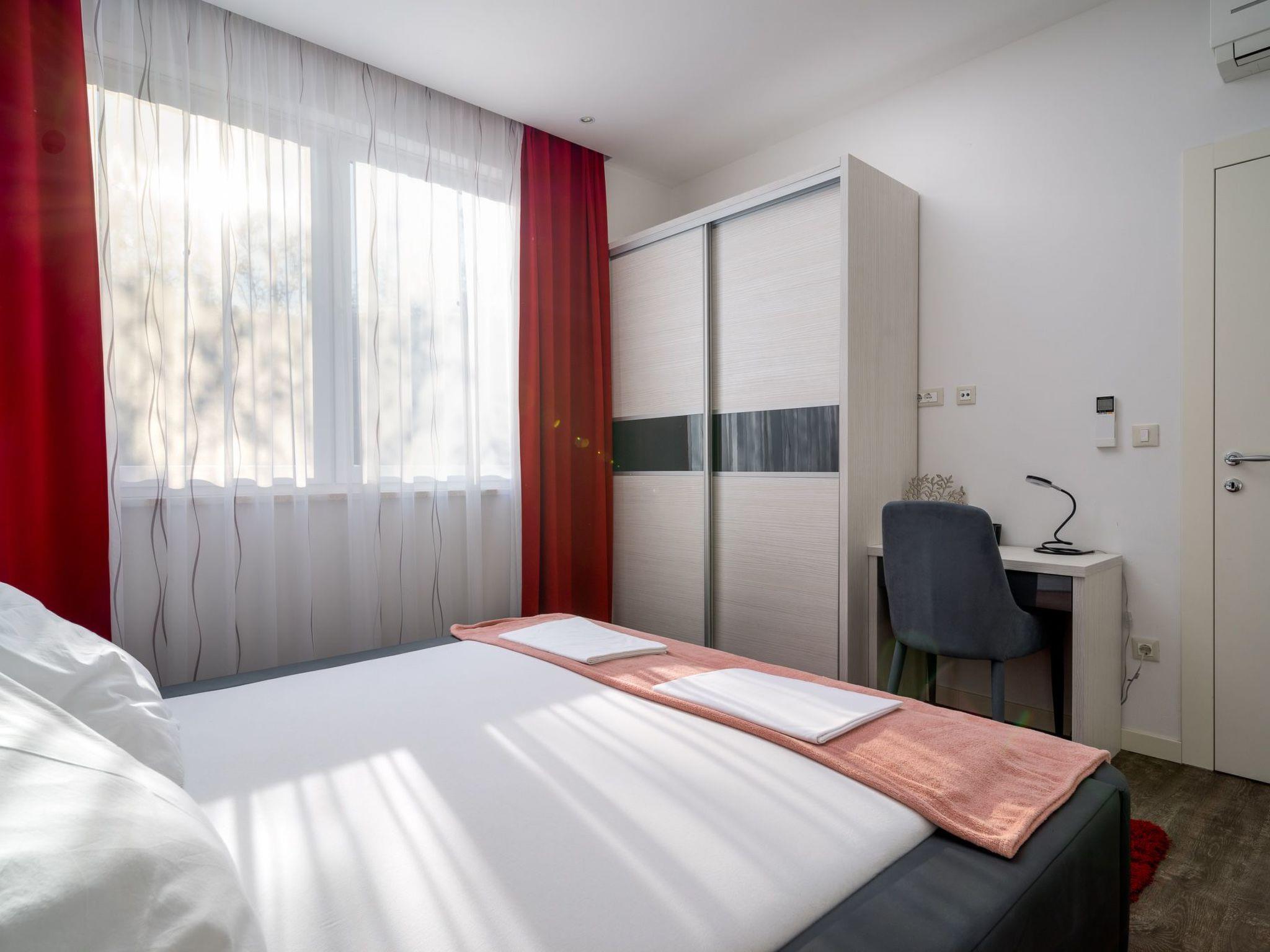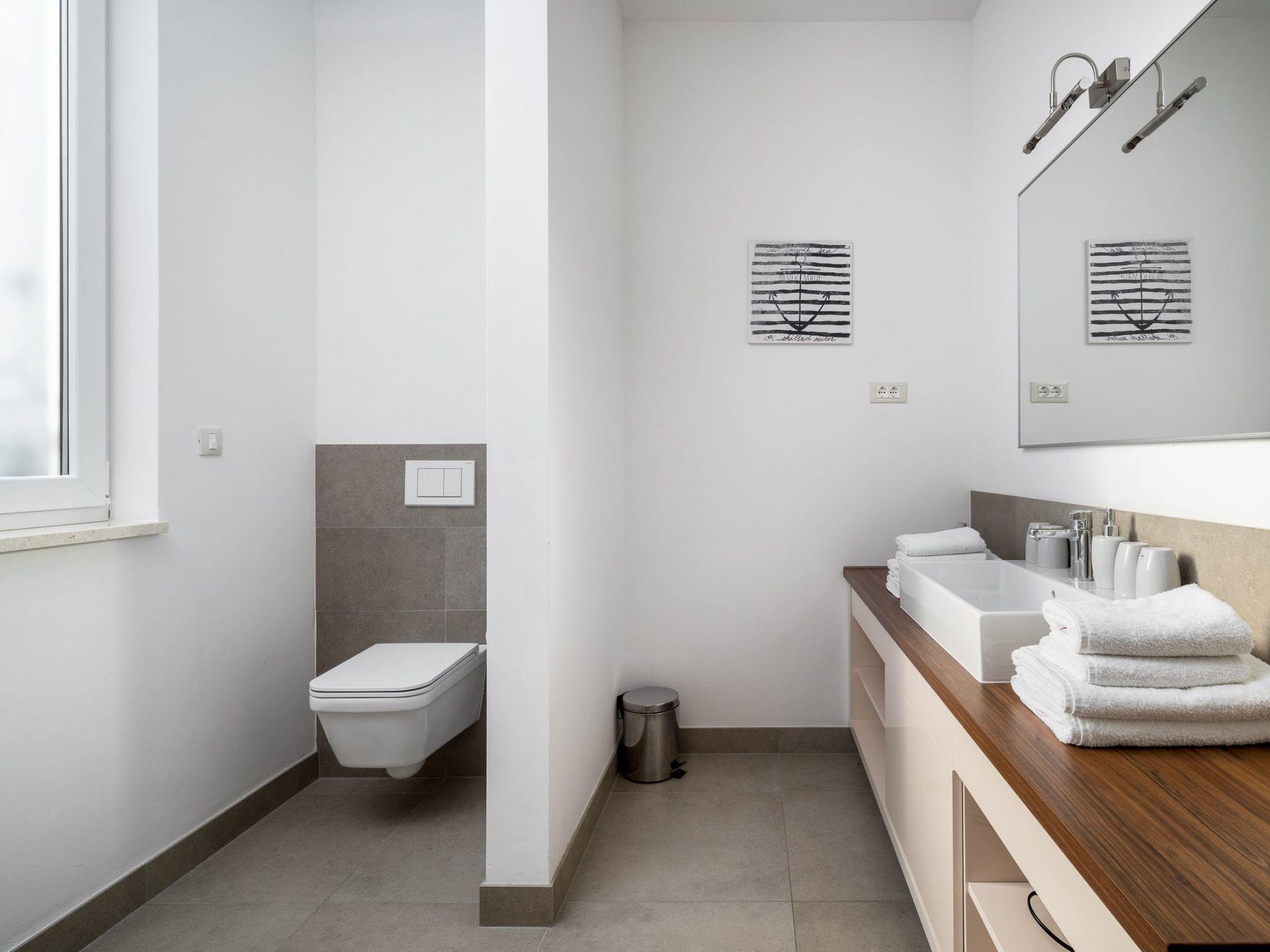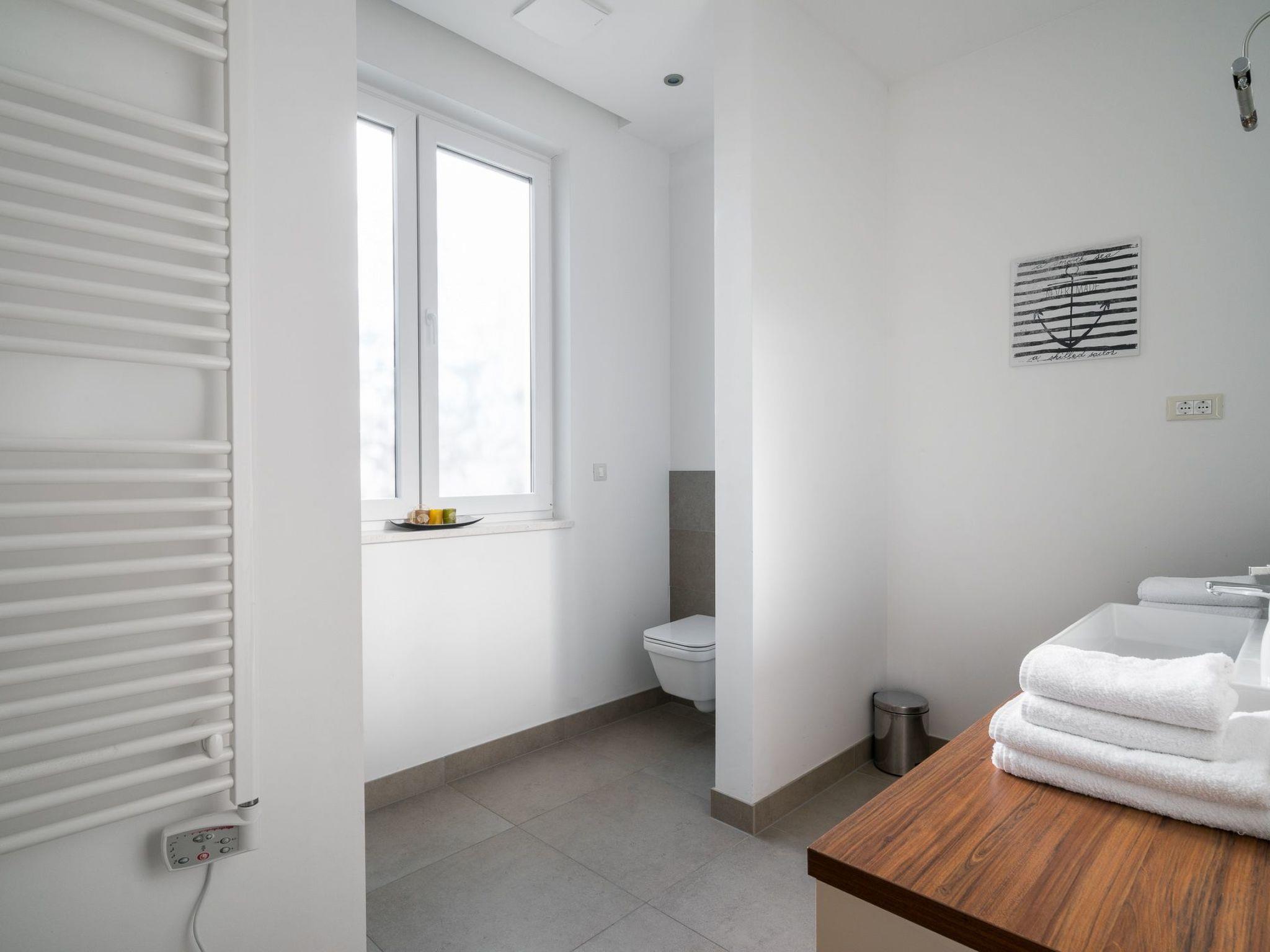 Das Apartment Golden D2 befindet sich im ersten Stock des Gebäudes. Das sorgfältig gestaltete Interieur mit klaren Linien schafft eine Atmosphäre von Eleganz und Luxus, die in Kombination mit der wunderbaren Umgebung niemanden gleichgültig lässt. Die luxuriöse Wohnung Golden D2 besteht aus 2 Doppelschlafzimmern, einem modernen Badezimmer, einem Halbbad, einem modernen Wohnzimmer mit Essbereich und einer gut ausgestatteten offenen Küche. Eine Glasschiebetür führt vom Wohnzimmer auf einen schönen überdachten Balkon mit Meerblick, der mit Gartenmöbeln und einem elektrischen Grill ausgestattet ist. Die Wohnung ist für 4 Personen geeignet. Das Appartement Golden D2 ist voll klimatisiert und ausgestattet mit SAT-TV, Wi-fi, Safe, Bügeleisen und Bügelbrett, Waschmaschine, elektrischem Außengrill, Haartrockner, Herd, Backofen, Dunstabzugshaube, Kühlschrank mit Gefrierfach, Geschirrspüler, Wasserkocher und Kaffeemaschine. Babybett und Hochstuhl sowie Liegeplatz für Boote sind auf Anfrage erhältlich. Den Gästen steht ein kostenloser Parkplatz zur Verfügung. Haustiere sind nicht erlaubt. Die Gäste werden bei ihrer Ankunft mit einem Begrüßungsgetränk empfangen. Raumaufteilung und Ausstattung des Appartements Golden D2: Schlafzimmer 1: Doppelbett, Klimaanlage, Kleiderschrank, Bettwäsche, Meerblick Schlafzimmer 2: Doppelbett, Klimaanlage, Kleiderschrank, Bettwäsche Badezimmer: Dusche, WC, Waschbecken, Handtücher, Haartrockner, Toilettenartikel Wohnzimmer/Essbereich: Klimaanlage, Sofa, SAT-TV, Wi-Fi, Esstisch und Stühle für 6 Personen, Gartenmöbel auf dem Balkon mit Meerblick Küchenausstattung: Herd, Backofen, Dunstabzugshaube, Kühlschrank mit Gefrierfach, Geschirrspüler, Wasserkocher, Kaffeemaschine, Geschirr und Utensilien Genießen Sie Ihren Aufenthalt in der luxuriösen Wohnung Golden D2 und verbringen Sie einen unvergesslichen Urlaub auf der Insel Ciovo!