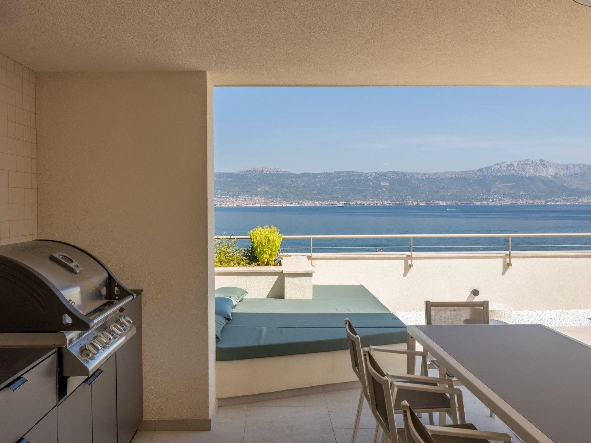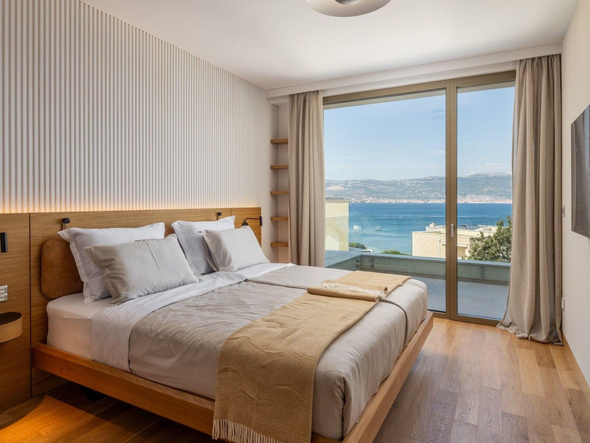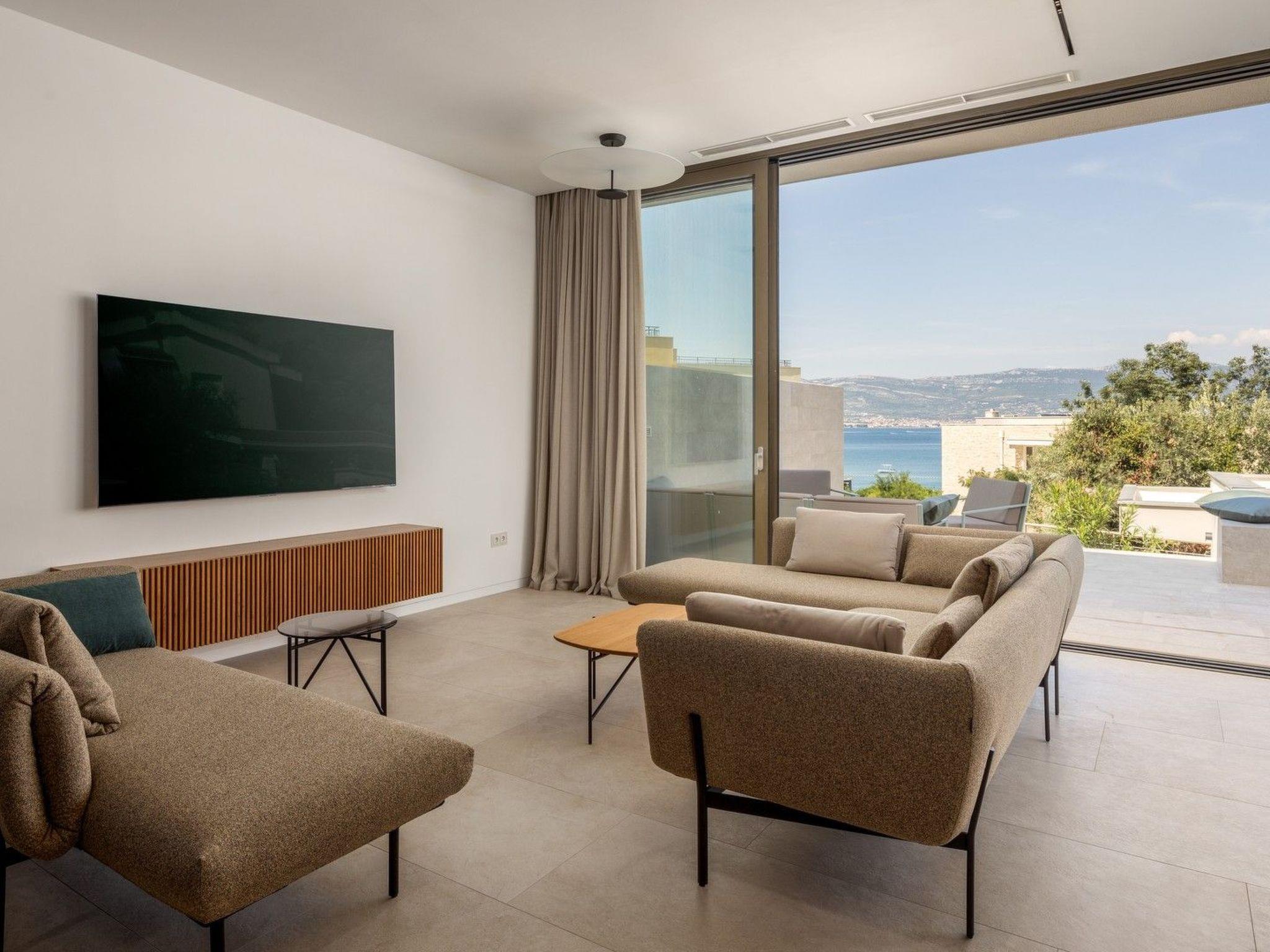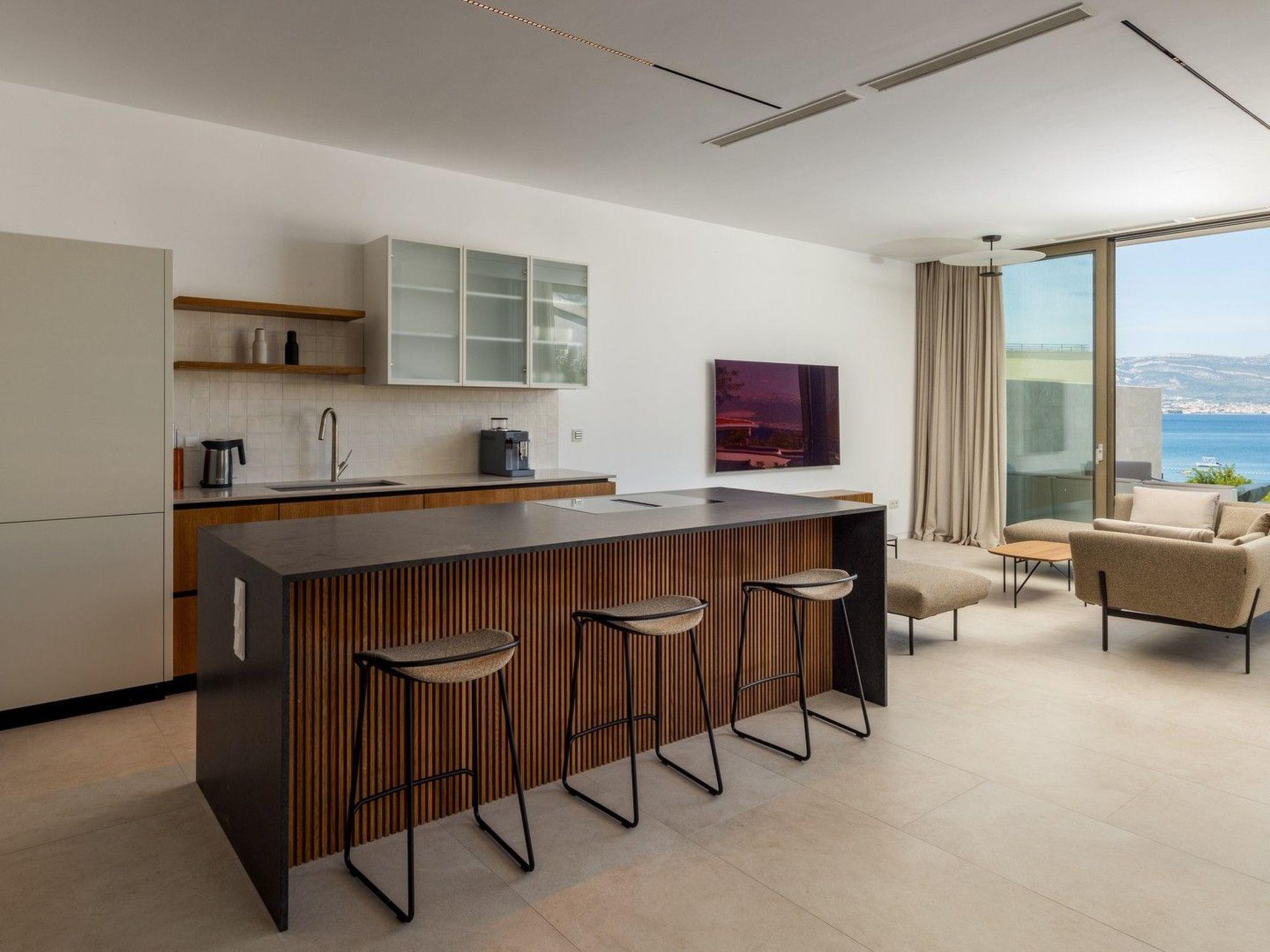 Diese wunderschön eingerichtete Villa ist Teil des Strandkomplexes Golden. Sie ist eine Mischung aus Eleganz, Luxus und Funktionalität. Die Villa liegt nur 30 Meter von einem atemberaubenden Kieselstrand und kristallklarem Meer entfernt und bietet einen atemberaubenden Panoramablick auf die Küste, die Berge und die Stadt Split.