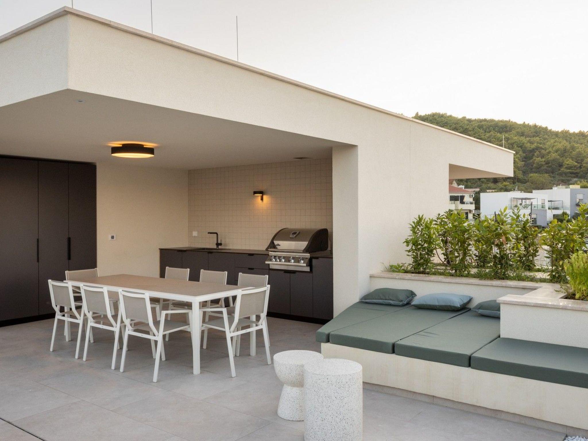 Villa Terra ist eine neue luxuriöse und elegante Ferienvilla in einer ruhigen Gegend des Dorfes Slatine auf der Insel Ciovo, die nur 7 km von der UNESCO-geschützten Stadt Trogir und 13 km vom Flughafen Split entfernt ist.