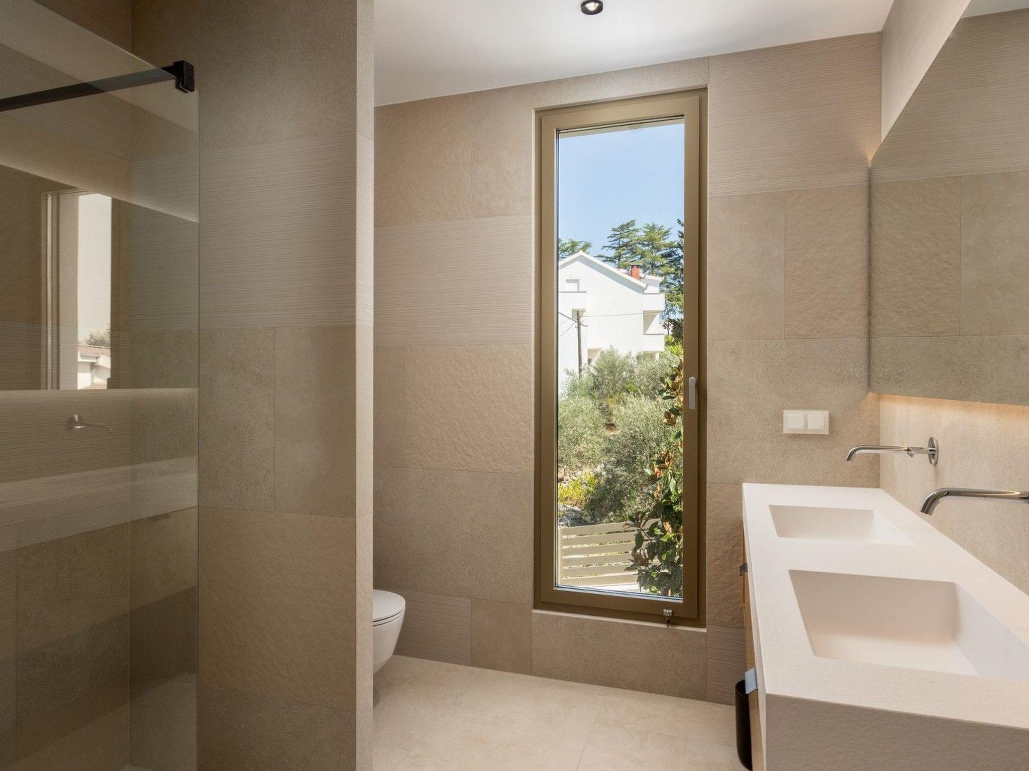 Villa Terra besteht aus dem Untergeschoss, dem Erdgeschoss, dem ersten Stock und dem zweiten Stock und umfasst insgesamt 280 m2 Wohnfläche. Die Villa verfügt über 3 Doppelschlafzimmer, 3 Bäder, ein Wohnzimmer mit offener Küche, 3 Halbbäder und kann bis zu 6 Personen beherbergen. In einem der Zimmer mit einem Doppelbett gibt es auch ein Etagenbett, das Platz für 2 weitere kleine Kinder bietet.