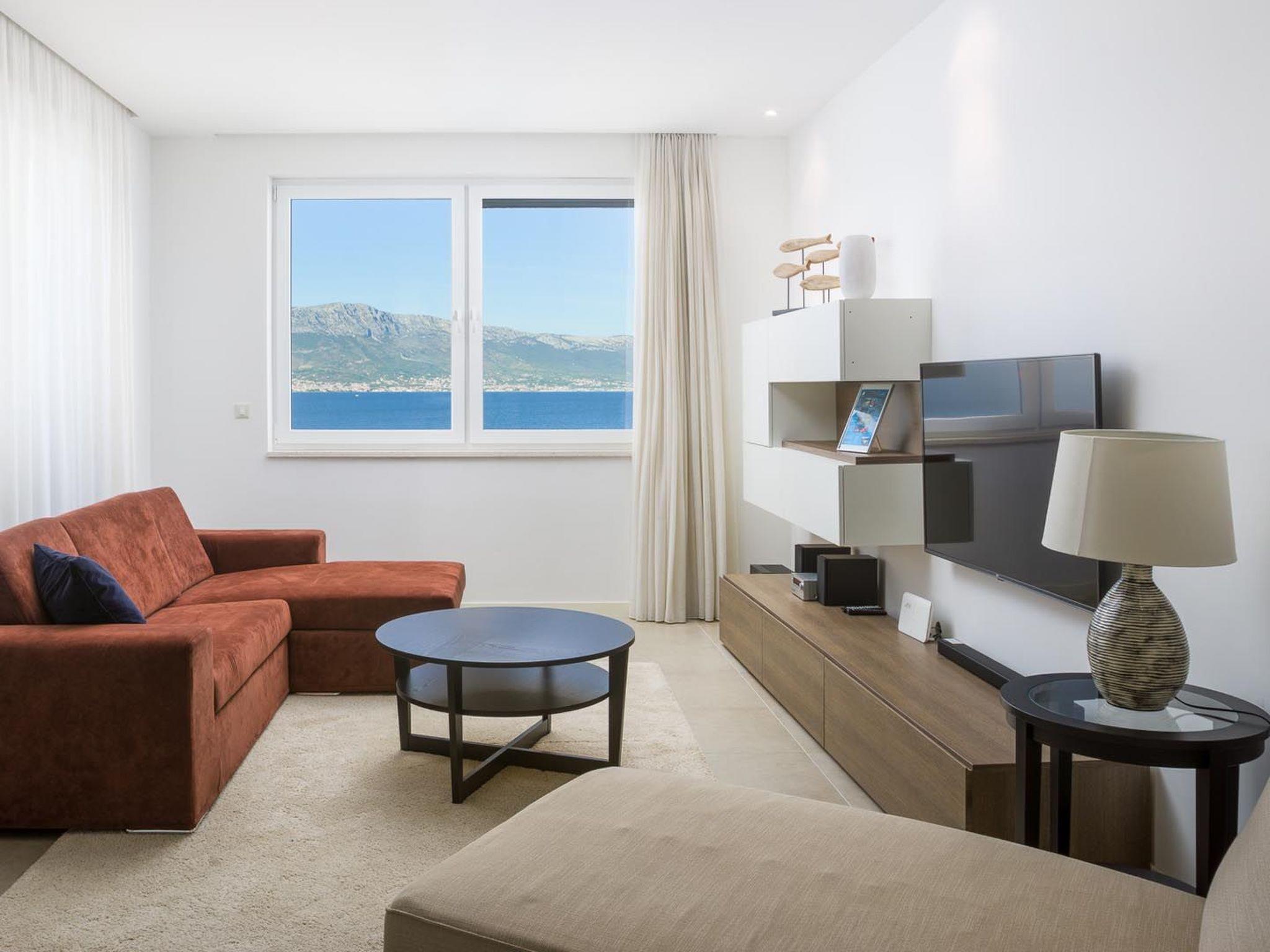 Diese wunderschön eingerichtete Wohnung ist Teil eines neu gebauten luxuriösen Strandkomplexes Golden, nur 10 m vom schönen Kieselstrand und kristallklarem Meer mit einem atemberaubenden Panoramablick auf die Küste, die Berge und die Stadt Split entfernt.