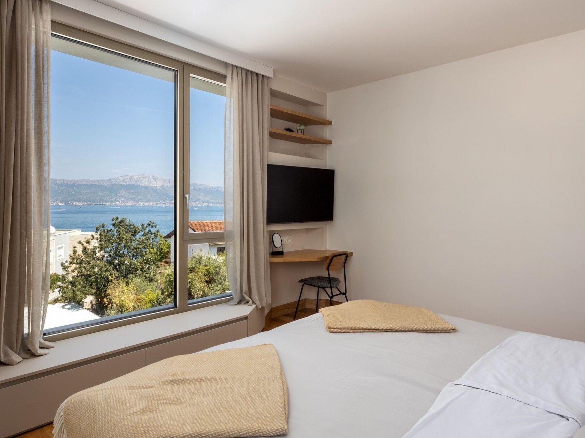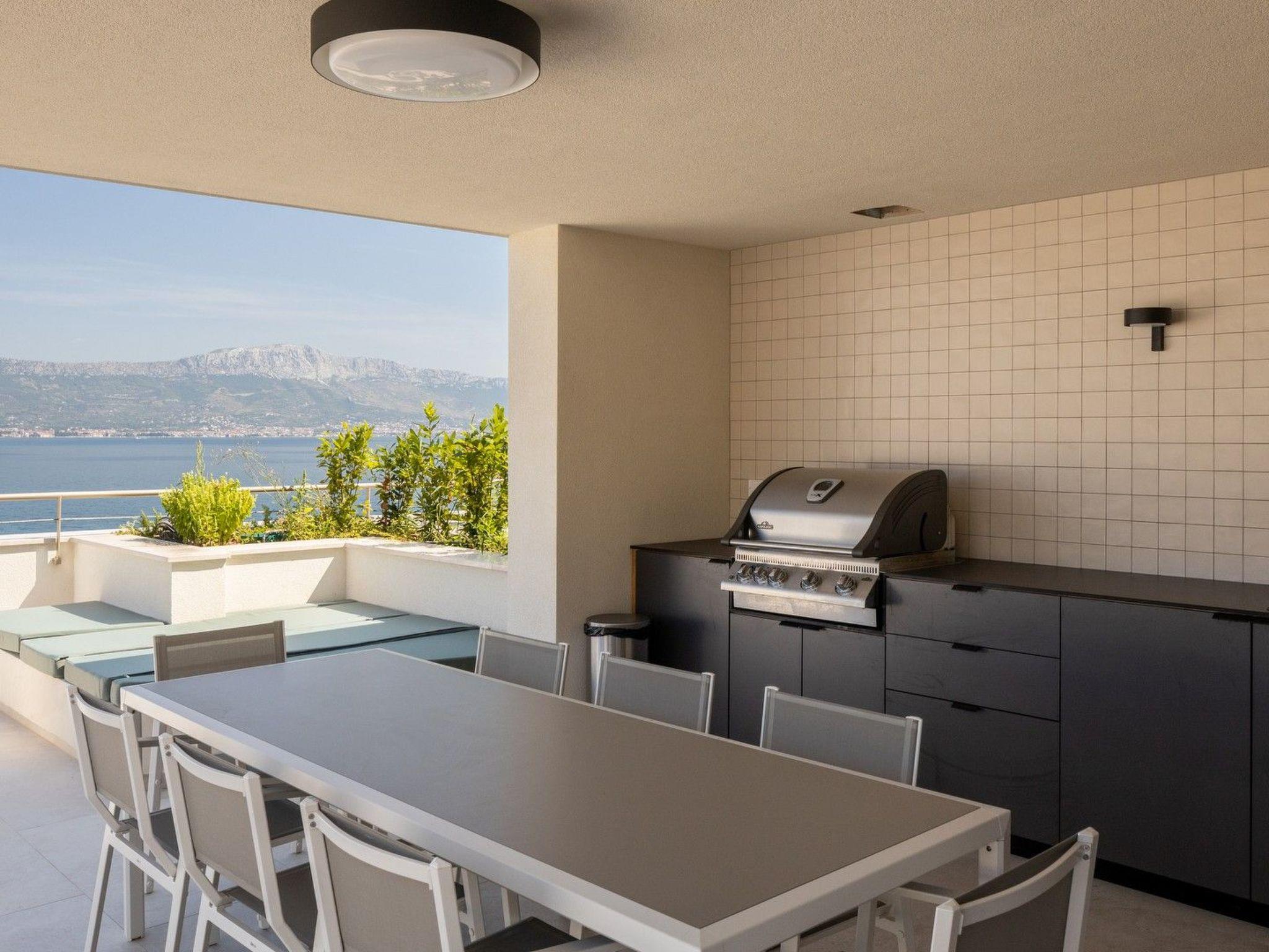 Diese wunderschön eingerichtete Villa ist Teil des Strandkomplexes Golden. Sie ist eine Mischung aus Eleganz, Luxus und Funktionalität. Die Villa liegt nur 30 Meter von einem atemberaubenden Kieselstrand und kristallklarem Meer entfernt und bietet einen atemberaubenden Panoramablick auf die Küste, die Berge und Split.