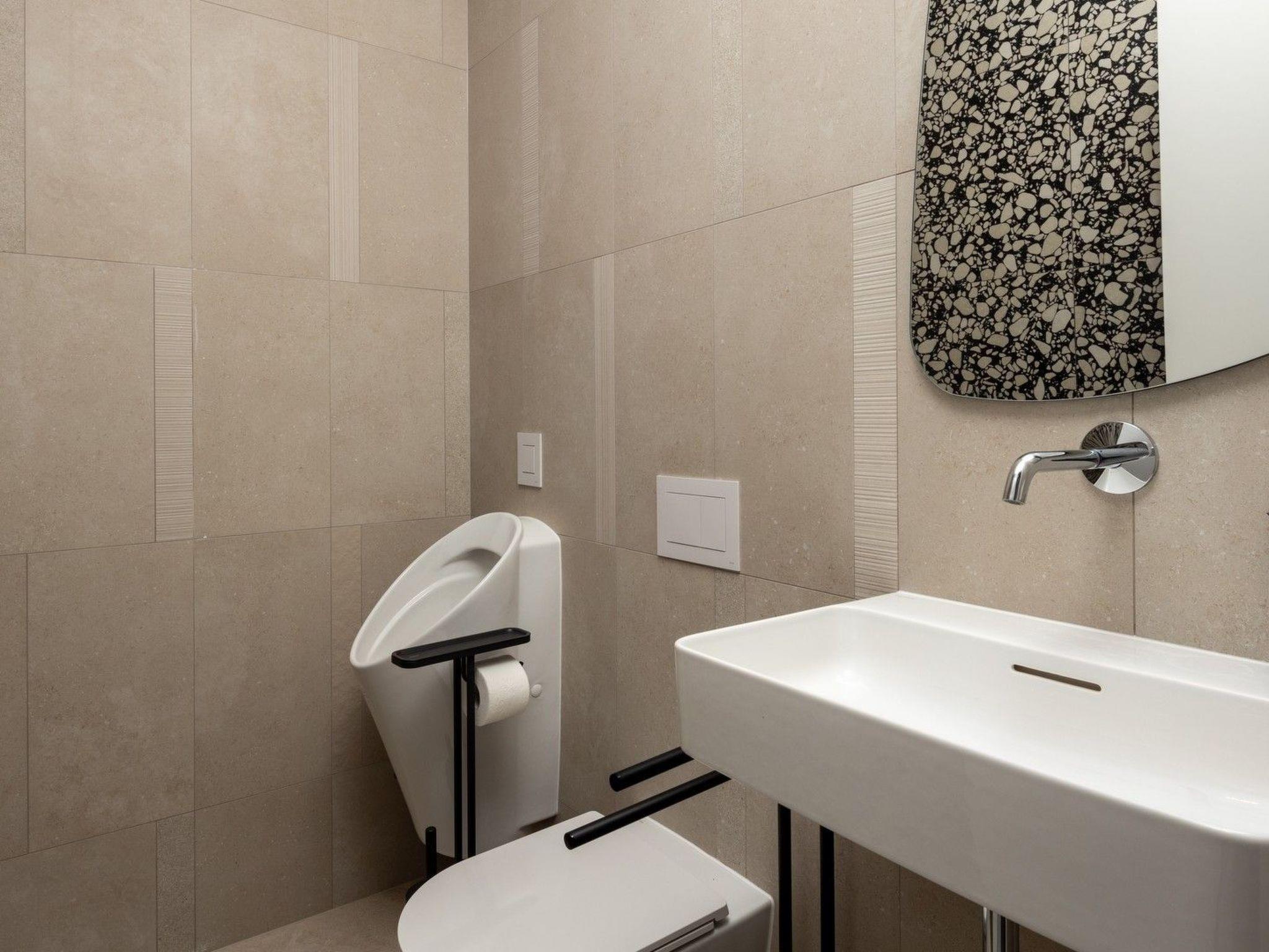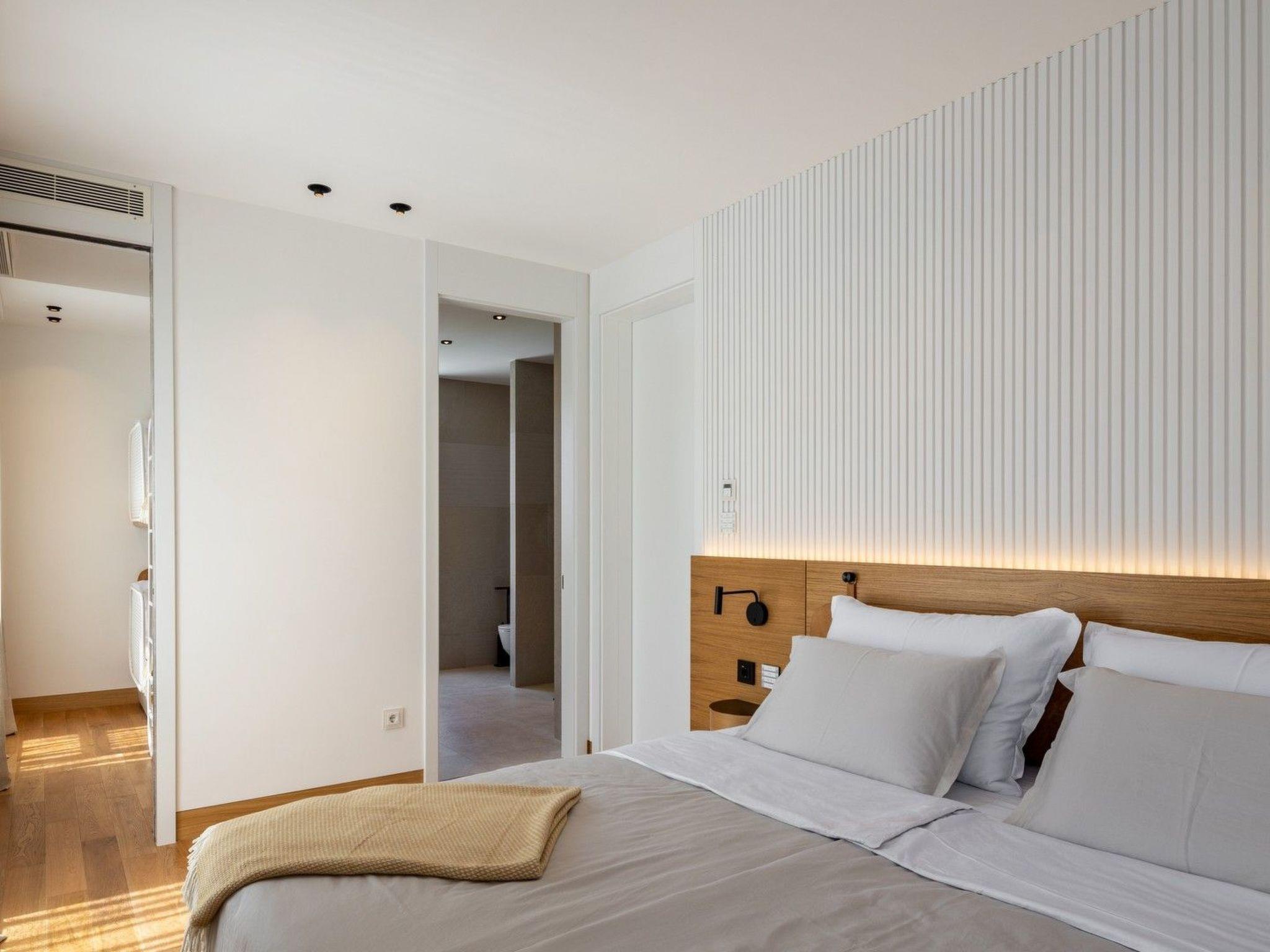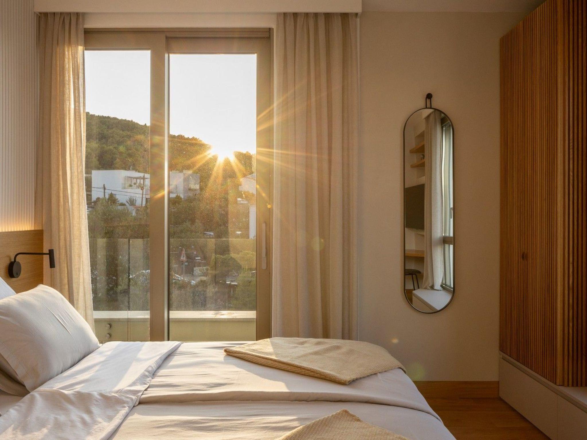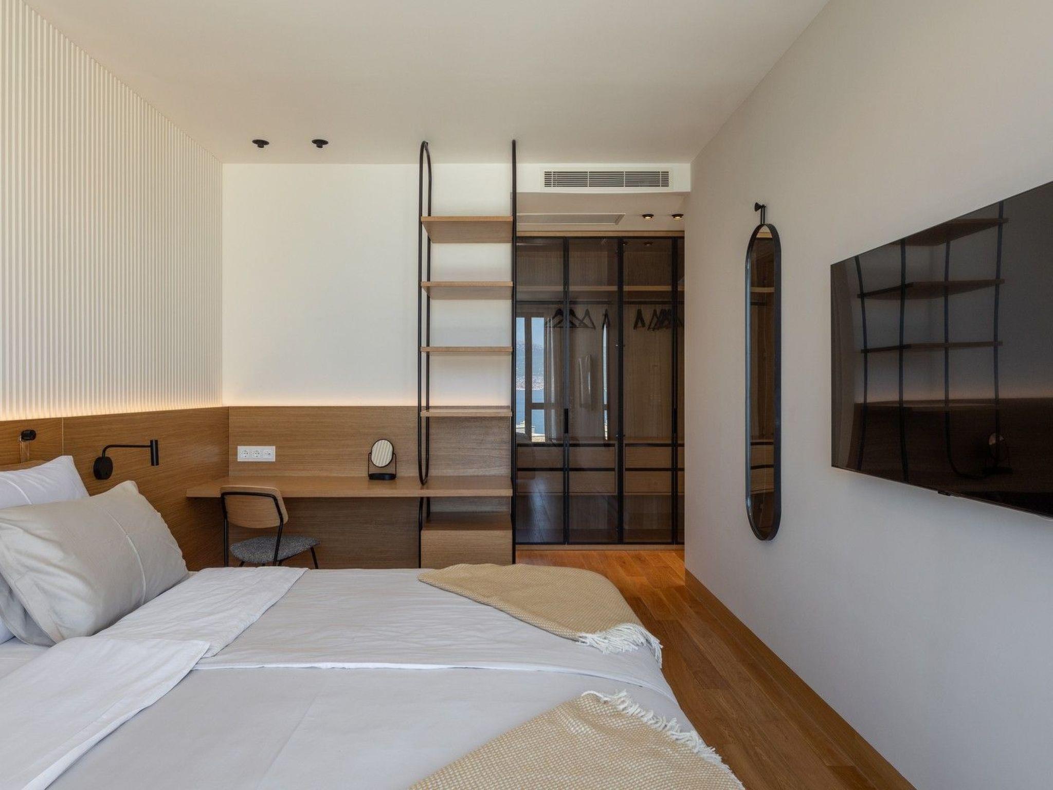 Im Untergeschoss finden Sie eine Waschküche, einen kleinen Fitnessraum, eine türkische Sauna und ein halbes Bad. Im Erdgeschoss finden Sie ein geräumiges Wohnzimmer mit hochwertigen Möbeln, einen Essbereich mit einem großen Tisch und Stühlen für 8 Personen und eine gut ausgestattete, luxuriöse, offene Küche. Große Glasschiebetüren führen vom Wohnzimmer und der Küche auf die Terrasse. Dieser einladende Raum ist mit Gartenmöbeln ausgestattet und bietet einen Blick auf das Meer und den Garten.